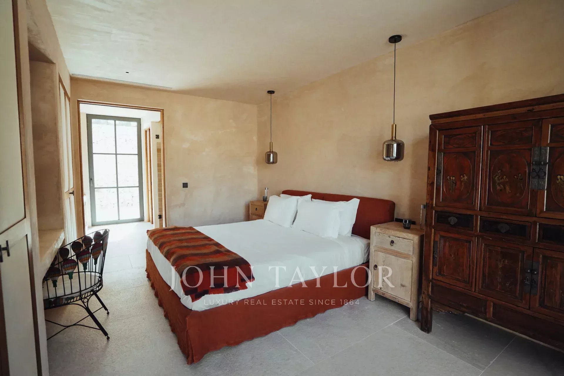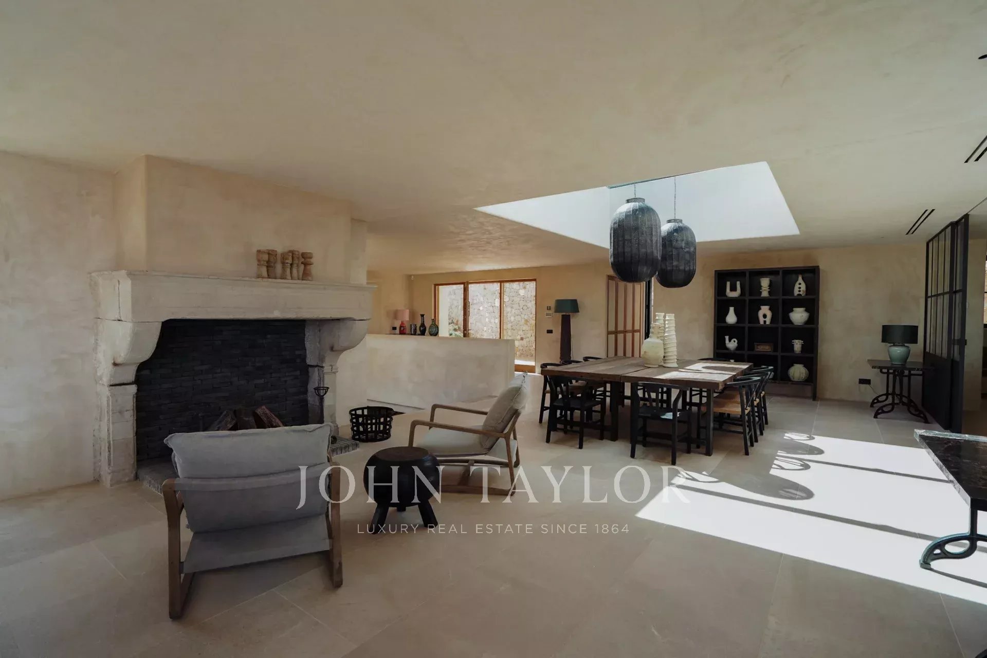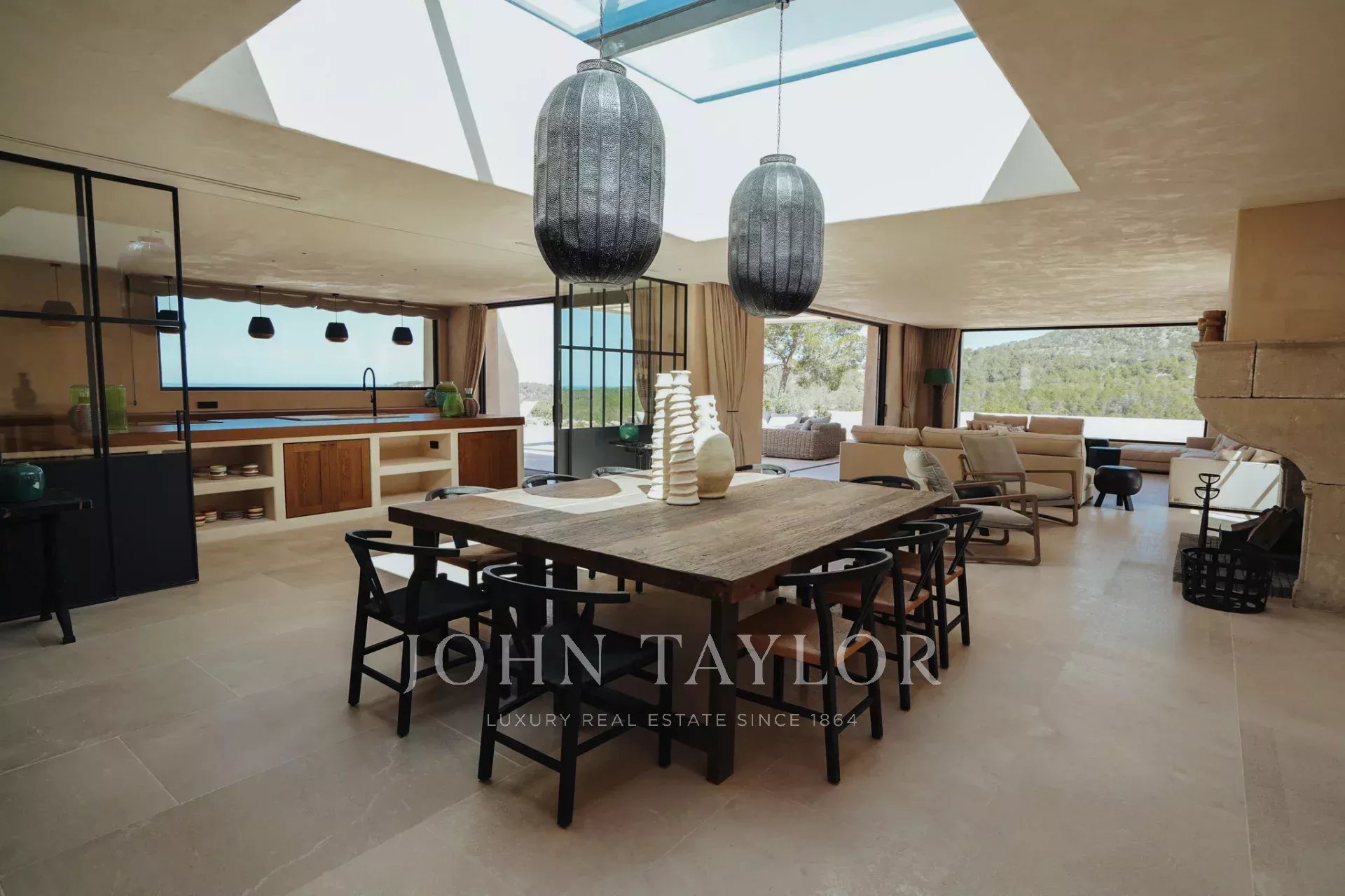 In the living room there is an 18th century fireplace to enjoy the cosy winter nights in Ibiza.