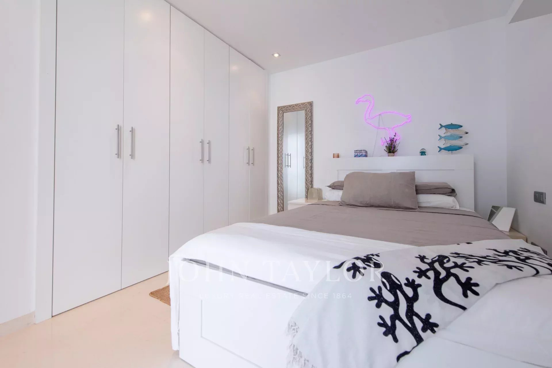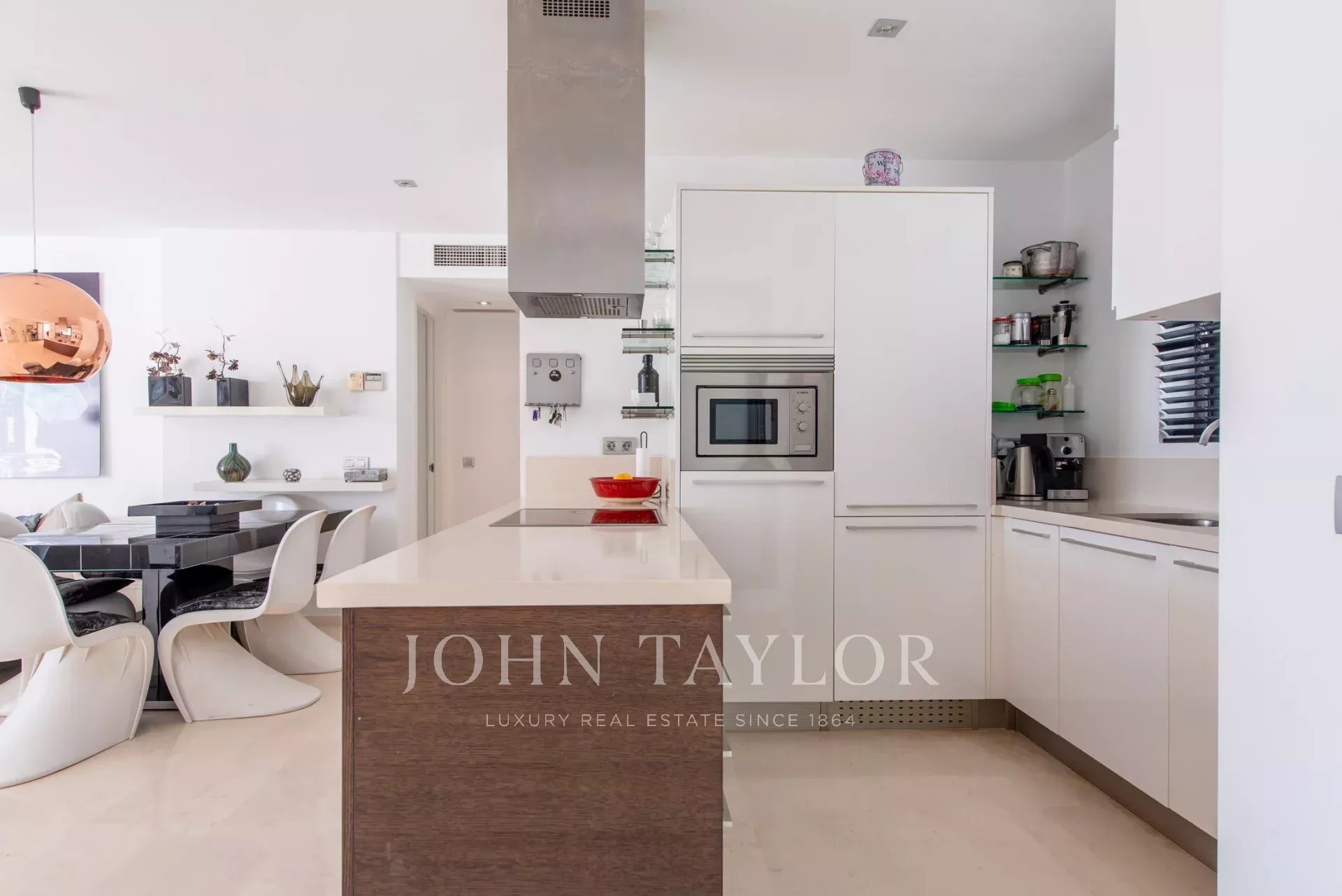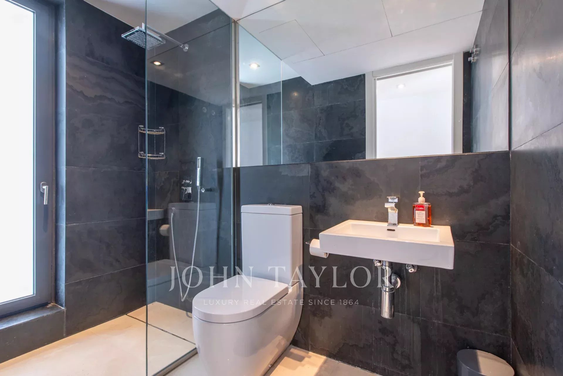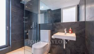 It is a unique split level property, designed to maximise comfort and luxury. Upon entering through the front door on the first floor, you are immediately captivated by the stunning sea views. This floor features a spacious living room with open plan kitchen and dining area, the master bedroom with en suite bathroom and a second bedroom with separate bathroom which also serves as a guest toilet. The living room connects to a large outdoor terrace offering a private pool and stunning sea views. The entire upper floor has underfloor heating, ideal for the winter months.