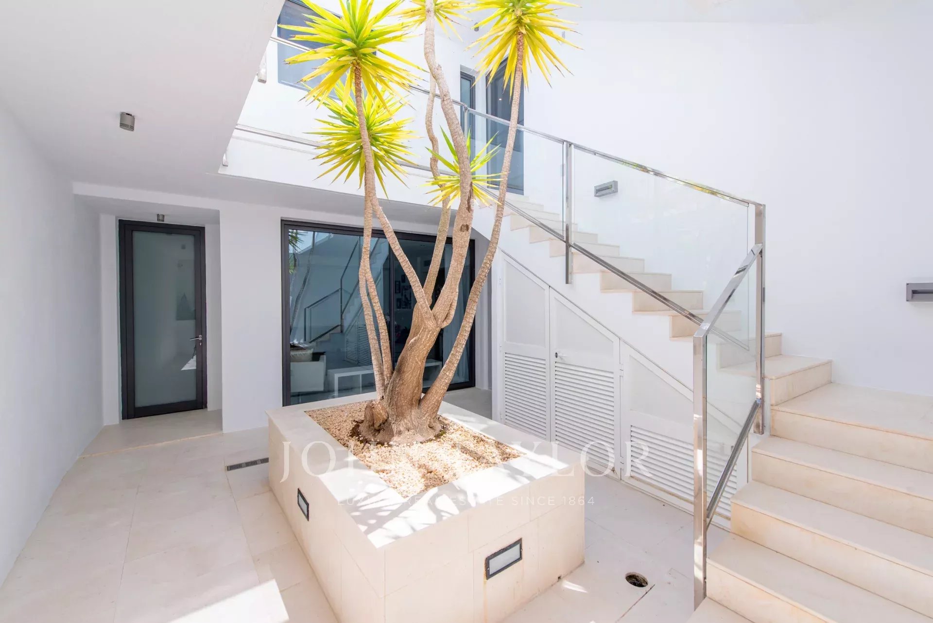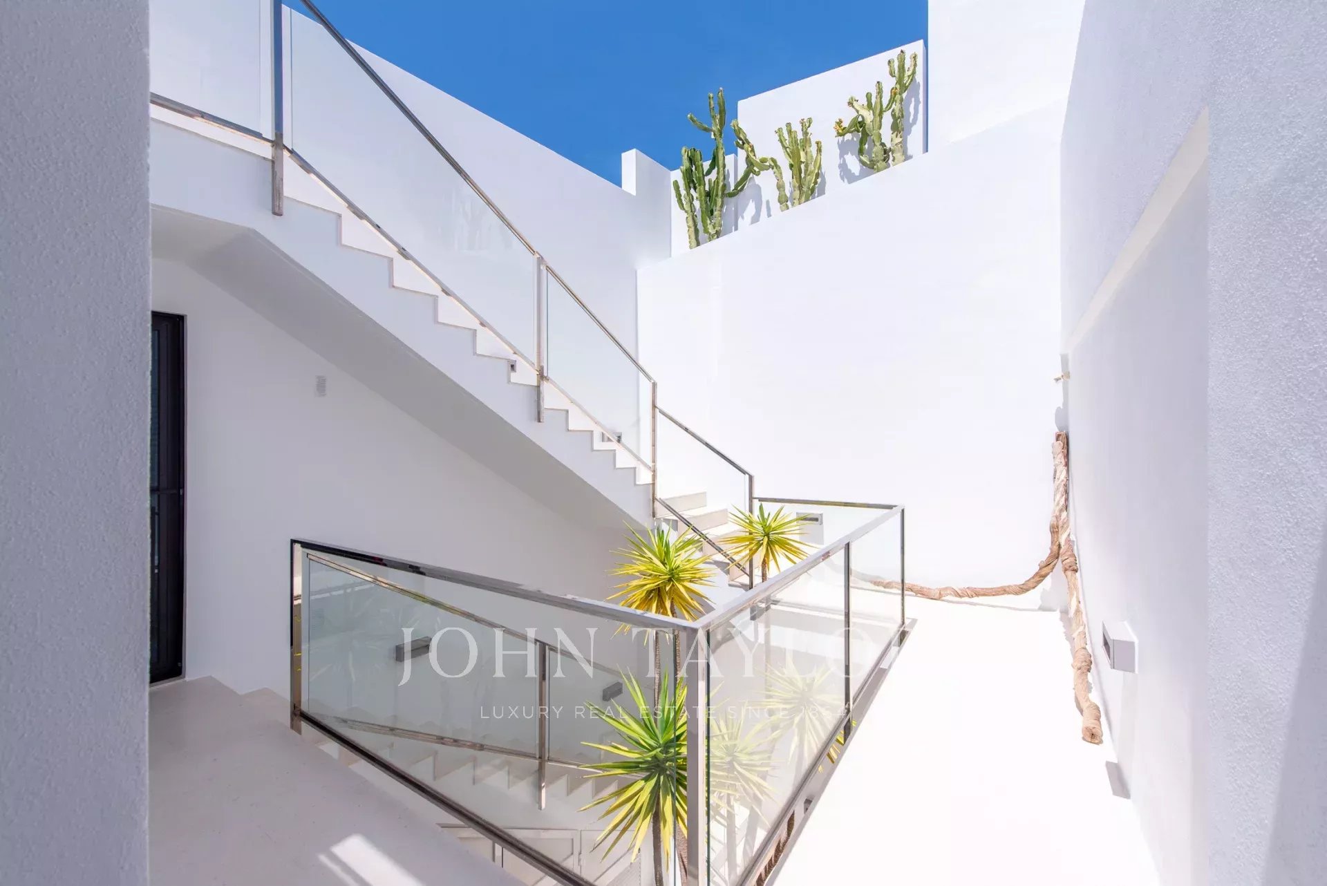 Upon arrival, you will find private parking for two cars above the house. The well-maintained outdoor areas ensure maximum privacy. The roof terrace, on the same level as the parking area, offers breathtaking views, making it perfect for sundowners, yoga or enjoying a cocktail. The main terrace, connected to the living room, features an infinity pool surrounded by sun loungers and a dining table, with a covered area providing shade and comfort. Enjoy breathtaking sunsets with total privacy from neighbouring houses. The ground floor includes an open patio, perfect for creating a private outdoor area, as well as the laundry area and additional storage space.
