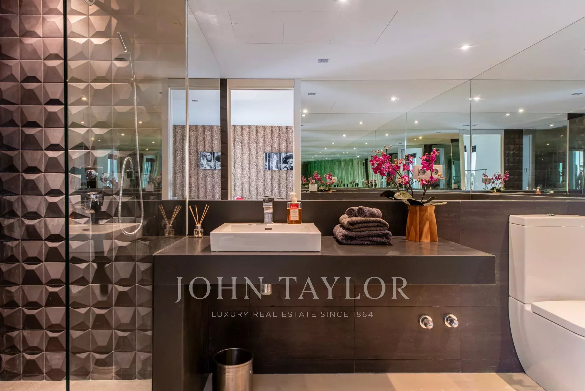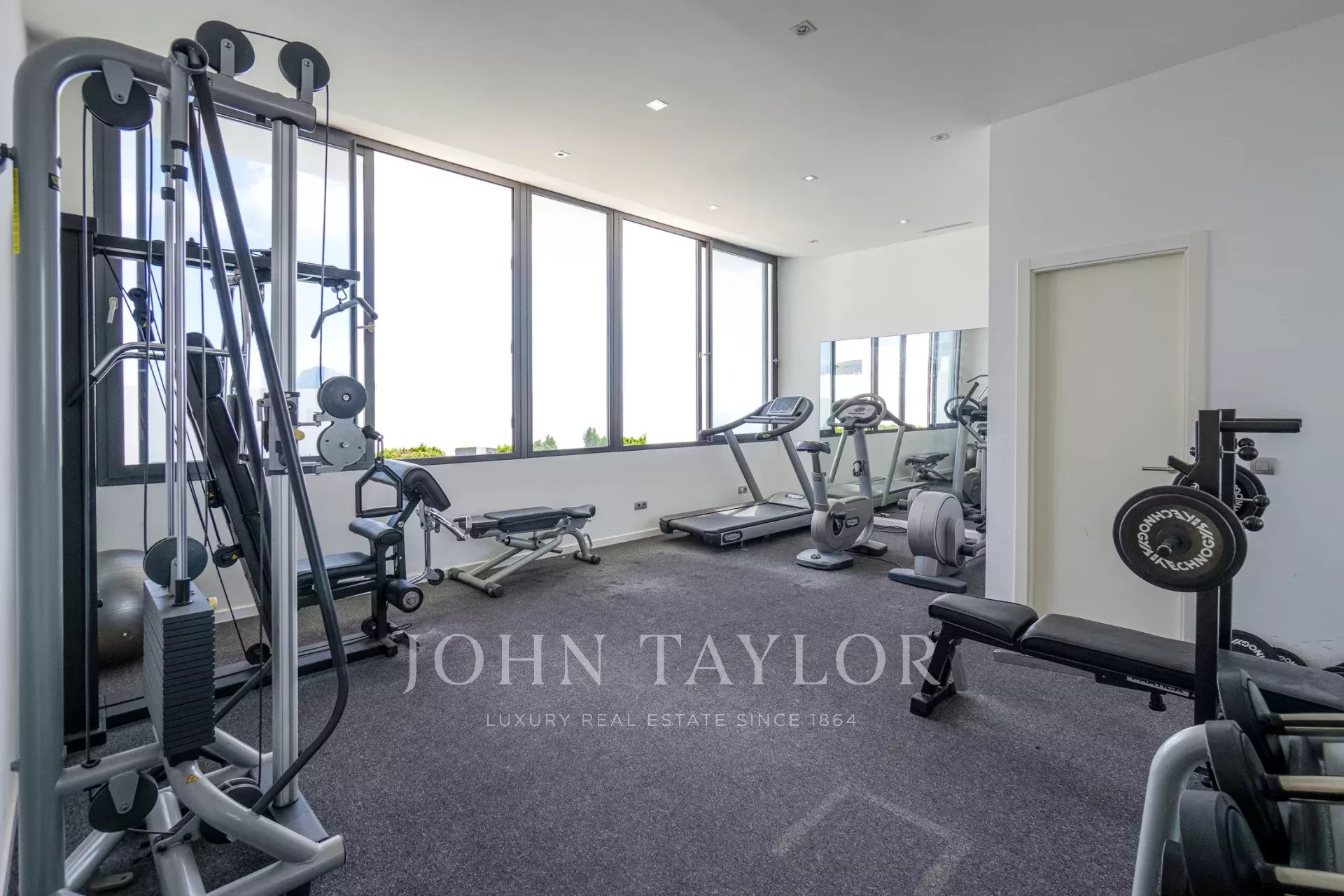 Accessible via an external staircase, the ground floor includes a guest flat complete with kitchen, living room, bedroom and bathroom en suite. This area is connected to a cosy outdoor patio and offers additional storage space and a laundry area. On the same level, you will find a private discotheque equipped with state-of-the-art sound and lighting technology, soundproof walls, a fully equipped bar and a bathroom, ideal for entertaining guests.