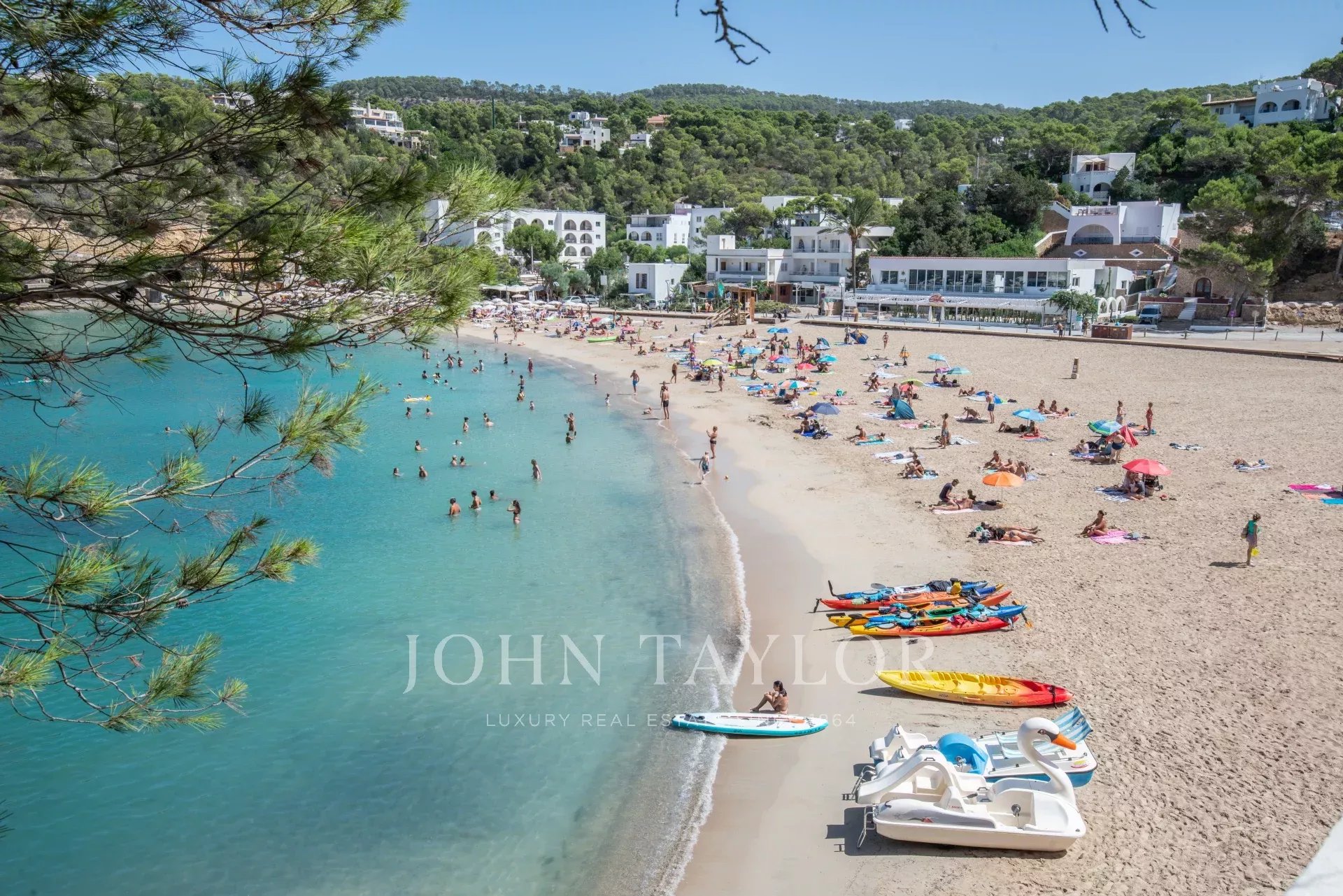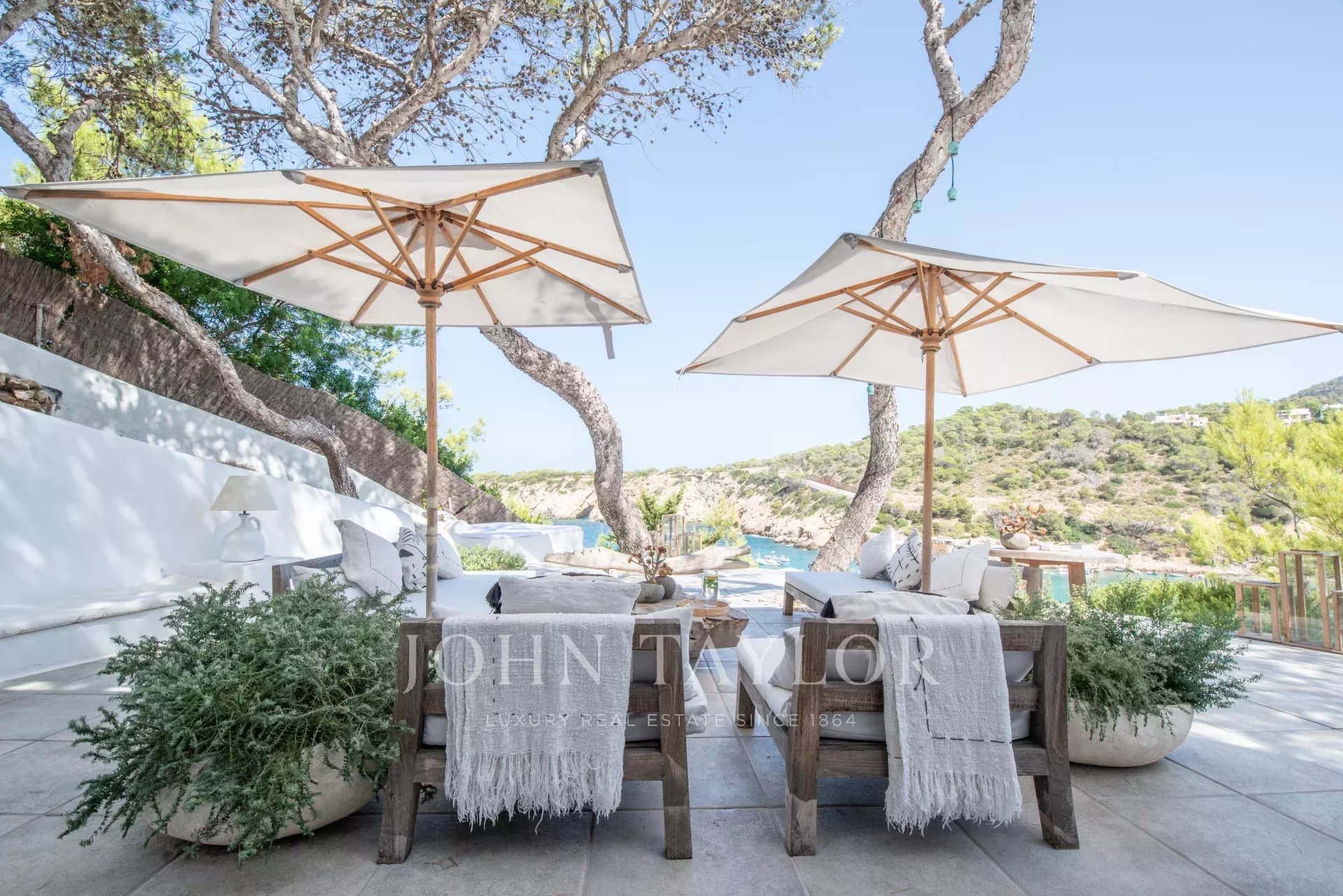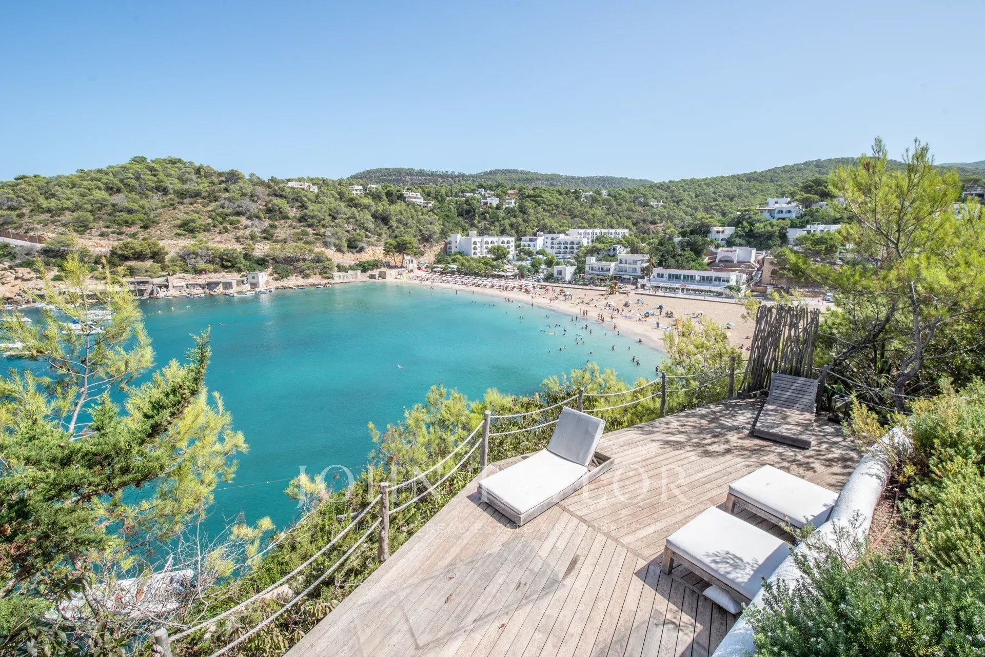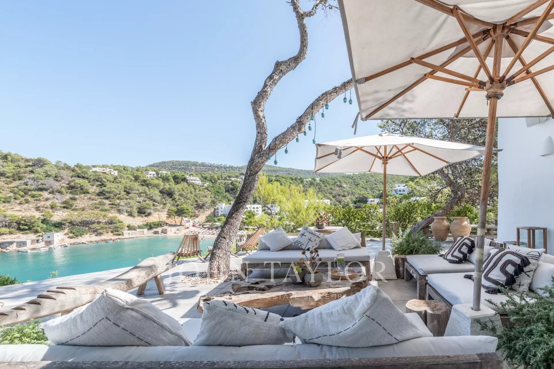 Discover this spectacular Mediterranean-style villa located right on the beachfront in Cala Vadella, on Ibiza’s coveted west coast. Offering breathtaking panoramic sea views and a private staircase with direct access to the beach, this property provides the perfect blend of luxury and serenity.