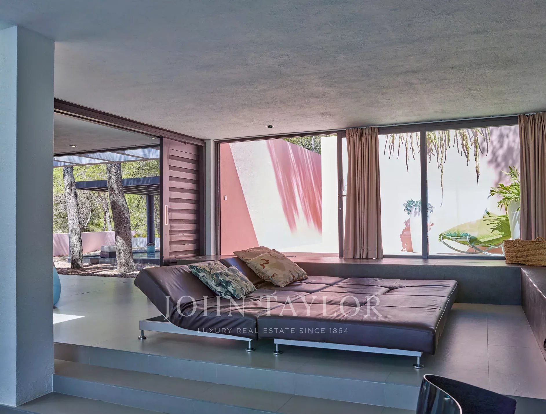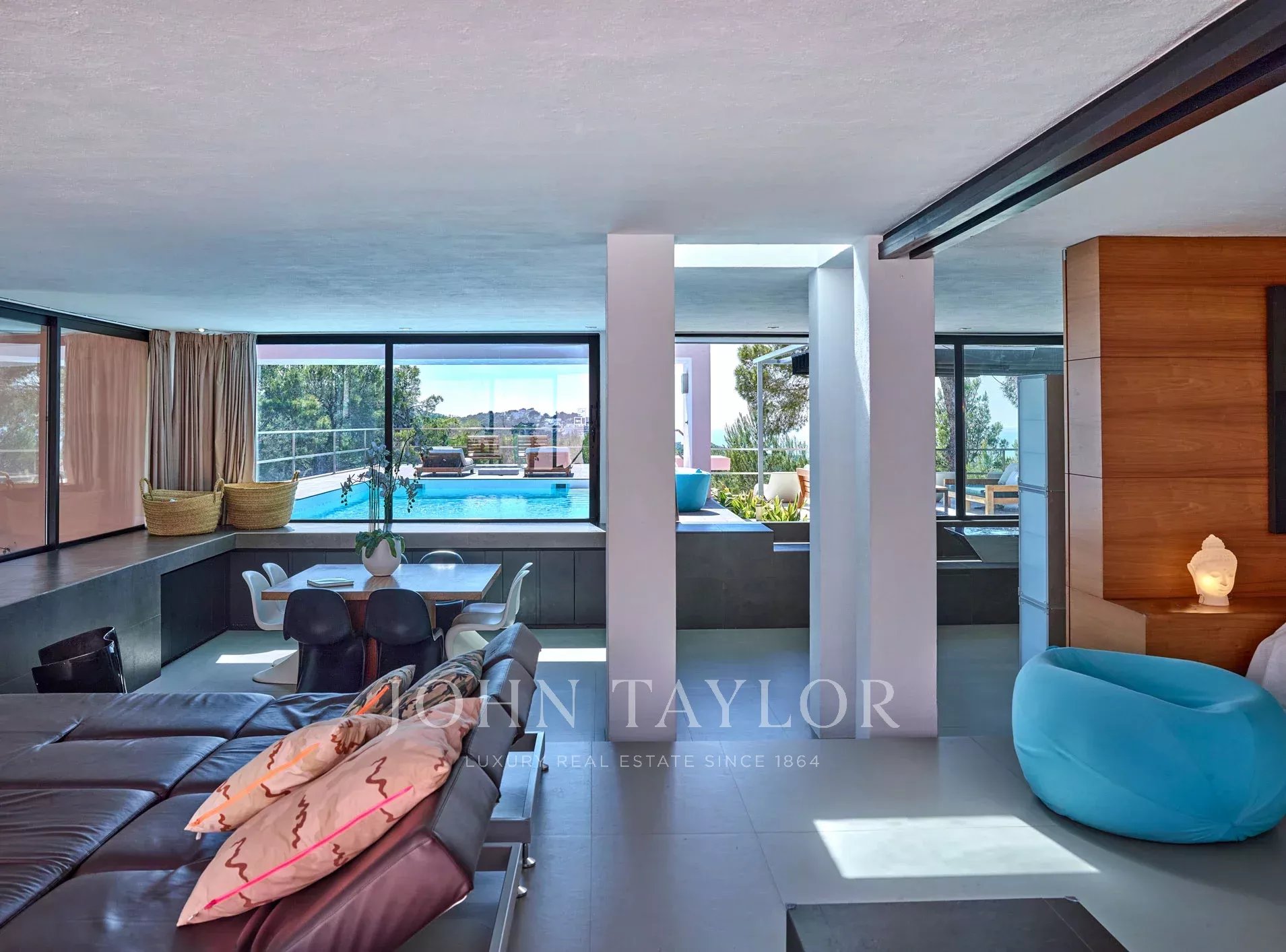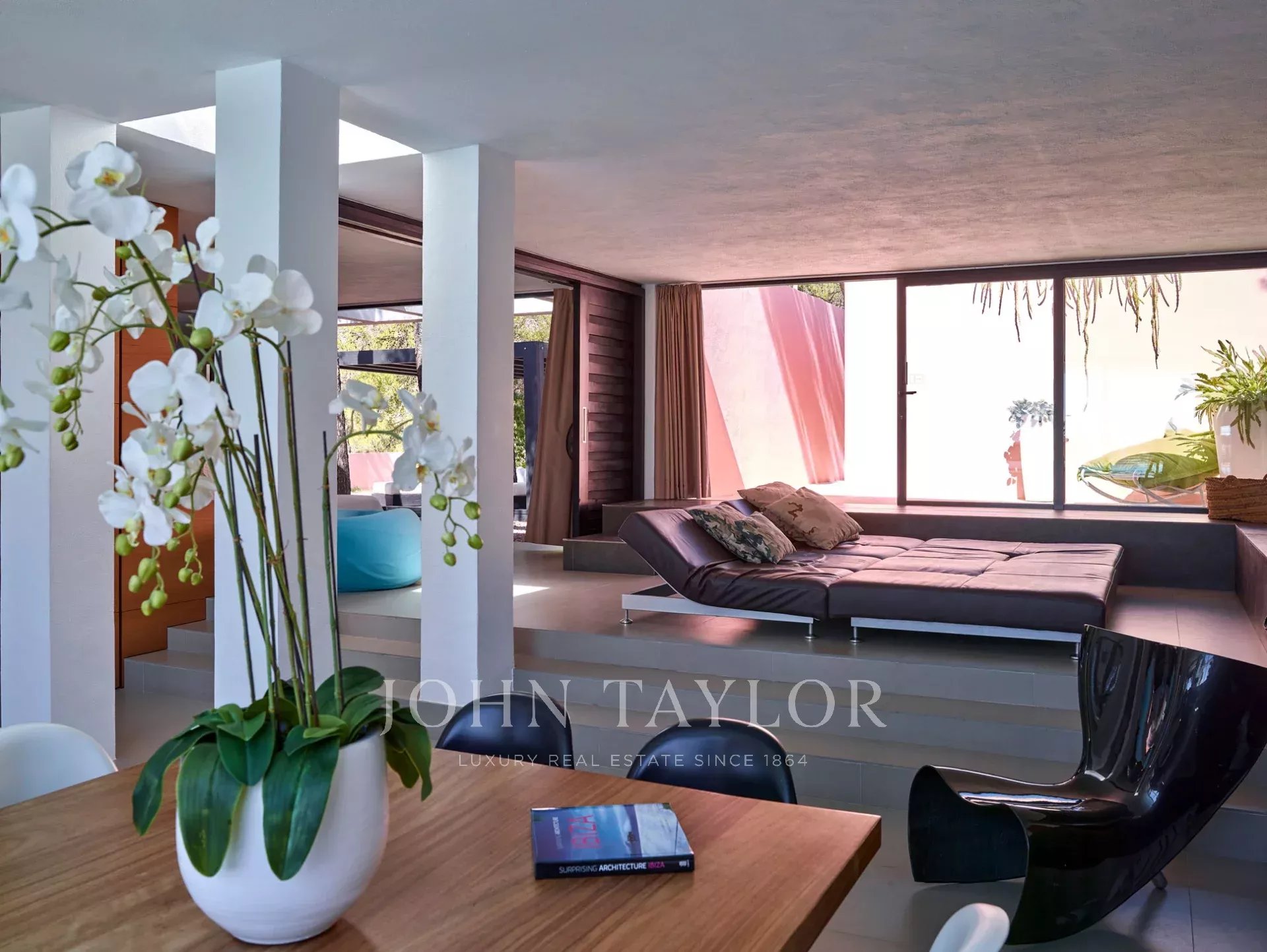 This impressive modern villa is located in the eastern part of Ibiza, near the famous Cala D'Hort and Cala Vadella beaches, surrounded by Mediterranean nature and pine trees. Situated on a quiet and private hillside, this hidden gem offers spectacular views of the sea and sunsets, ideal for enjoying unforgettable moments on the island. Just a few minutes from the charming village of San José, the property combines elegance, tranquility, and an unparalleled natural setting.