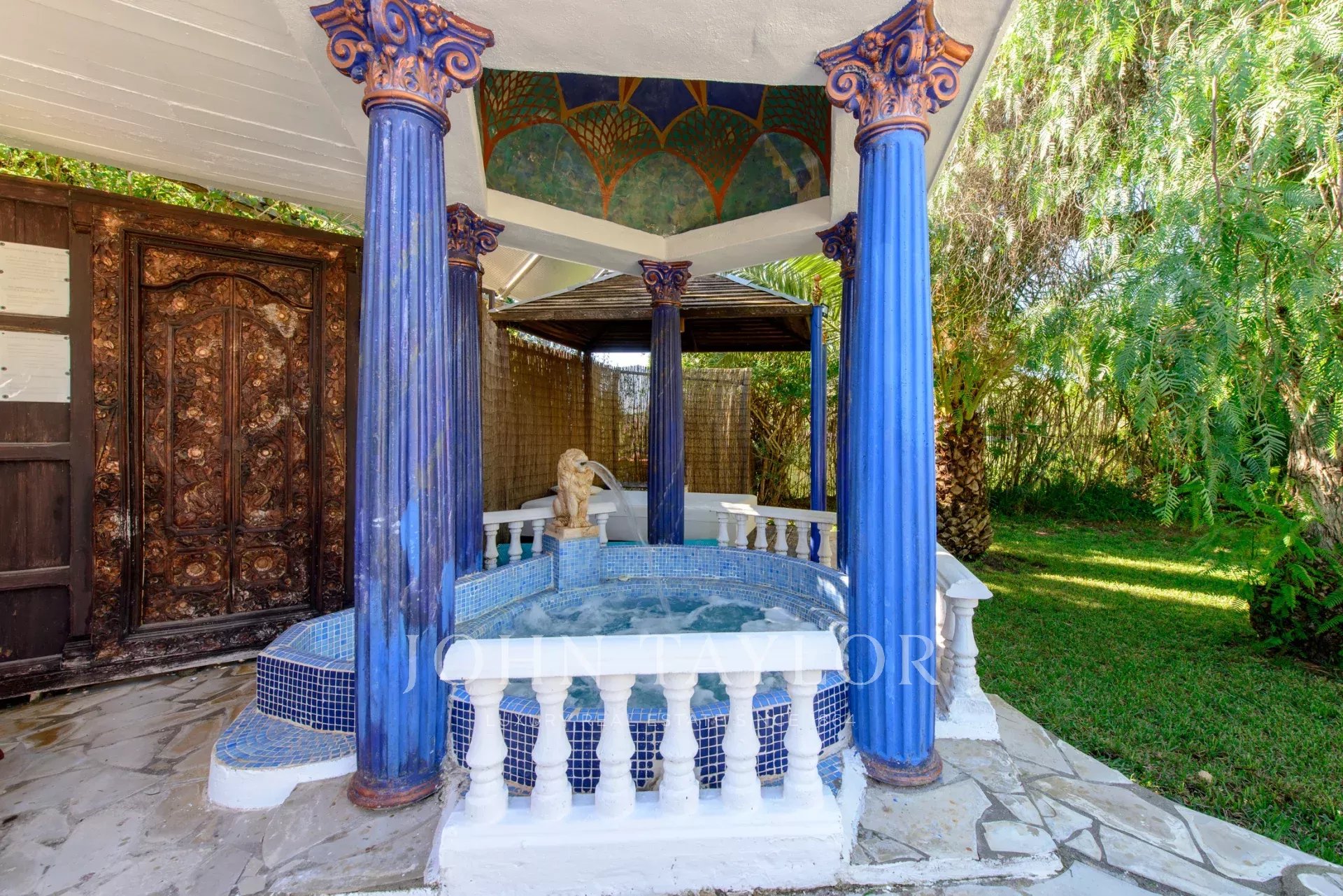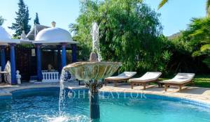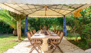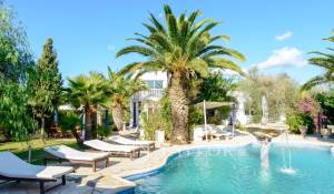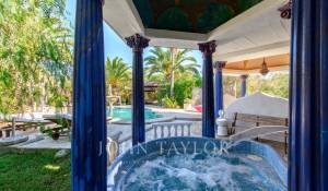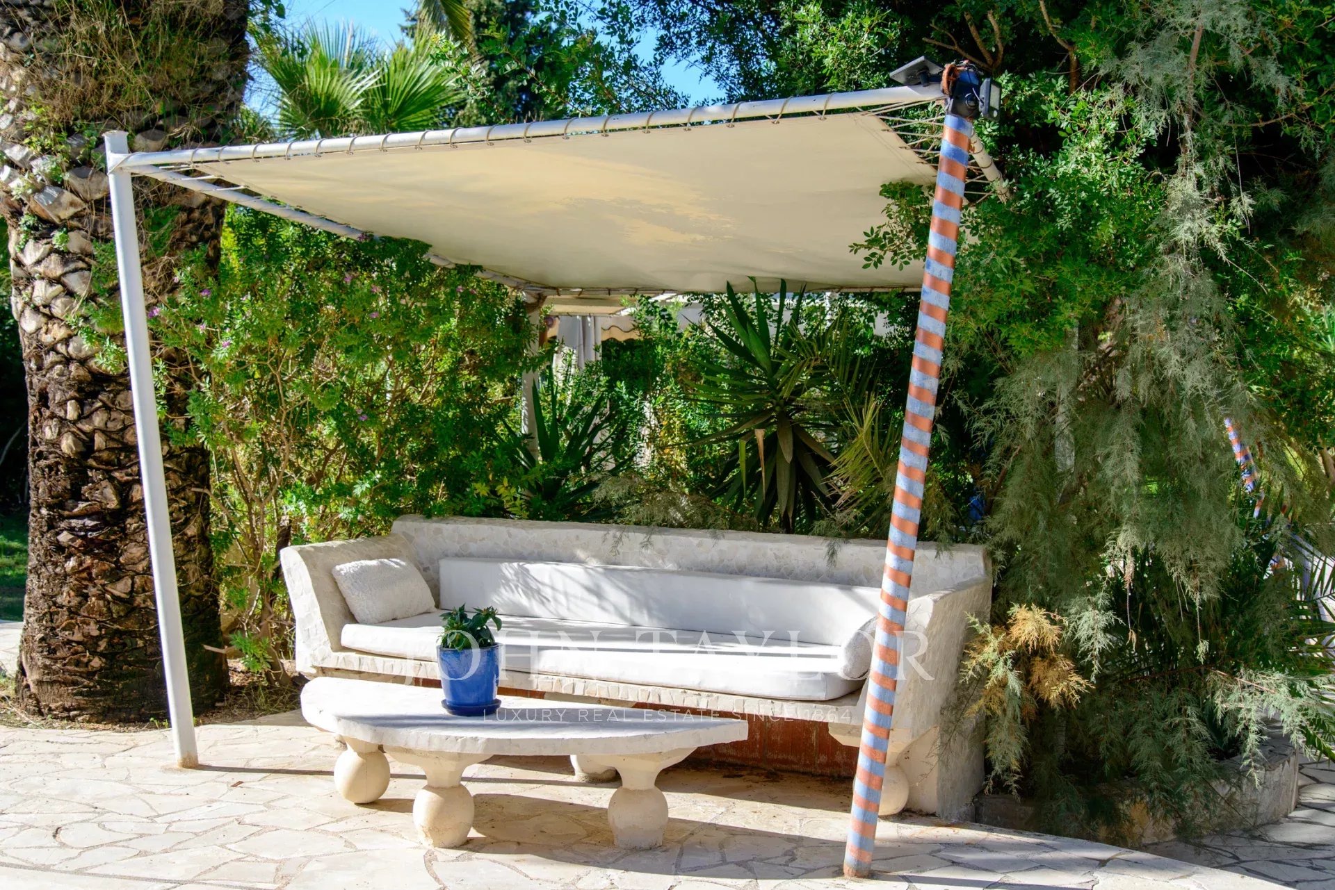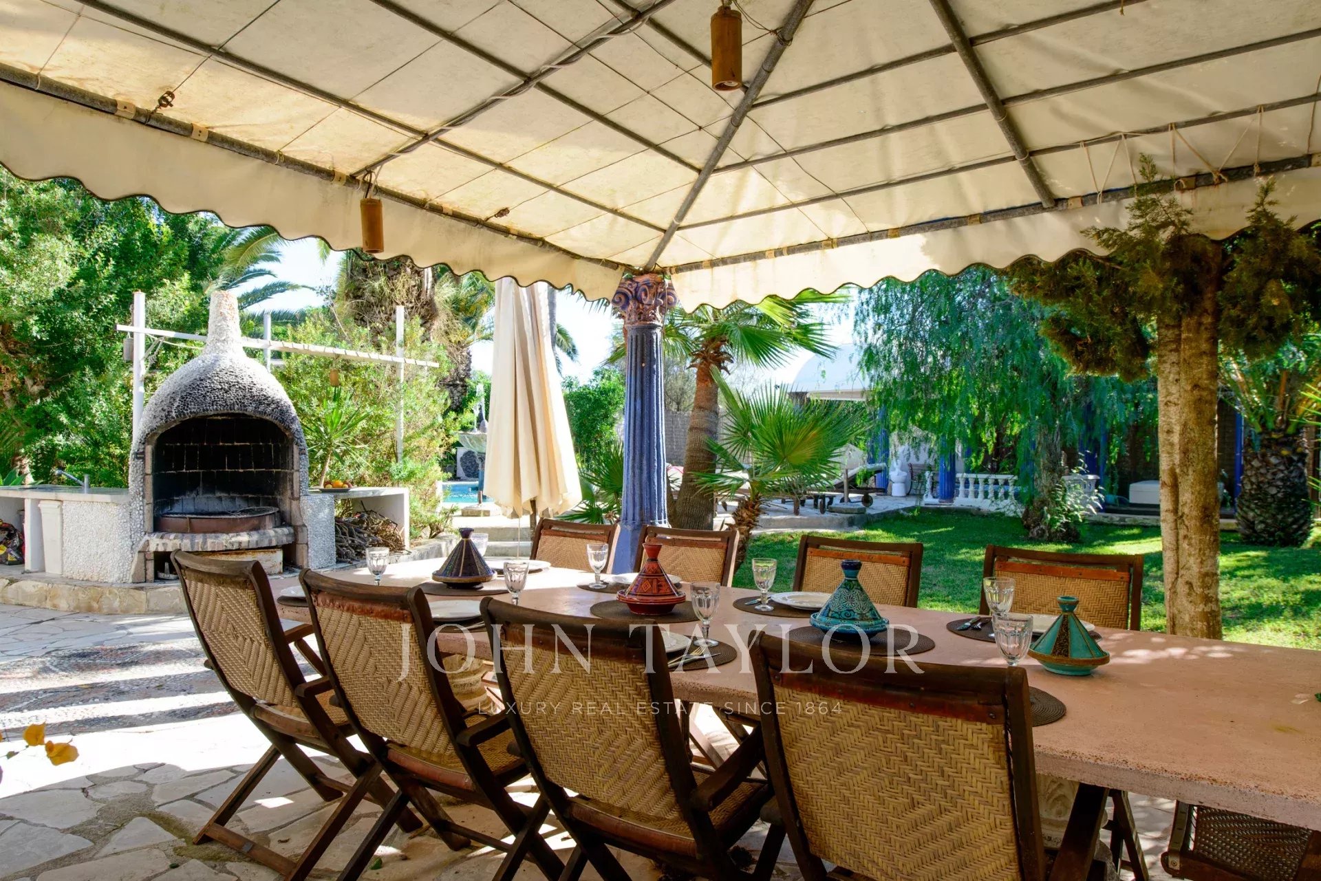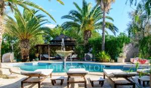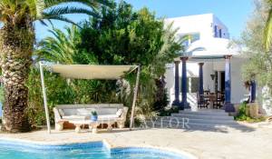 Located in a privileged area of Ibiza, this unique 5-bedroom villa with a Tourist License features beautiful structural arches, unique architectural details, and a design that perfectly integrates spacious interiors with generous terraces and landscaped gardens, creating the perfect setting to enjoy Mediterranean living.