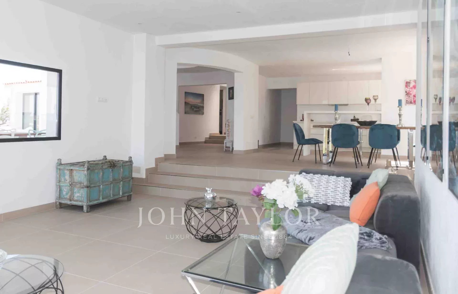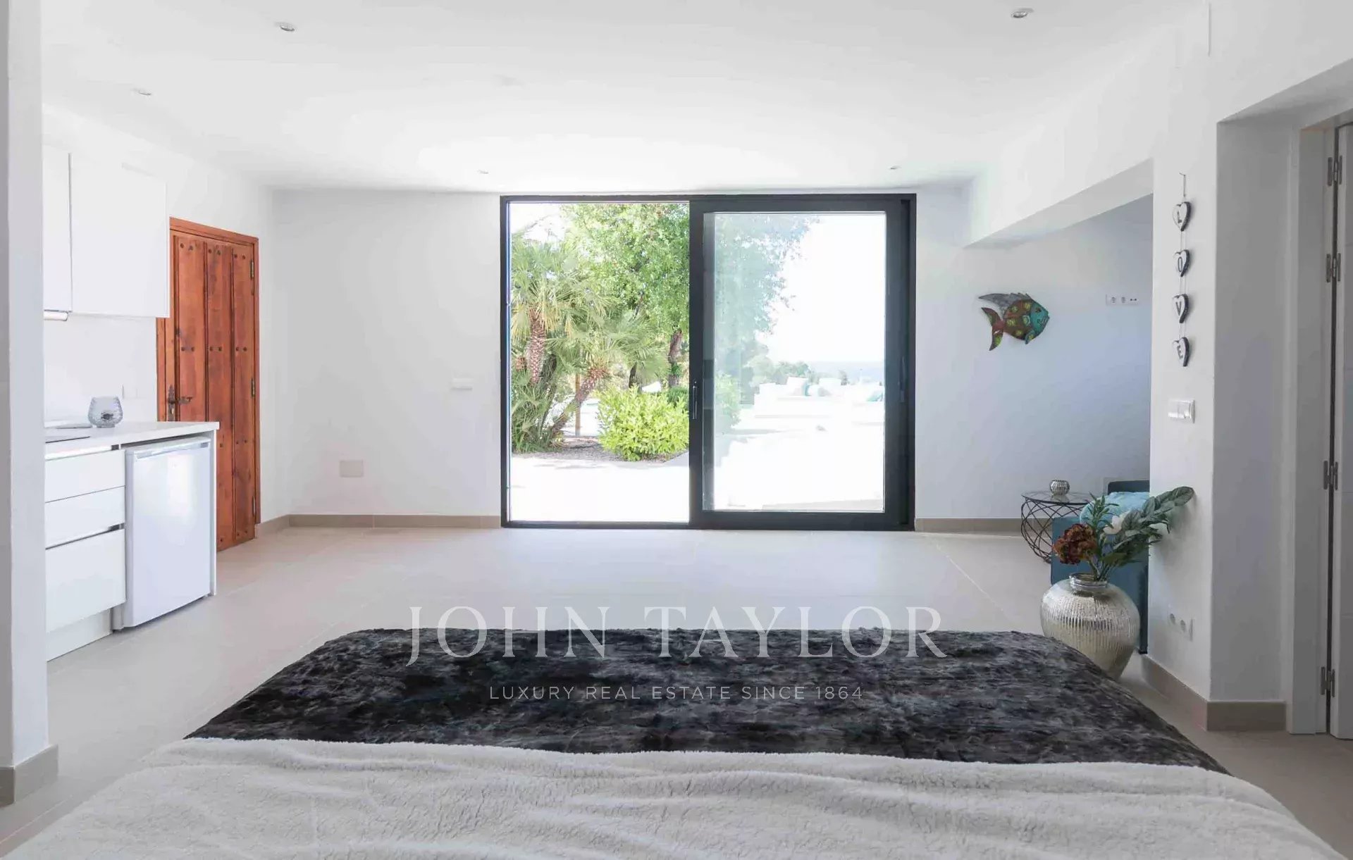 Fantastic fully renovated villa situated in Cala Moli, within the San José municipality, enjoying a tranquil and prime location approximately 150 meters from the sea. Comprising a total of 4 bedrooms and 4 bathrooms, the villa adheres to the highest contemporary building standards. Additionally, the potential exists to include two more bedrooms.