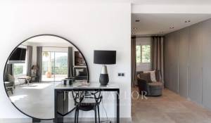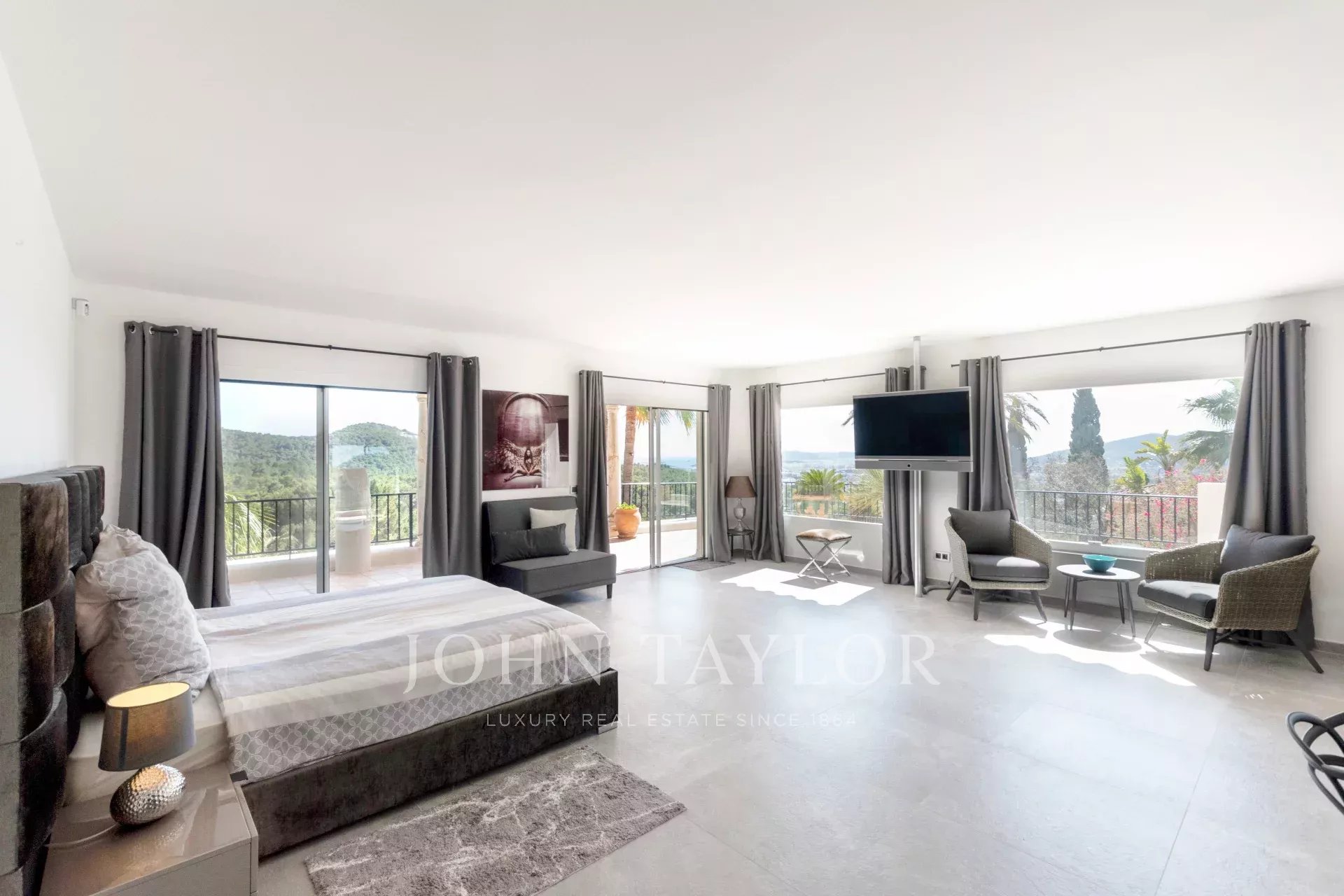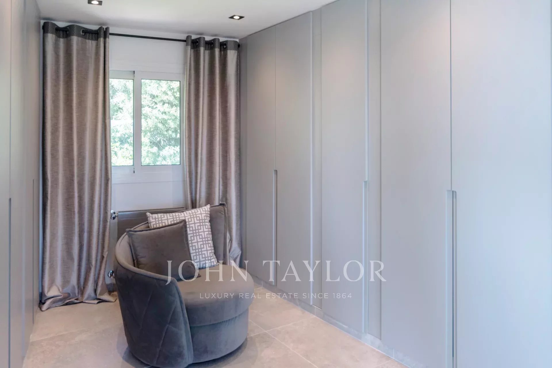 On the main floor, a double bedroom allows direct access to the pool, while on the upper level, there is a dreamy master suite with a terrace offering panoramic views of the entire Can Furnet urbanization, which has 24-hour security.