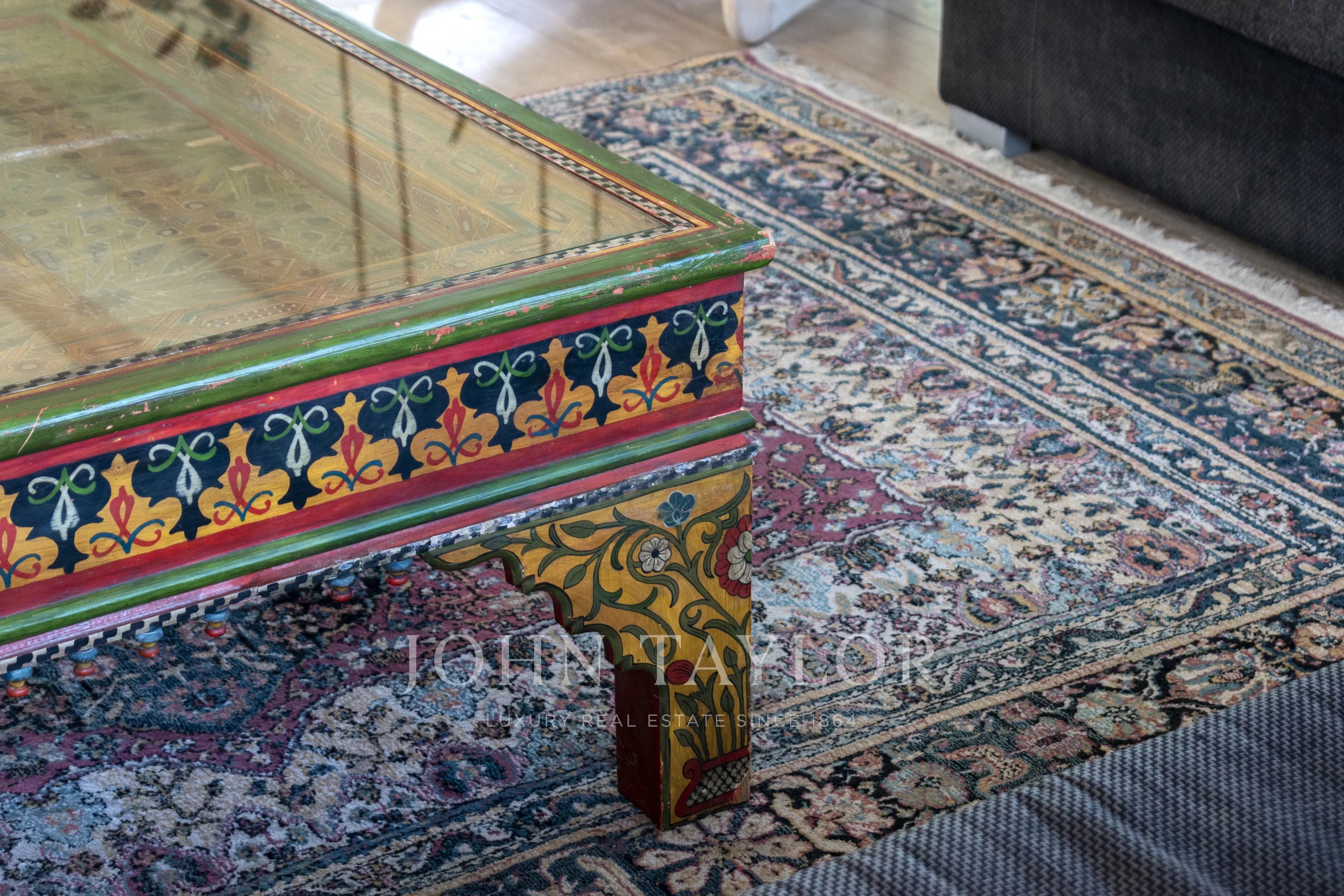 The main house is laid out on a single level with 3.75-meter-high ceilings and features a spacious entrance hall, 4 bedrooms, 3 full bathrooms, and a guest toilet. The living-dining room, with beam ceilings and 6-meter-high windows, offers panoramic views of the extensive grounds and Ibiza’s mountains. The open-plan kitchen connects to the terrace, garden, and private pool, creating a perfect space for daily living and entertaining.