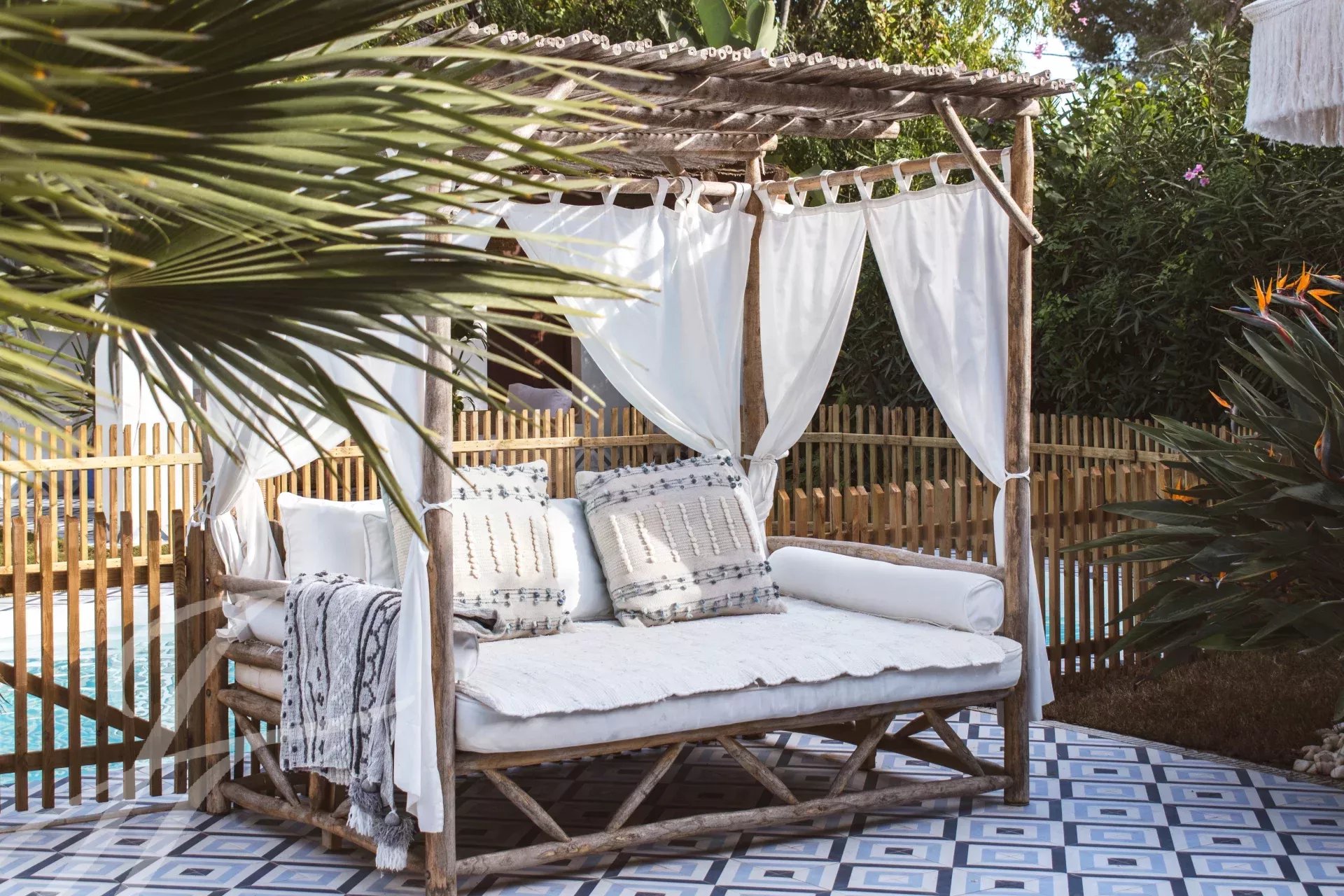 Outside, there's a new pool, a chemical-free cedar hot tub, and several relaxation zones with Balinese beds and hammocks. An outdoor dining table for eight people and a firepit make this place perfect for outdoor dinners.
