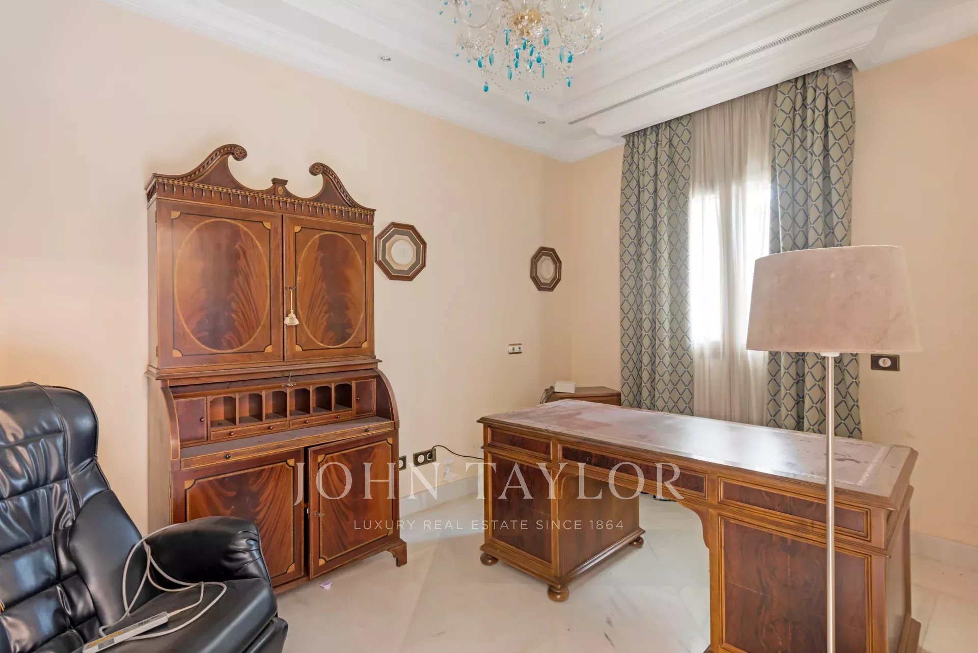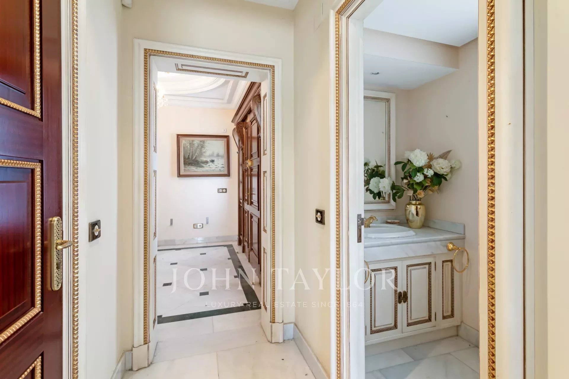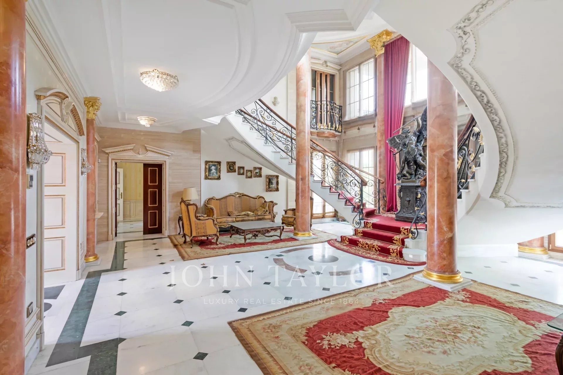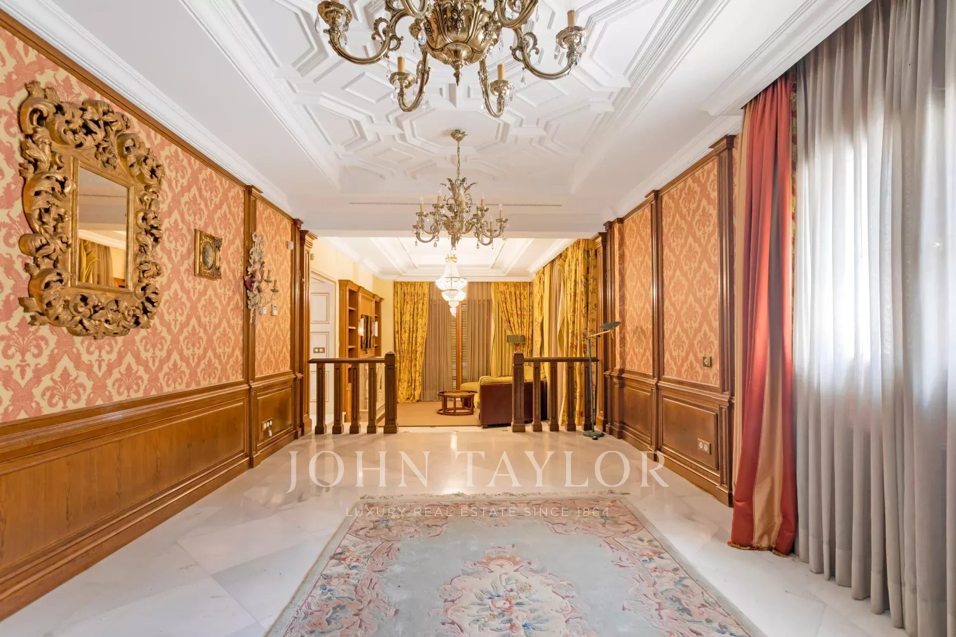 Its qualities, marble, hardwoods, Venetian stuccoes, domes with stained glass windows are carefully worked. The plot is located on the golf course with stunning views.
