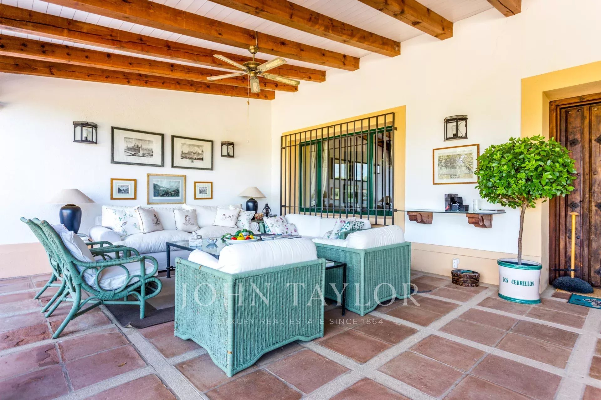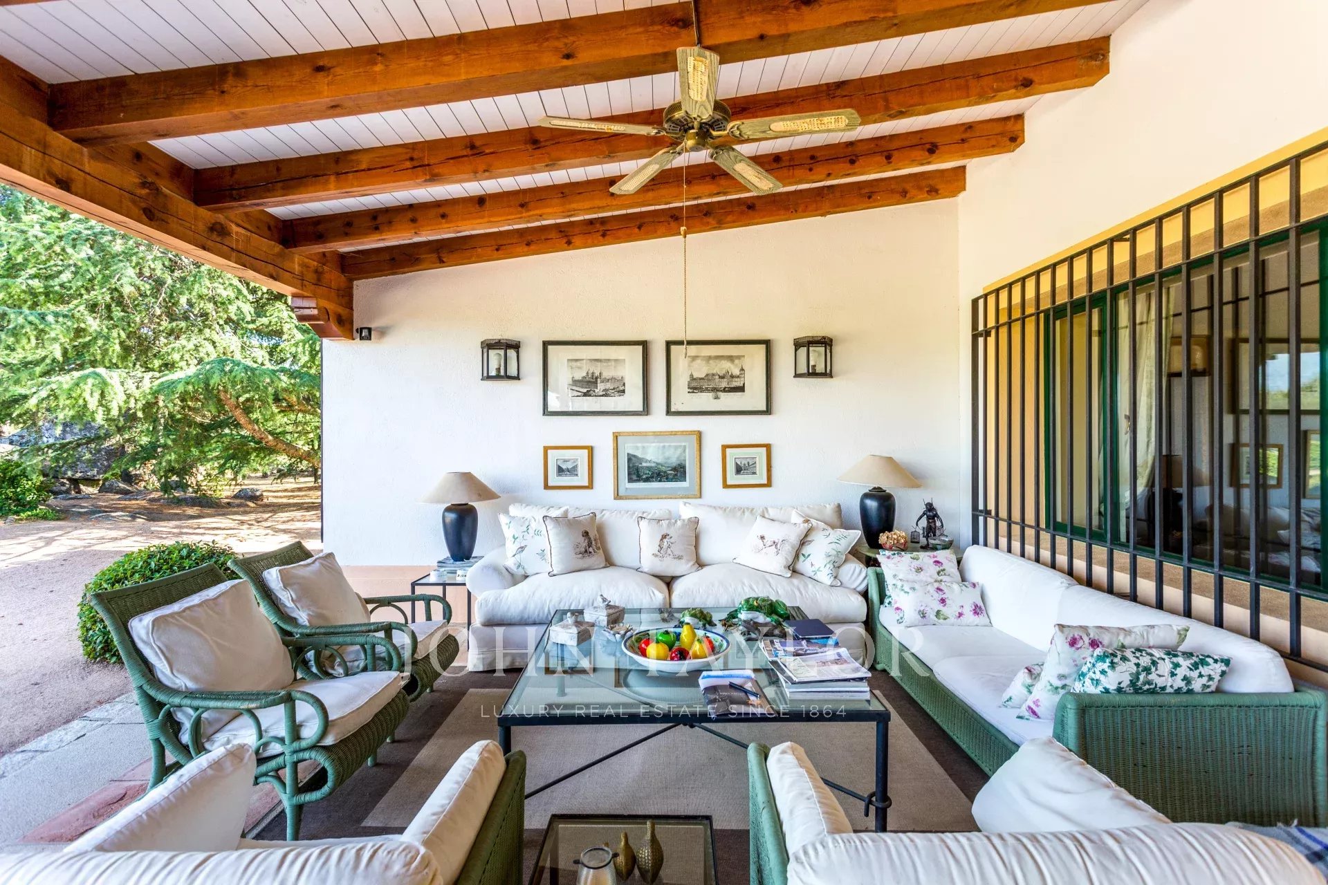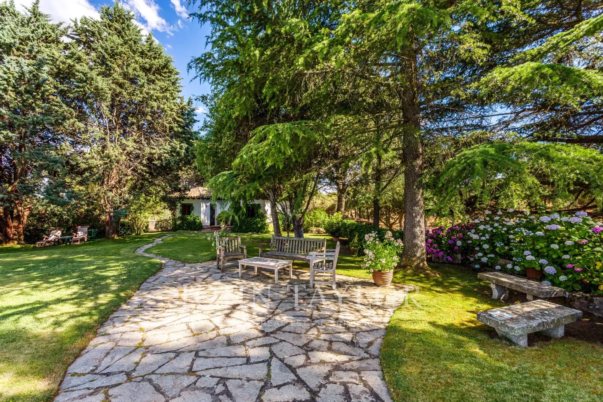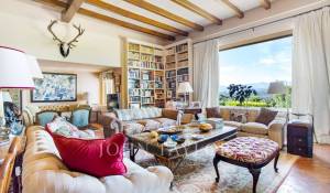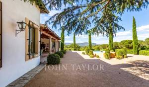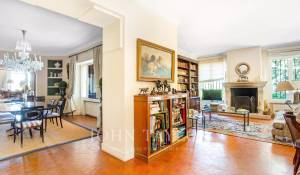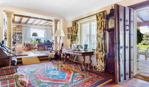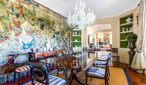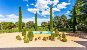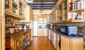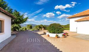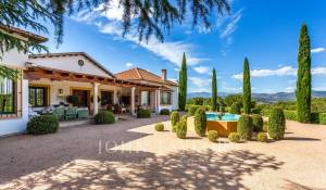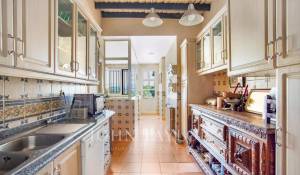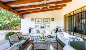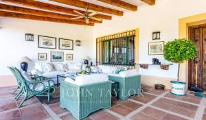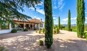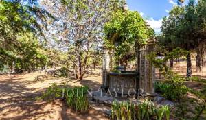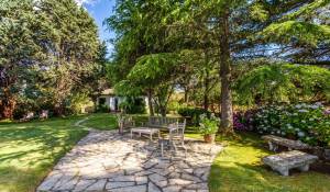 Main house: Upon entering the property, we are greeted by a fabulous porch that invites you to rest, peace and tranquility, undoubtedly one of the most desired places in the house for its orientation, its freshness and the sound of water falling into the fountain located in the garden. We access the interior of the house, through a welcoming hall that leads to the living room (90m²) with fireplace distributed in several rooms. This bright and intimate area is equipped with large windows that flood the room with light and offer unbeatable views. In the opposite area we find a dining area (20m²) that leads to the living room (35m²) also with fireplace. The sleeping area consists of five large bedrooms all with en suite bathrooms. The master bedroom has a separate dressing room. The kitchen area is distributed in office area, kitchen, technical room, and service bedroom with bathroom. From this area we can access the garden areas of the property.