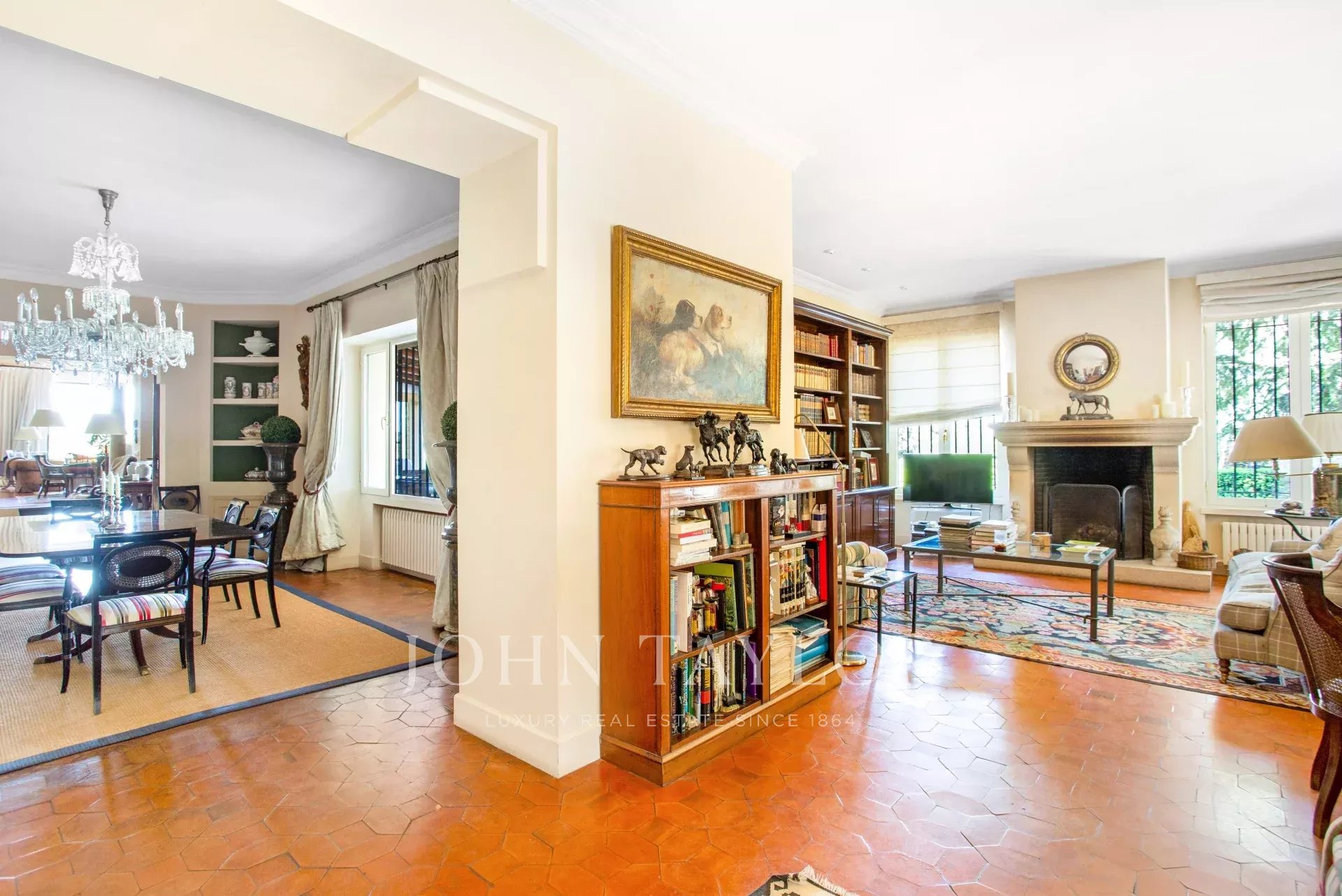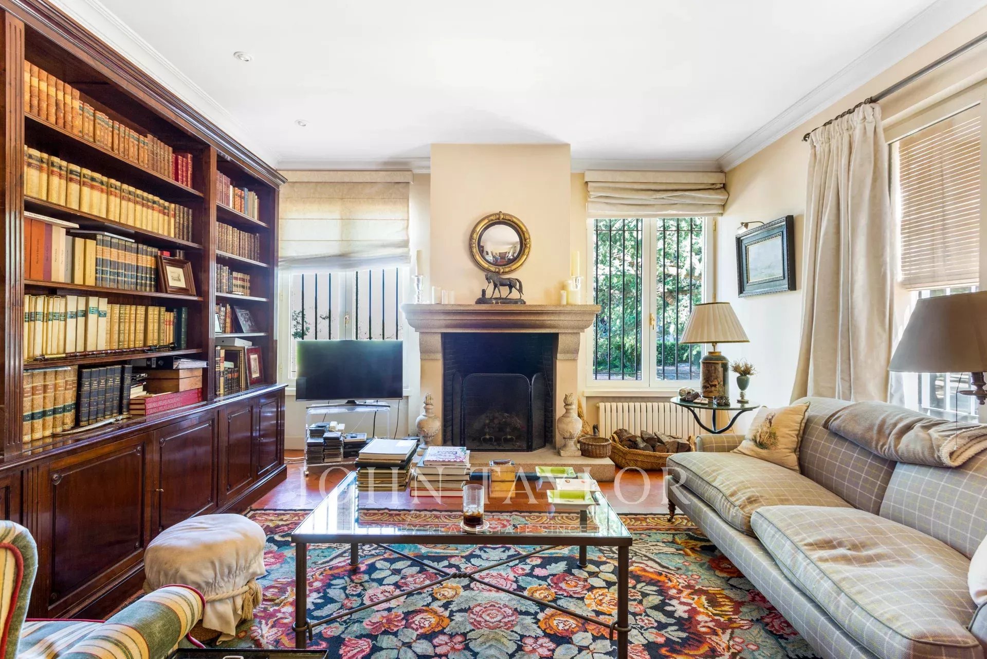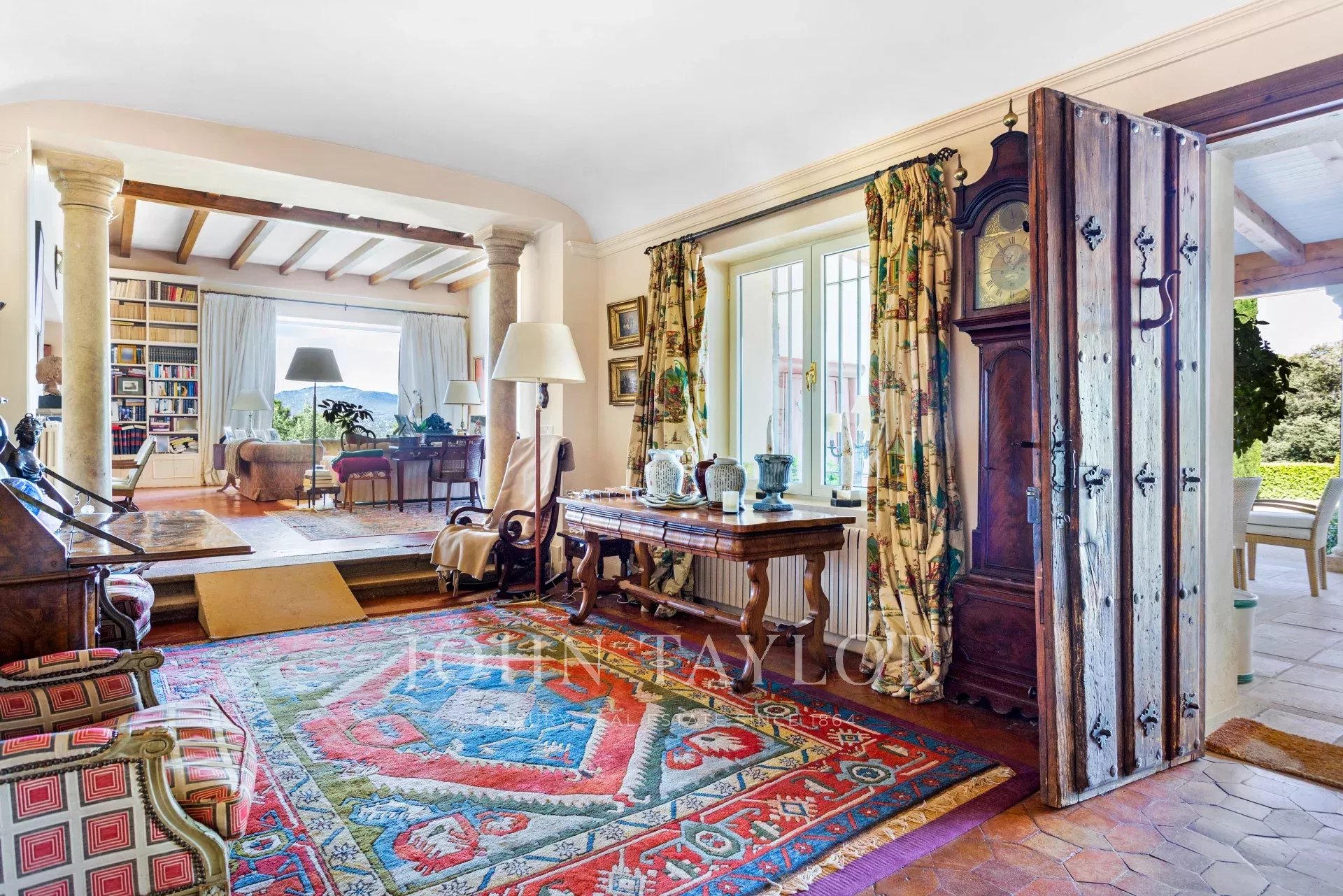 Main house: Upon entering the property, we are greeted by a fabulous porch that invites you to rest, peace and tranquility, undoubtedly one of the most desired places in the house for its orientation, its freshness and the sound of water falling into the fountain located in the garden. We access the interior of the house, through a welcoming hall that leads to the living room (90m²) with fireplace distributed in several rooms. This bright and intimate area is equipped with large windows that flood the room with light and offer unbeatable views. In the opposite area we find a dining area (20m²) that leads to the living room (35m²) also with fireplace. The sleeping area consists of five large bedrooms all with en suite bathrooms. The master bedroom has a separate dressing room. The kitchen area is distributed in office area, kitchen, technical room, and service bedroom with bathroom. From this area we can access the garden areas of the property.