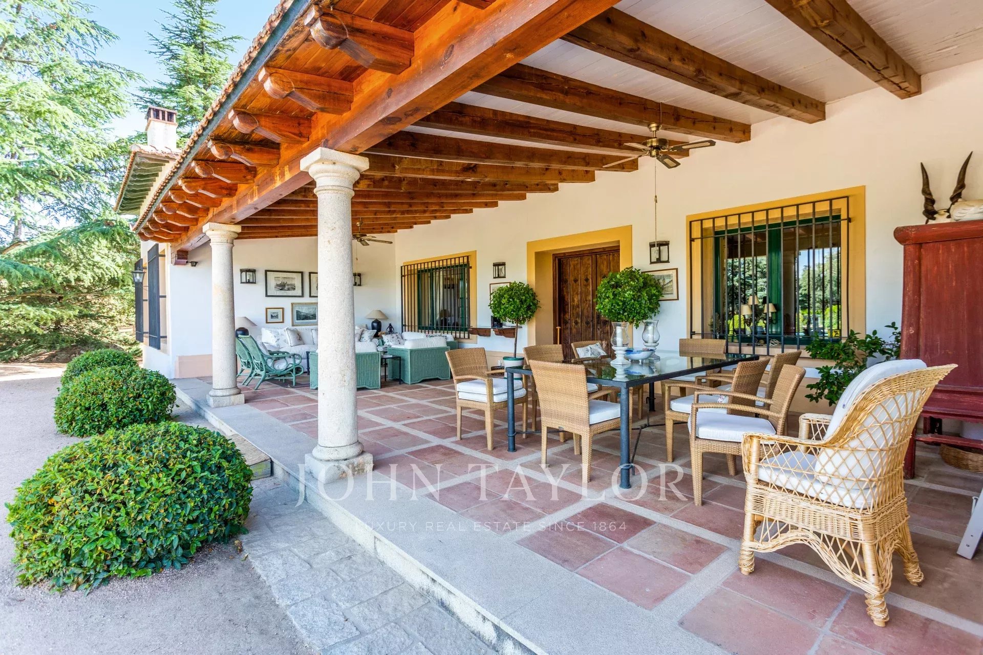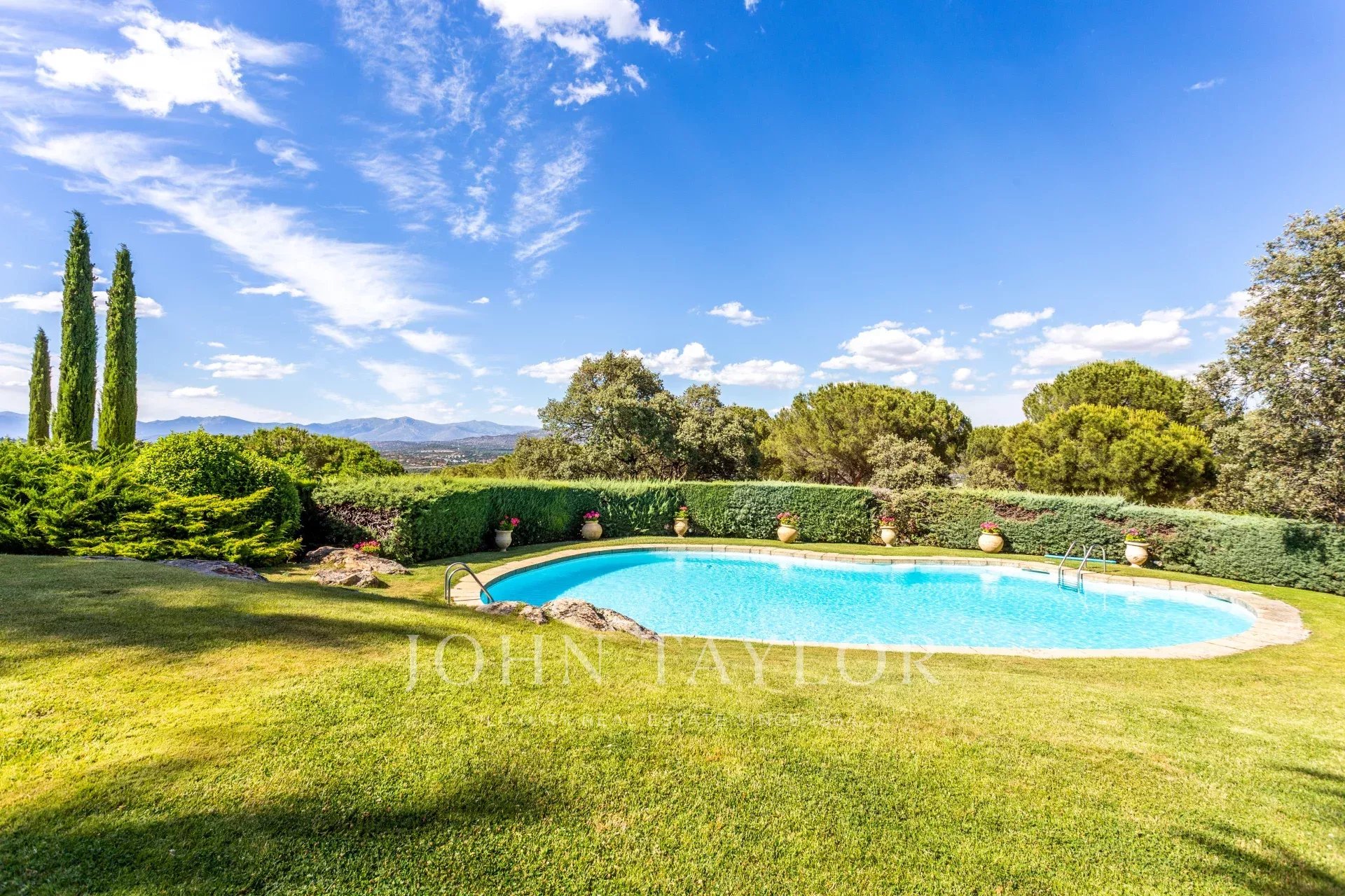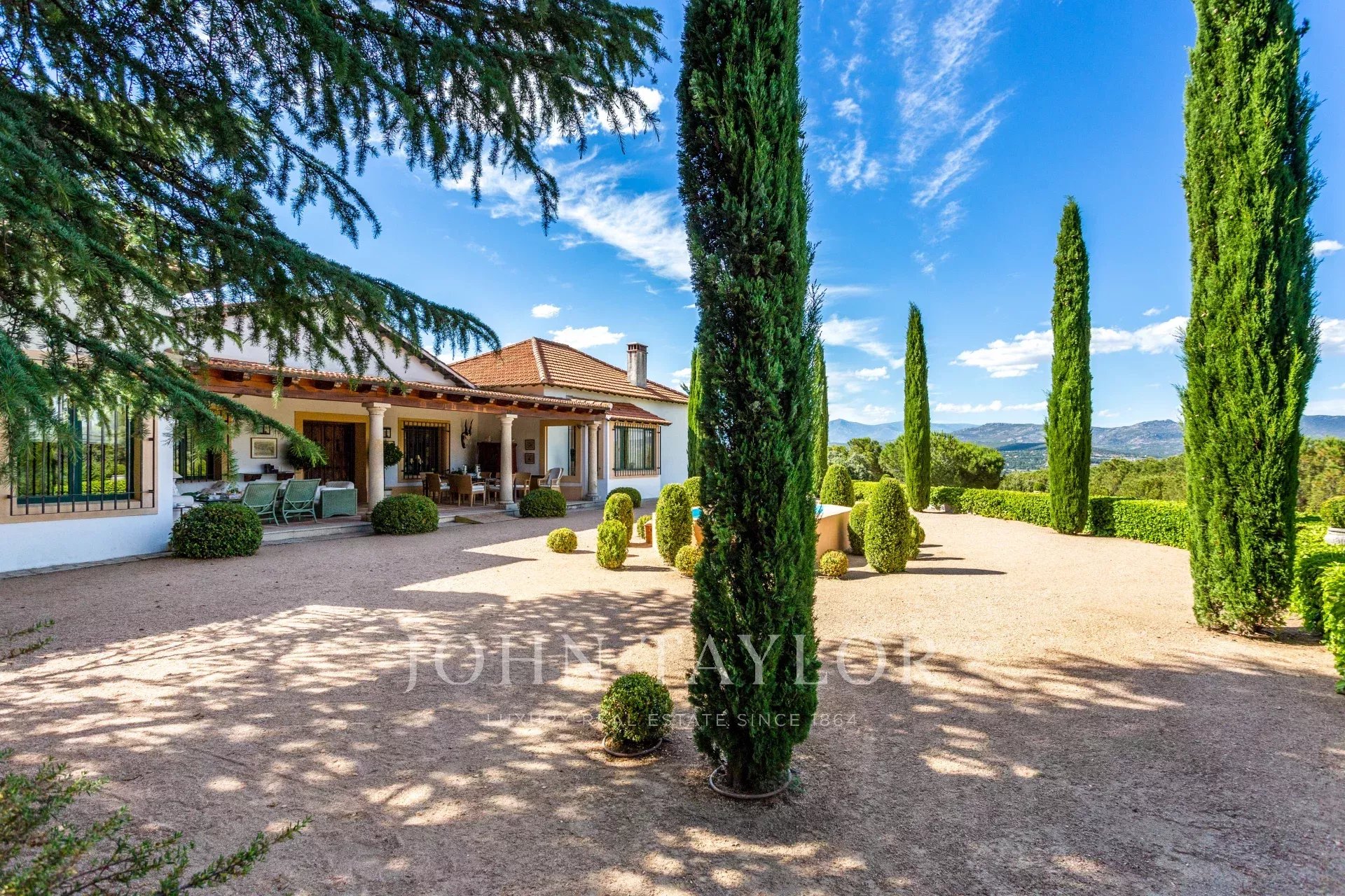 The main house sits on a plot of 160,000 m² at the top of Puerto de Galapagar, a natural paradise with a continental climate surrounded by lush vegetation. Its splendid location offers incredible views of the entire Madrid mountain range, guaranteeing an unbeatable quality of life.