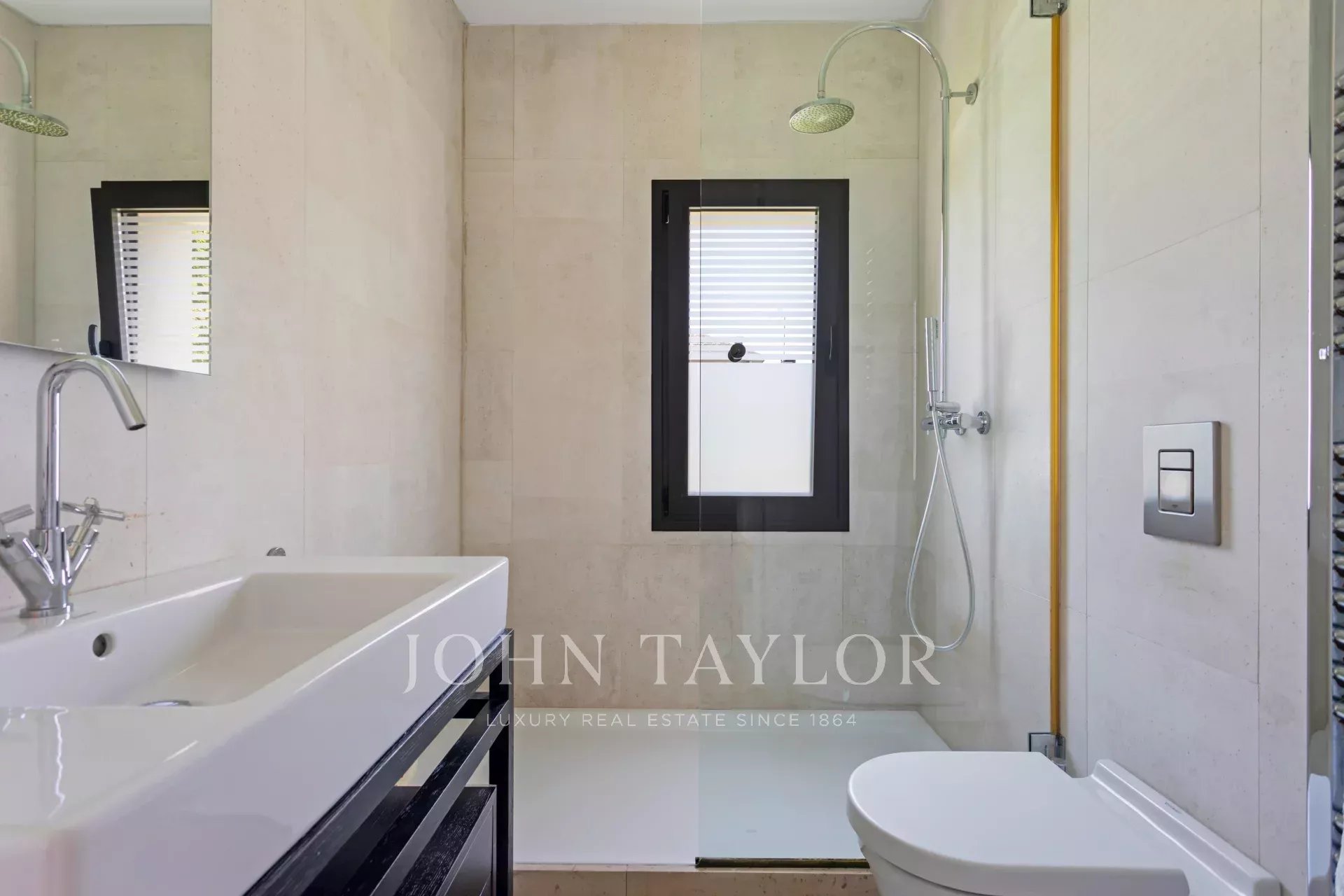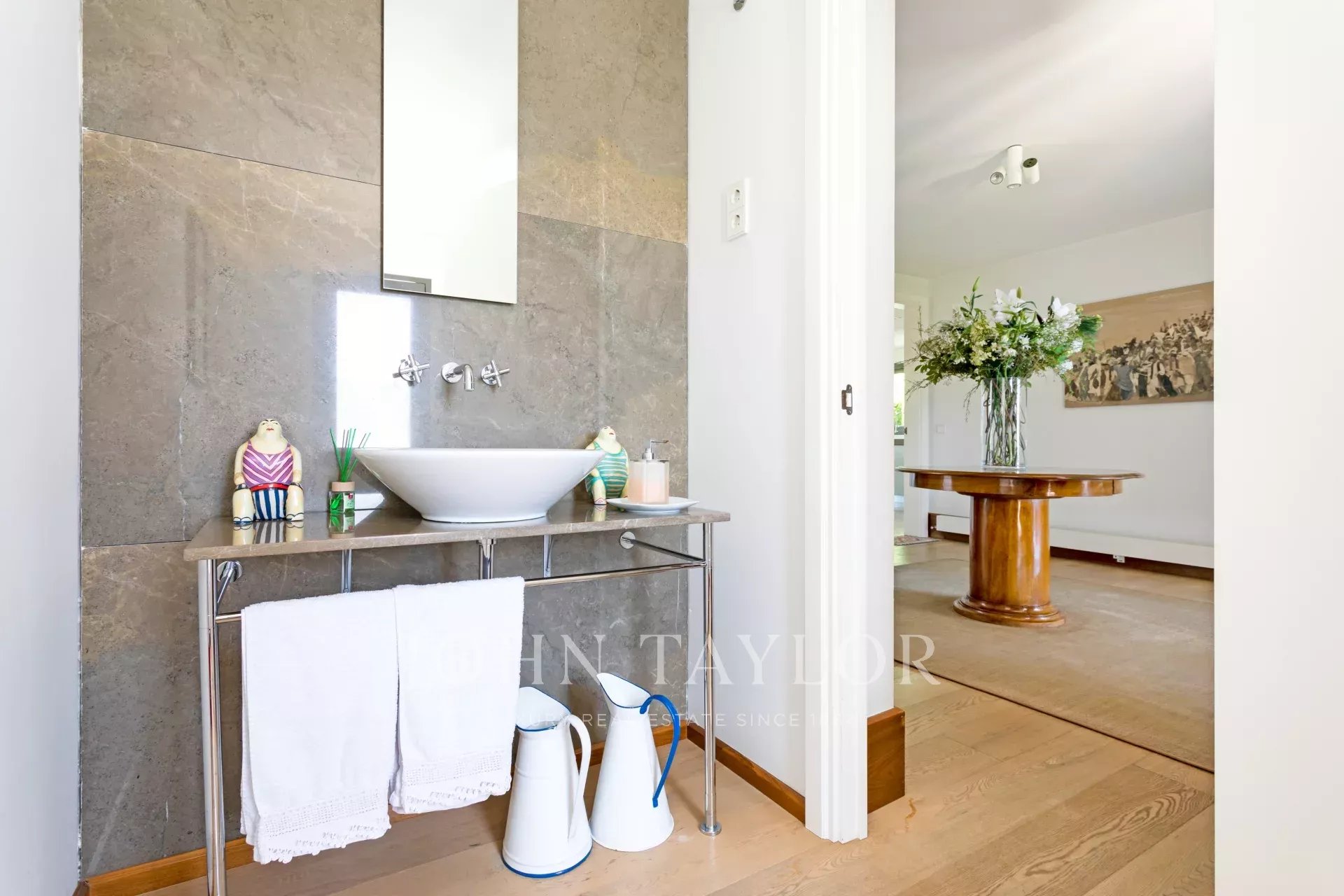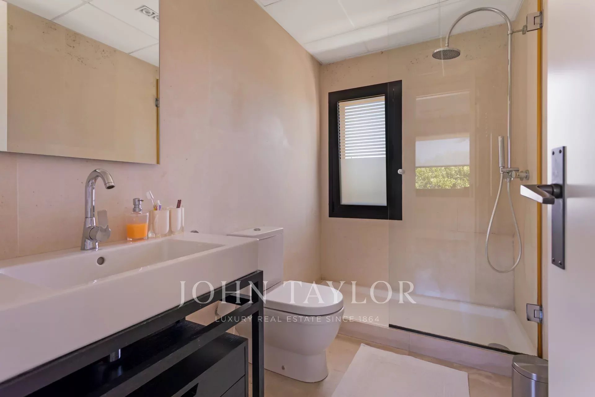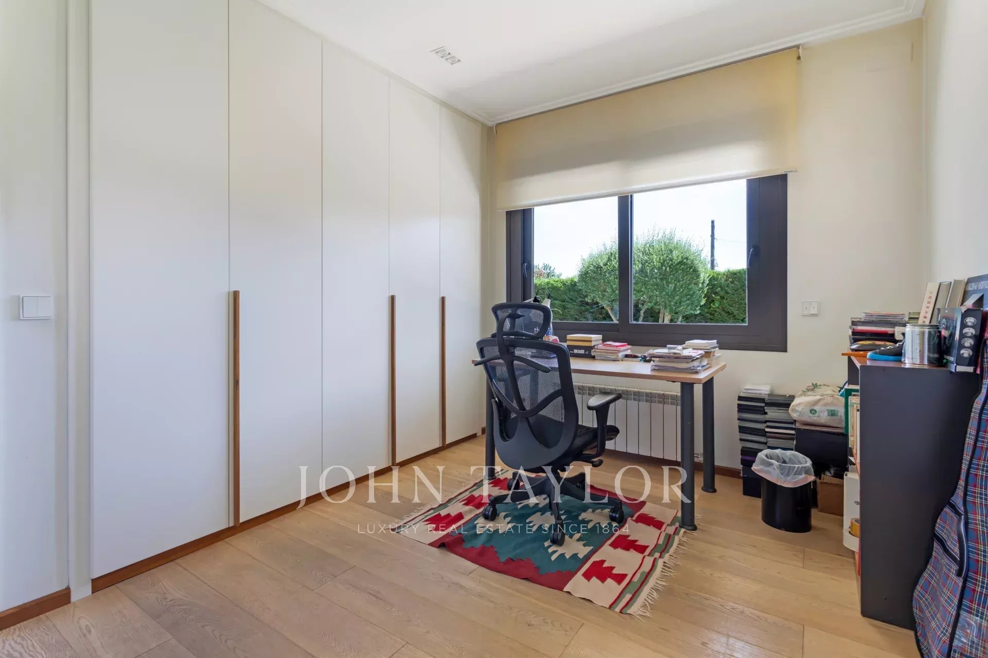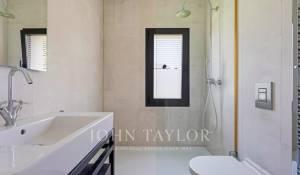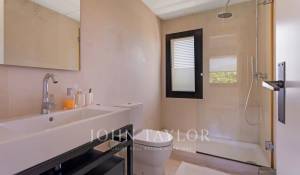 Upstairs are the bedrooms, each with its own en-suite bathroom, ensuring maximum privacy and comfort. The master suite includes a large dressing room and a luxurious bathroom with marble finishes and a whirlpool bath. The secondary bedrooms are equally spacious and are designed with the same level of detail and quality.
