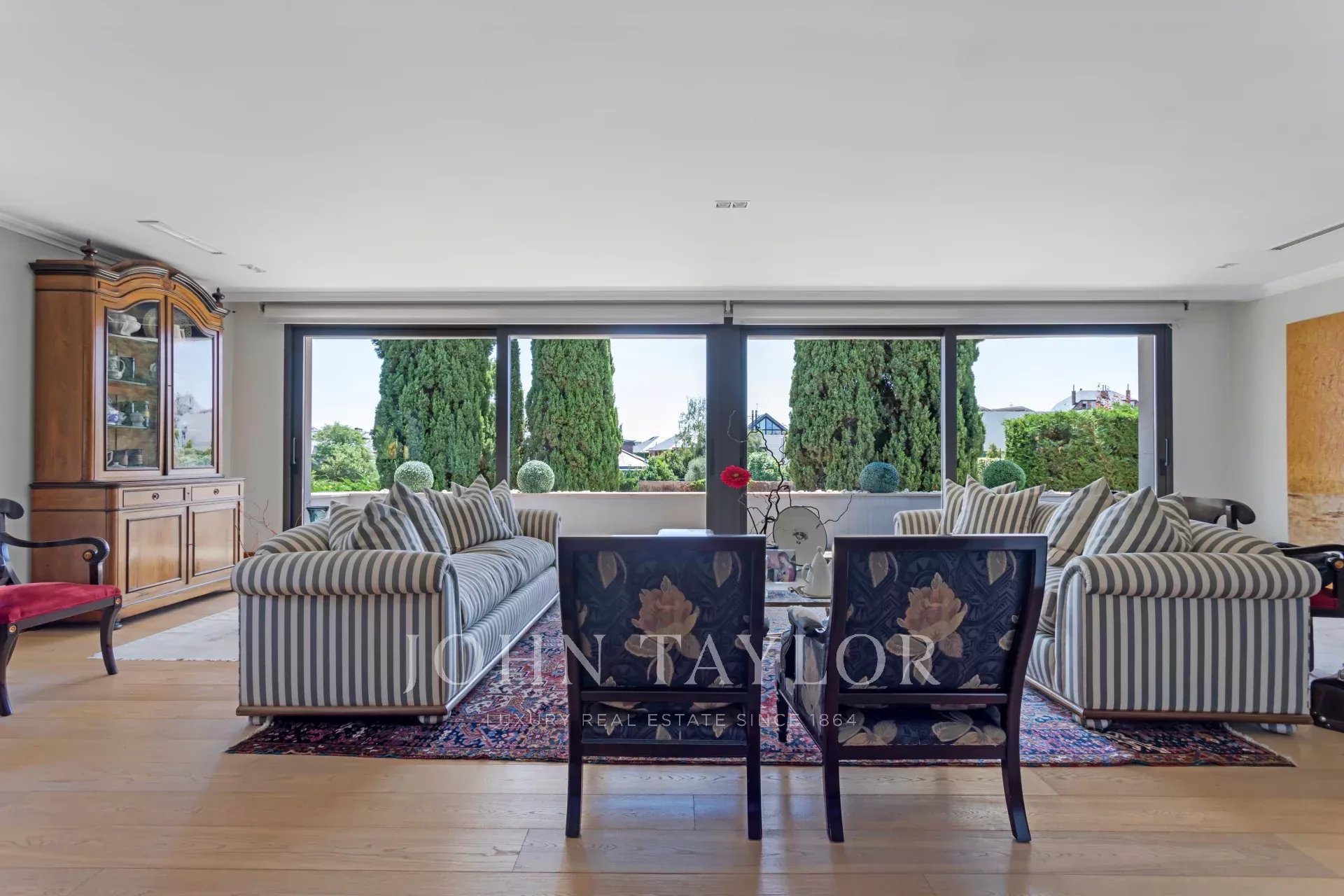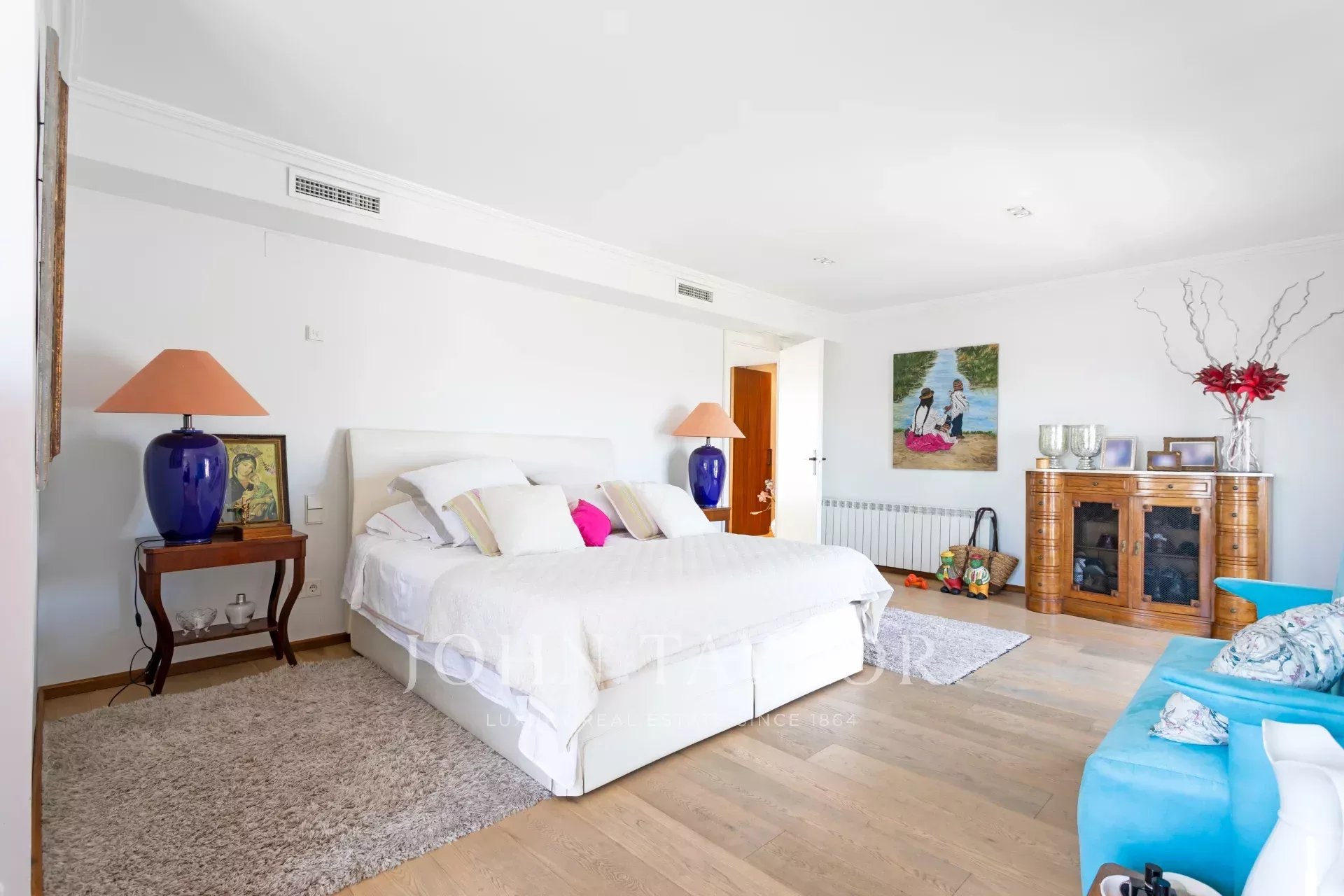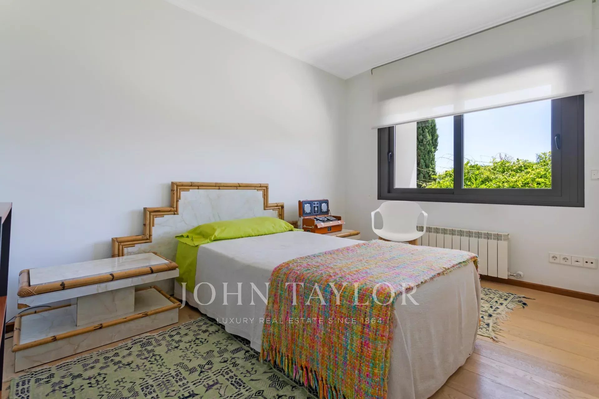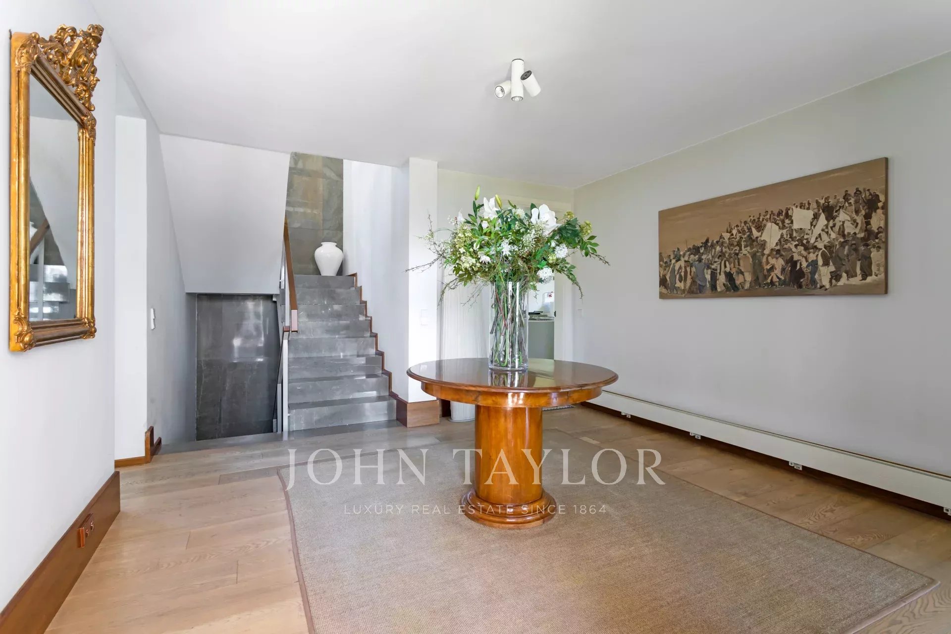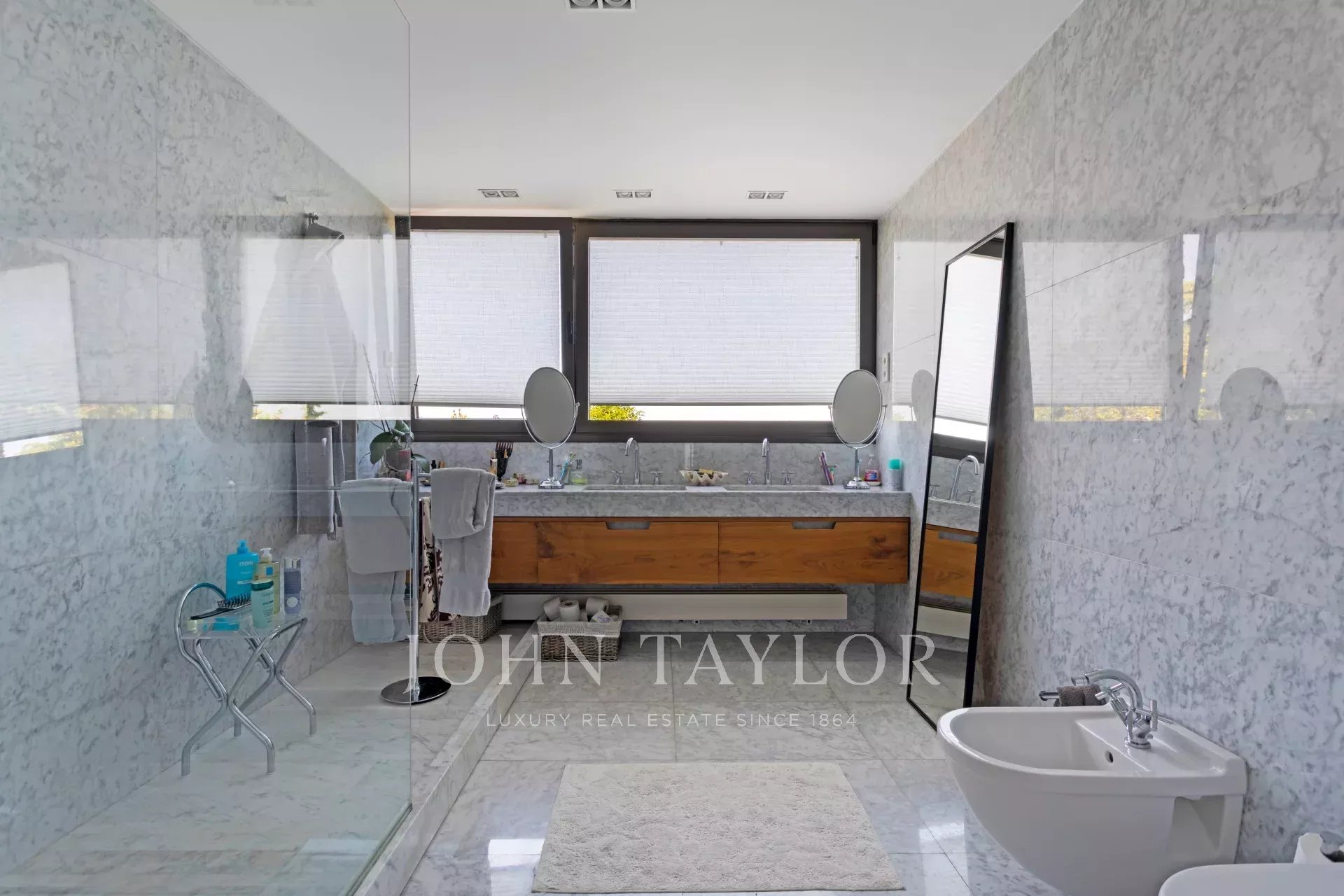 Upstairs are the bedrooms, each with its own en-suite bathroom, ensuring maximum privacy and comfort. The master suite includes a large dressing room and a luxurious bathroom with marble finishes and a whirlpool bath. The secondary bedrooms are equally spacious and are designed with the same level of detail and quality.
