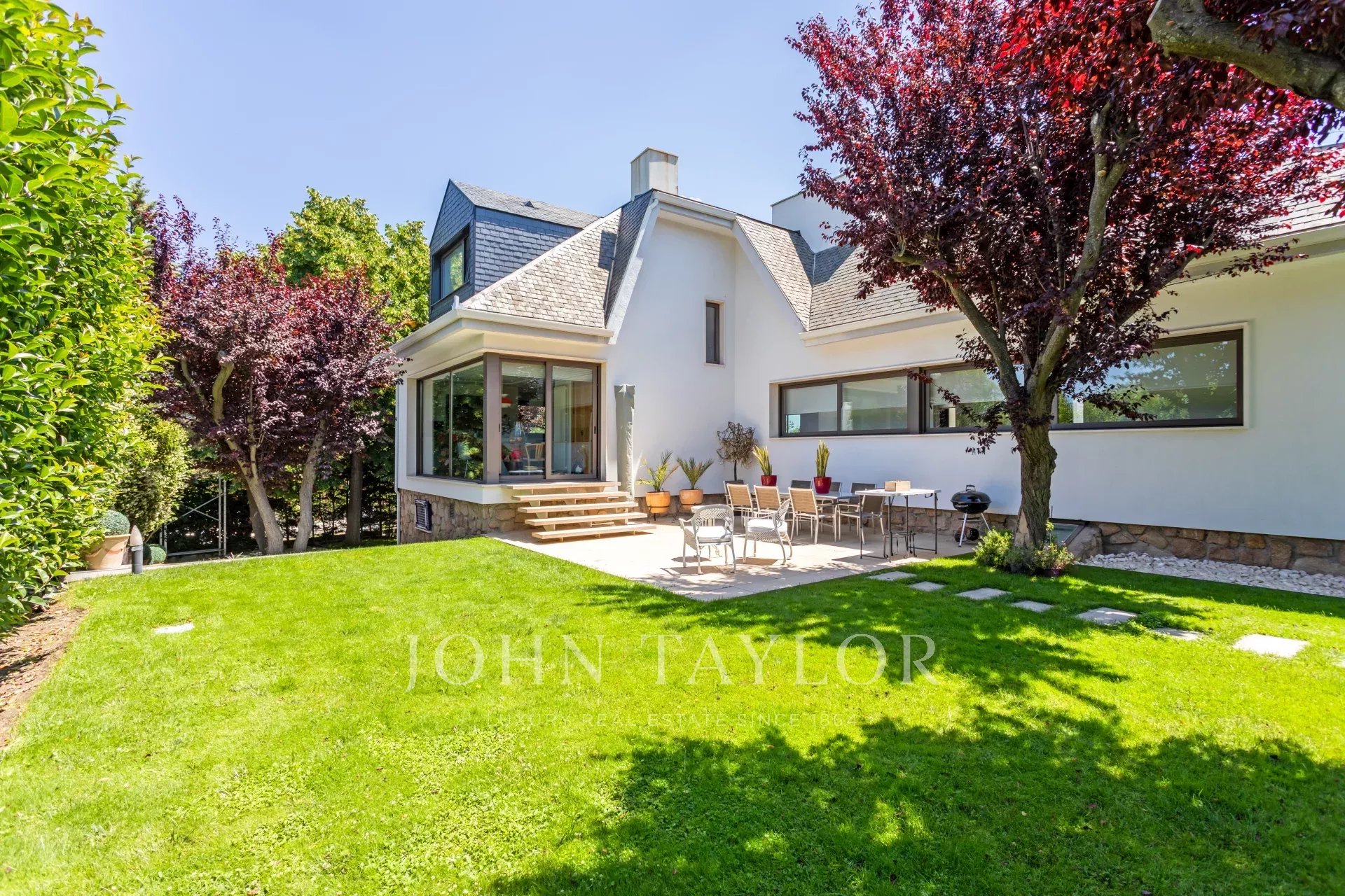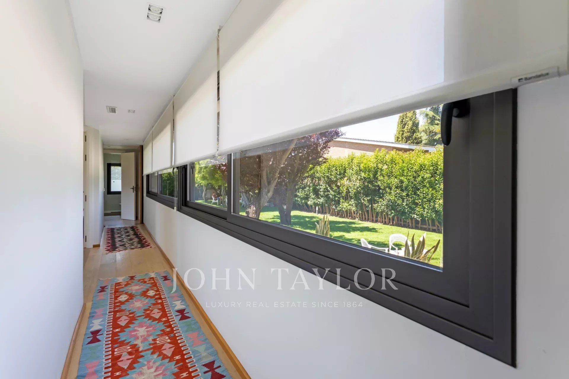 The basement of the home houses a number of additional amenities that add value to the property. Here you will find a games room, ideal for children and teenagers, a fully equipped gym and an air-conditioned wine cellar for wine lovers. In addition, the garage can accommodate several vehicles and has an advanced security system.