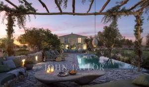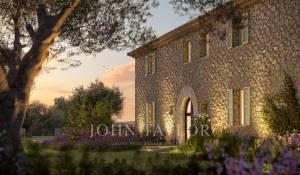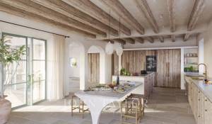 This project in construction at present with completion expected in 18 months is designed to integrate into its country surroundings with its natural stone facade, olive green windows and shutters and traditional clay roofing. The property will be surrounded by lush Mediterranean gardens which together offer a harmonious environment. Upon entrance the stone flooring, warm neutral colours, high ceilings, wooden beams, stunning staircase which is a work of art in itself and architectural contours used throughout based on an open plan layout offers an inviting and luxurious interior. The ground floor includes a spacious fully fitted kitchen/dining area complete with a large pantry for extra space. The interior dining area flows naturally to the exterior pergola, ideal for al fresco dining and also to the living room with open fireplace and cosy chillout area, also with access to the exterior terrace/garden and pool area. This floor is completed with a guest bathroom. The first floor includes three double bedrooms with en suite bathrooms and the superb master suite with en suite bathroom and dressing area. The basement includes garage parking for 4 cars, laundry, storage and maintanence rooms. The exterior of the property includes terraces, pergola, beautiful pool area and Summer kitchen.
