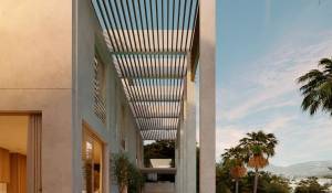 The upper floor boasts a spacious distributor, staircase, and elevator. The master suite is a true sanctuary with an expansive en-suite bathroom, a private terrace, and stunning views. There are two additional bedrooms, each with an en-suite bathroom and private balconies.