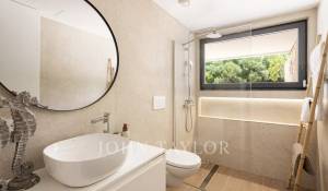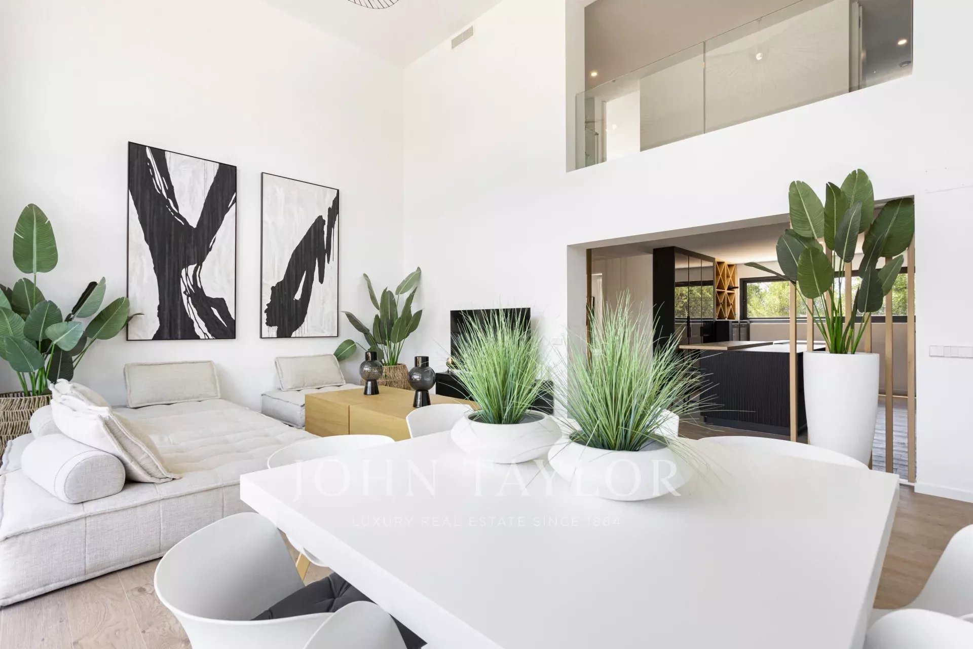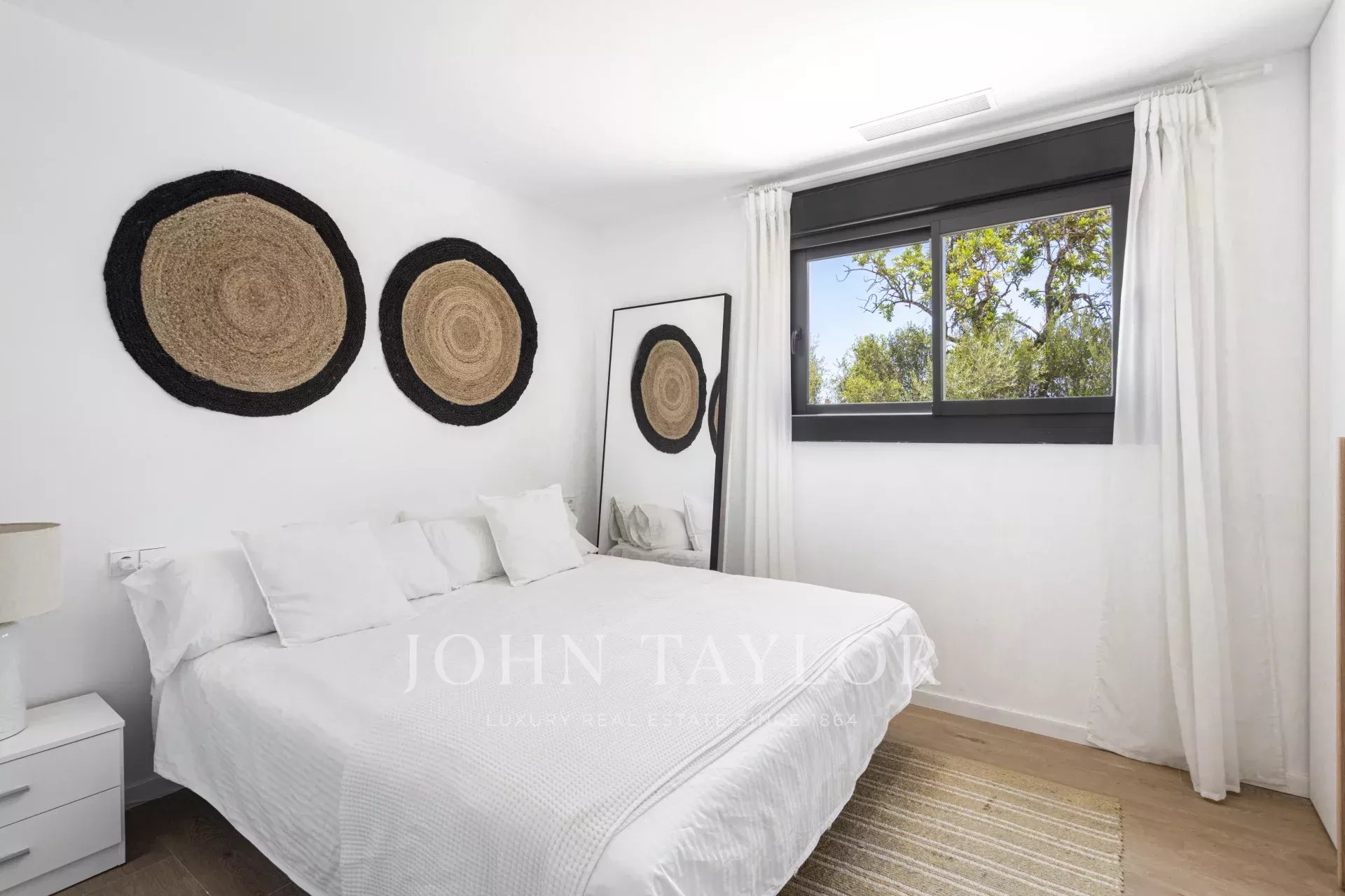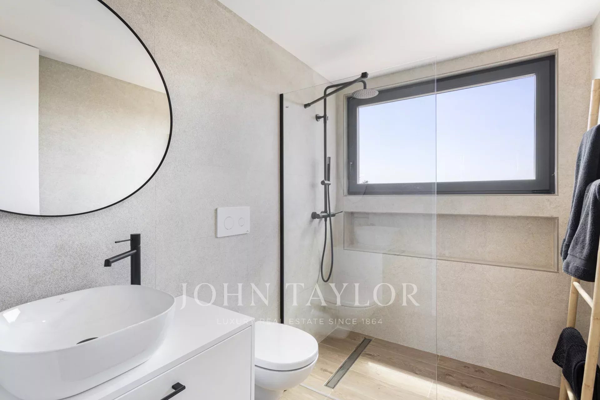The main house offers a bright living area characterised by its high ceiling and large window fronts, as well as 4 double bedrooms, including a master suite with dressing room and bathroom en suite, and a laundry room. The property has a total of 6 bathrooms, three of which are en suite.