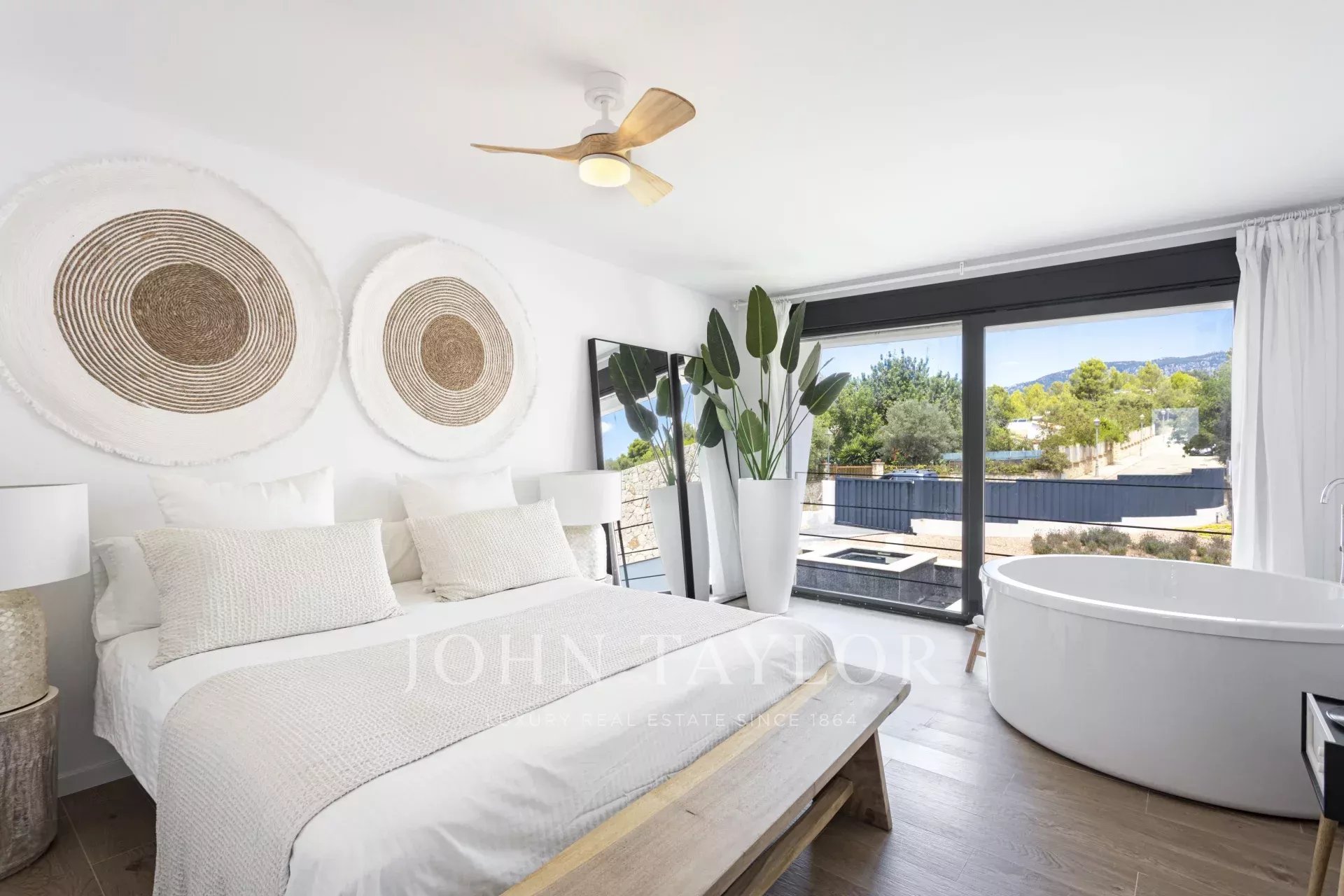 The Sa Coma urbanisation is located approximately. 15 minutes from the island's capital, Palma, and is easily accessible via the road to Soller. The newly built villa has only recently been completed and has a high-quality and modern interior.