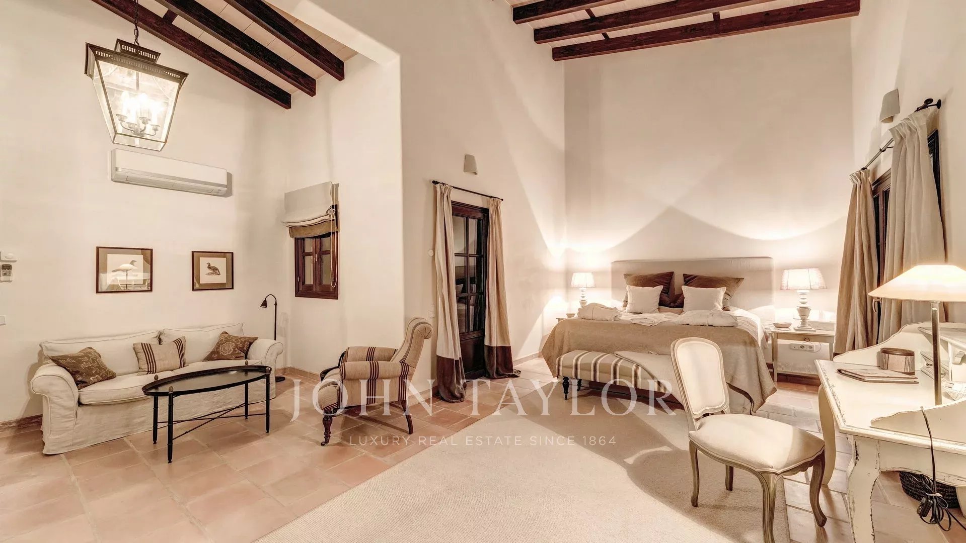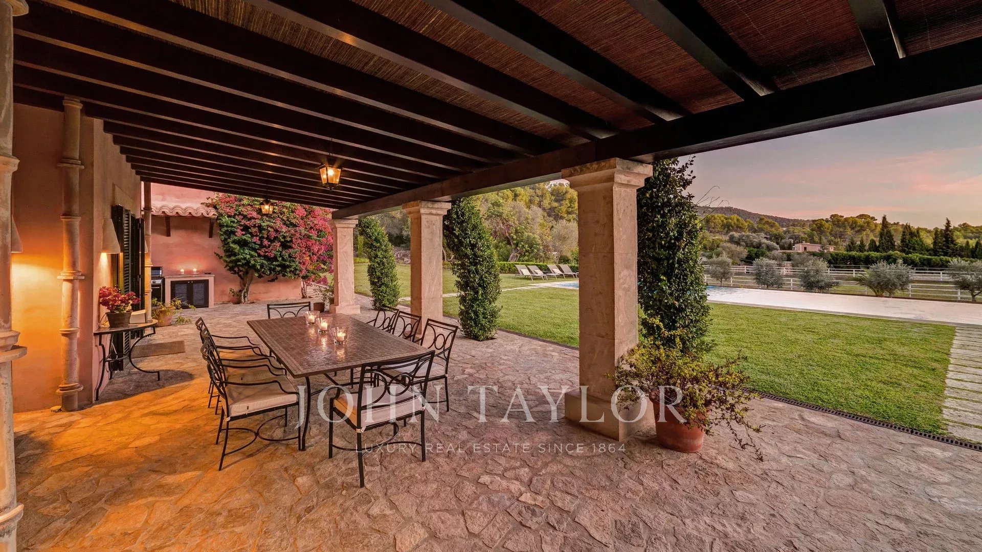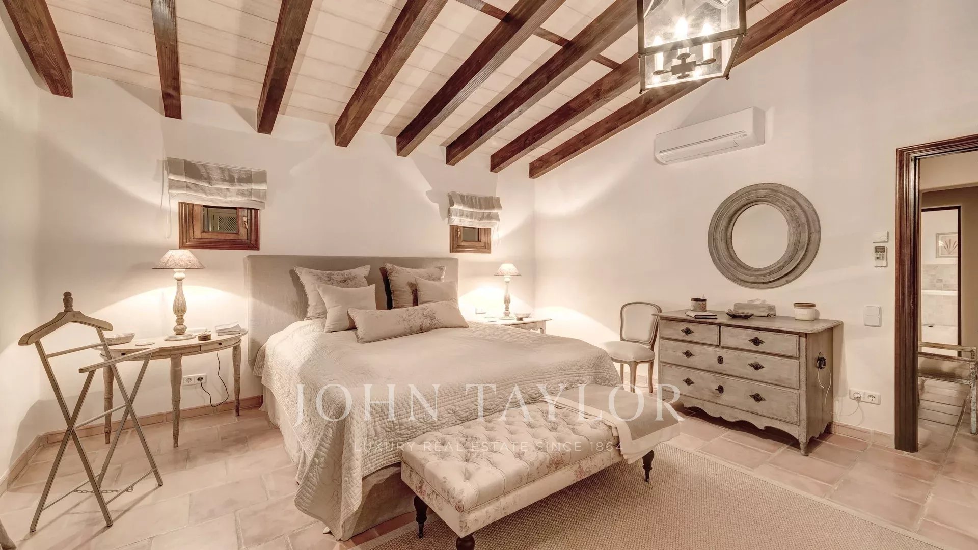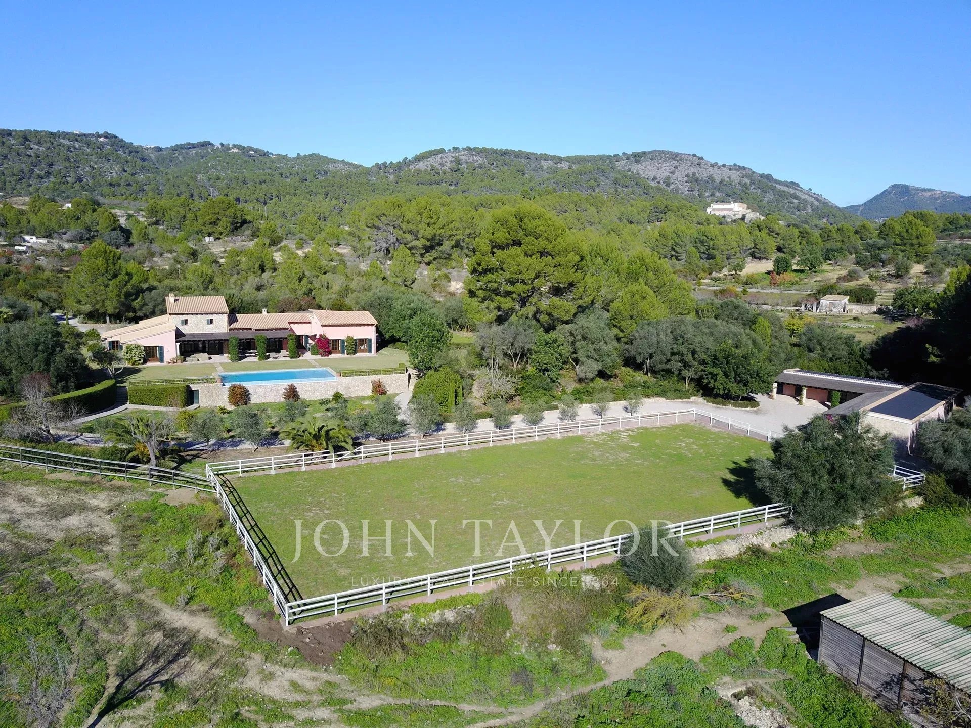 In a simply fantastic location, this finca for sale offers an unparalleled living experience. Set in an environment of serene tranquillity, it offers total privacy and an unrivaled connection to the surrounding nature. Despite its idyllic retreat, this property enjoys close proximity to all the amenities that the southwest of Mallorca has to offer. This Finca is just a stone's throw away from the charming village of Calvia, and just a 15-minute' drive away, golden beaches, renowned golf courses, select restaurants, charming bars, and exclusive shops unfold. With a plot size of 30,000 m2, this gem of a property was completely refurbished in 2012 and offers oil underfloor heating, a wrought iron entrance door, very high ceilings with exposed beams, and muntin double-glazed country-style windows. With its own water well and solar panels, the property is totally self-sufficient. The main house is a testament to elegance and functionality, with a spacious living room that invites relaxation, a high-quality kitchen, a guest toilet, and four bedrooms, each with its own bathroom. In addition, the property features a guest flat offering its own living space with a living room and kitchen, two bedrooms, and a bathroom. The covered terraces and the lush and paradisiacal garden with its infinity pool are an oasis of luxury and comfort that will satisfy all your outdoor living desires. From there you will enjoy majestic views of the mountains. For horse and donkey lovers, this estate has several stables and sufficient paddocks, making it a perfect haven for horse riding enthusiasts. Please arrange a visit with us.