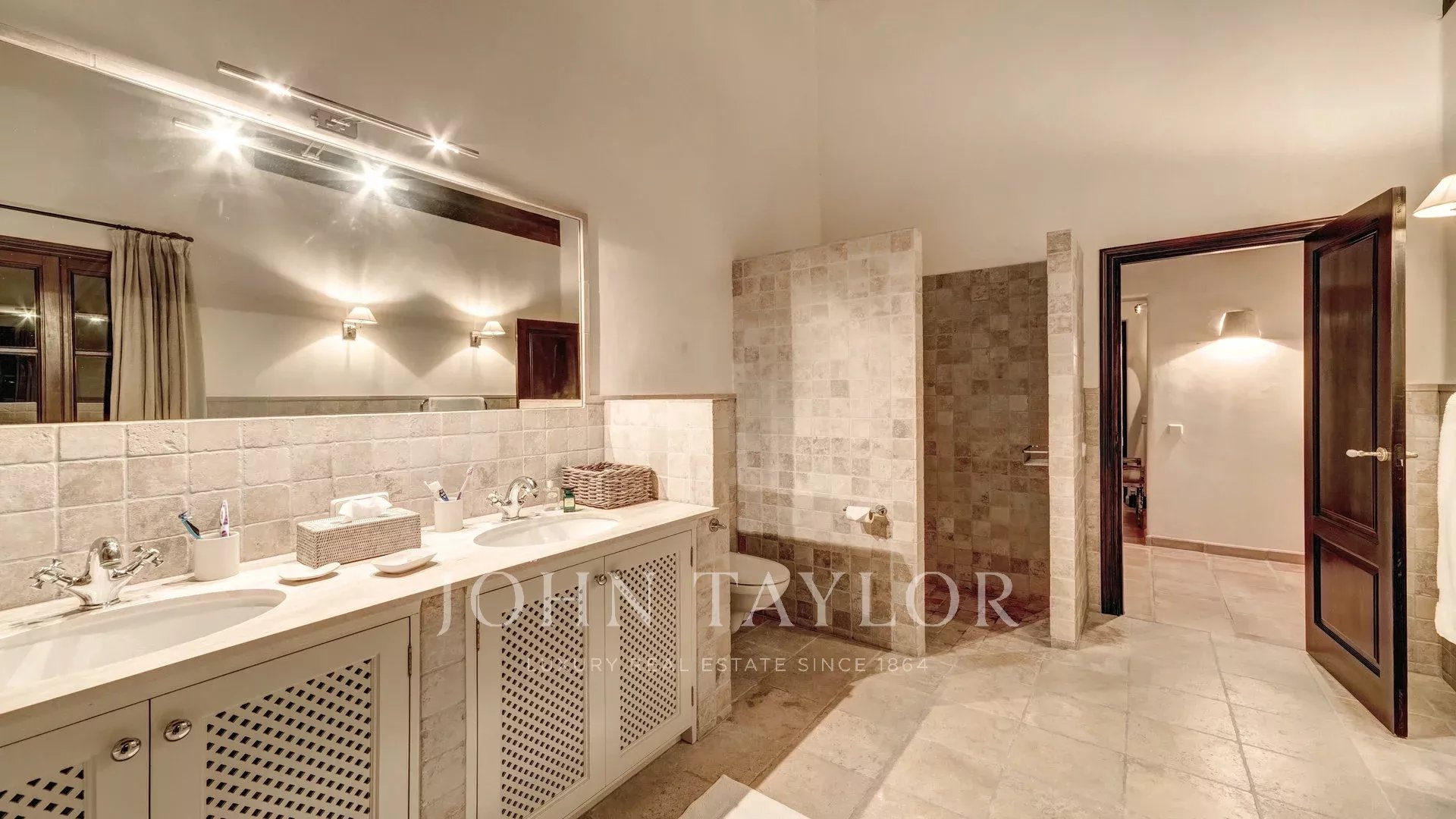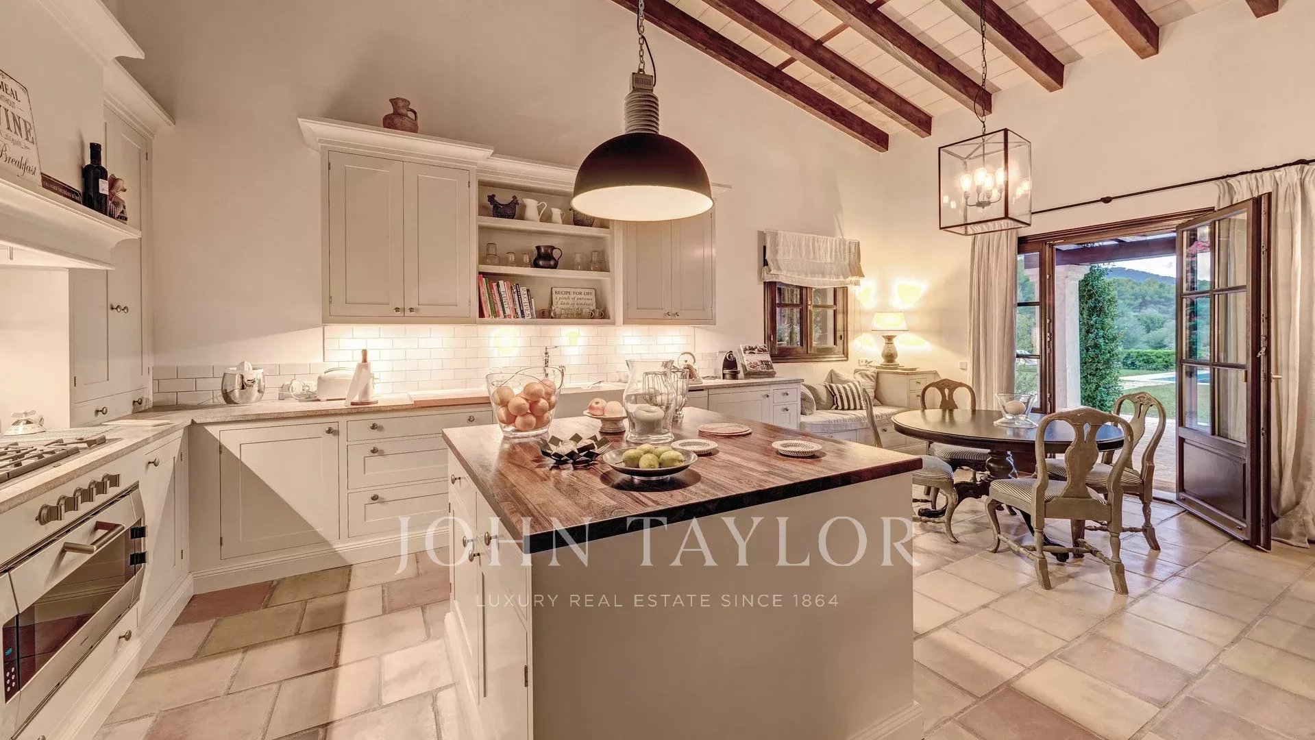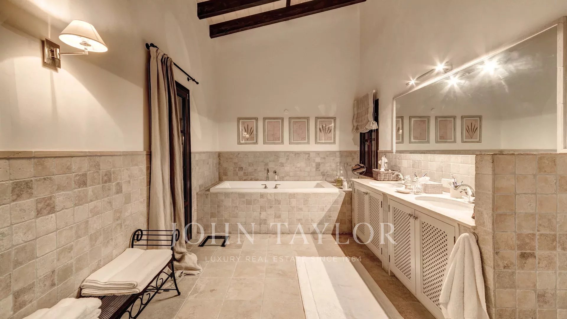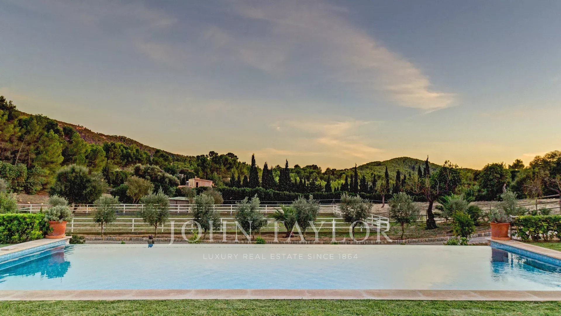 In a simply fantastic location, this finca for sale offers an unparalleled living experience. Set in an environment of serene tranquillity, it offers total privacy and an unrivaled connection to the surrounding nature. Despite its idyllic retreat, this property enjoys close proximity to all the amenities that the southwest of Mallorca has to offer. This Finca is just a stone's throw away from the charming village of Calvia, and just a 15-minute' drive away, golden beaches, renowned golf courses, select restaurants, charming bars, and exclusive shops unfold. With a plot size of 30,000 m2, this gem of a property was completely refurbished in 2012 and offers oil underfloor heating, a wrought iron entrance door, very high ceilings with exposed beams, and muntin double-glazed country-style windows. With its own water well and solar panels, the property is totally self-sufficient. The main house is a testament to elegance and functionality, with a spacious living room that invites relaxation, a high-quality kitchen, a guest toilet, and four bedrooms, each with its own bathroom. In addition, the property features a guest flat offering its own living space with a living room and kitchen, two bedrooms, and a bathroom. The covered terraces and the lush and paradisiacal garden with its infinity pool are an oasis of luxury and comfort that will satisfy all your outdoor living desires. From there you will enjoy majestic views of the mountains. For horse and donkey lovers, this estate has several stables and sufficient paddocks, making it a perfect haven for horse riding enthusiasts. Please arrange a visit with us.