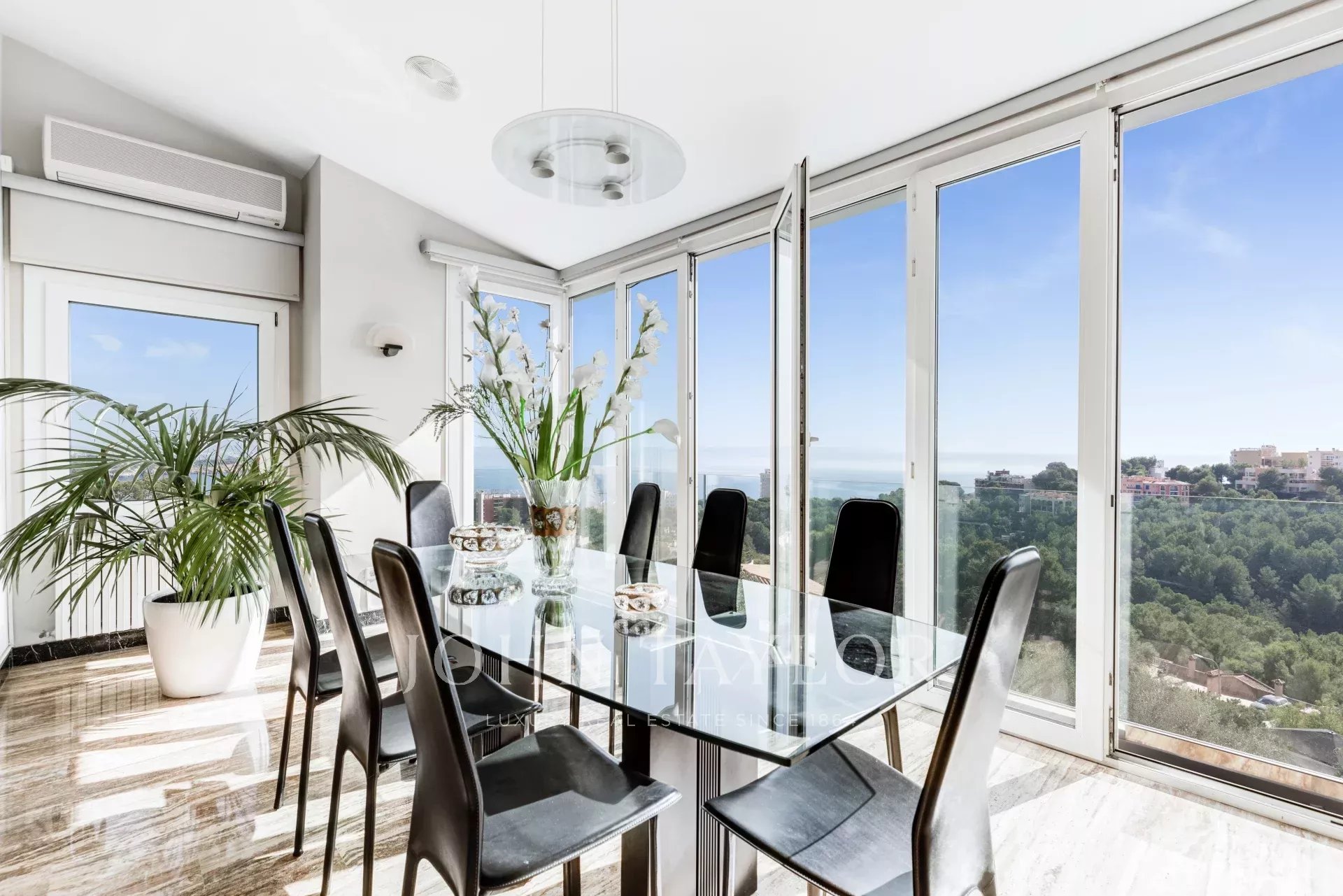 Luxury villa with sea views and rental license in Cas Catalá. This house with original architecture and high ceilings is situated in a wonderful location high in the quiet residential area of Cas Catalá. Thanks to its elevated position almost every room of the house enjoys fabulous views over the Bay of Palma.