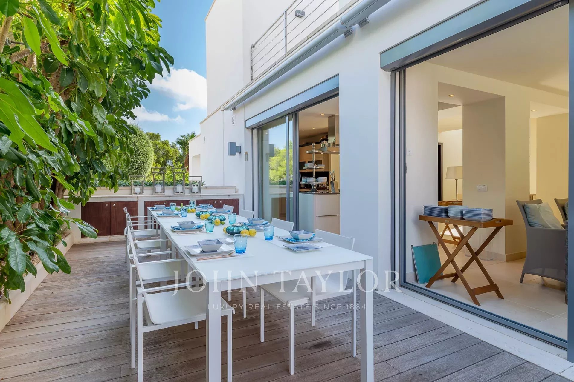 Upstairs there are three further bedrooms, two of which share a large bathroom, with their own terraces and private areas. The spacious and majestic master bedroom has an en-suite bathroom, a dressing room and a large terrace overlooking the bay of Palmanova, turning evenings into magical moments under the lights of the bay.