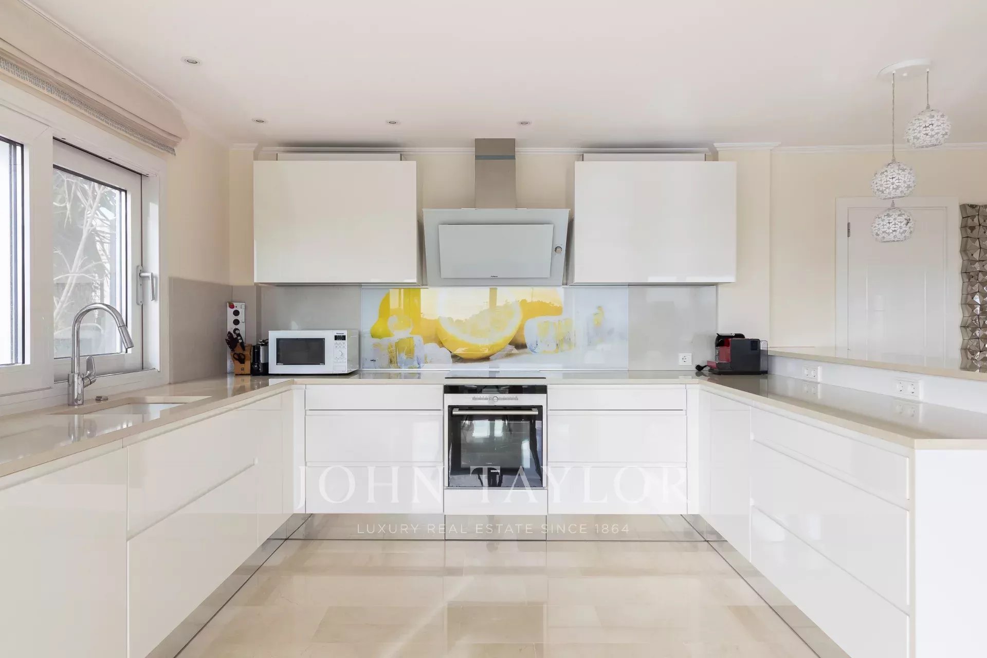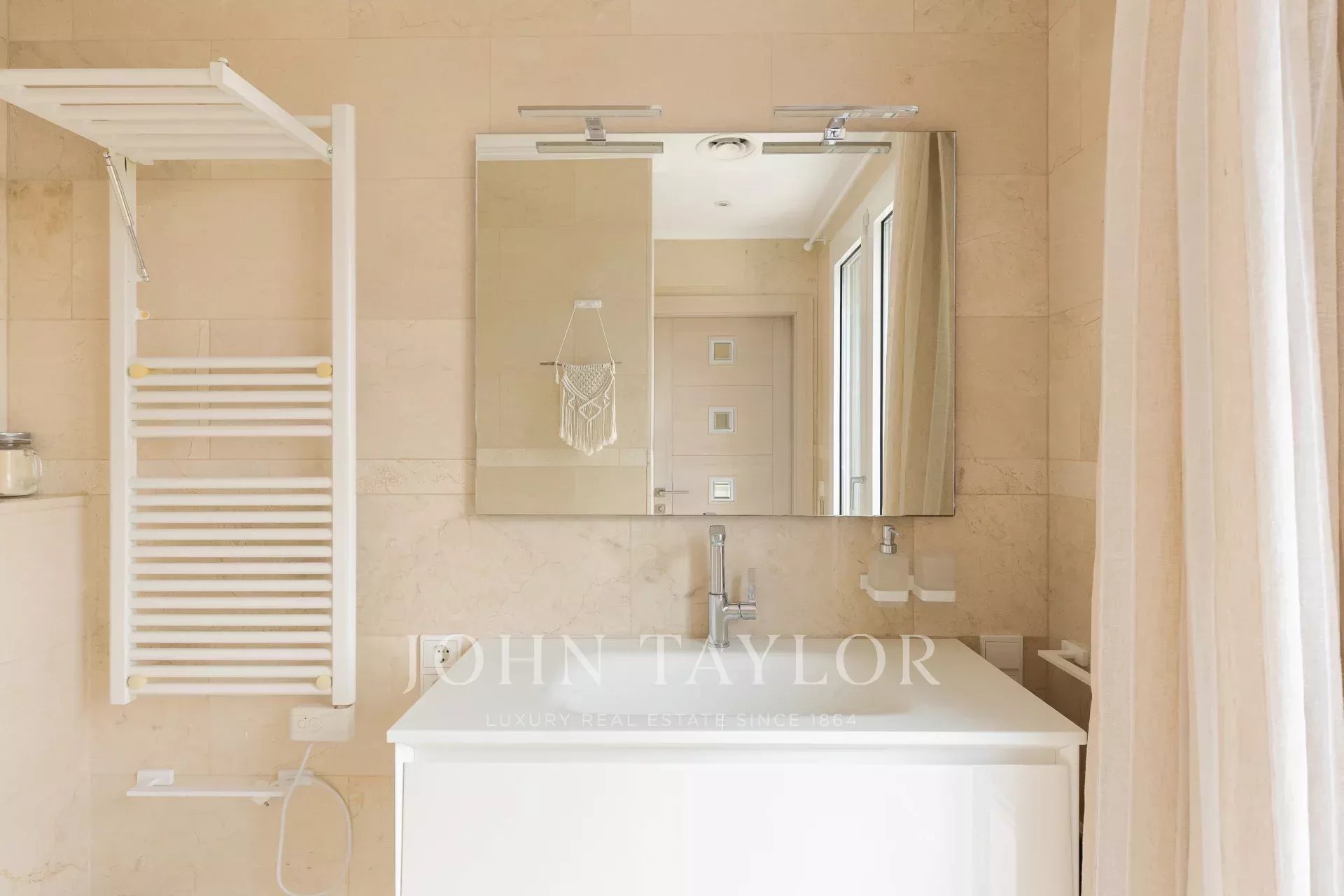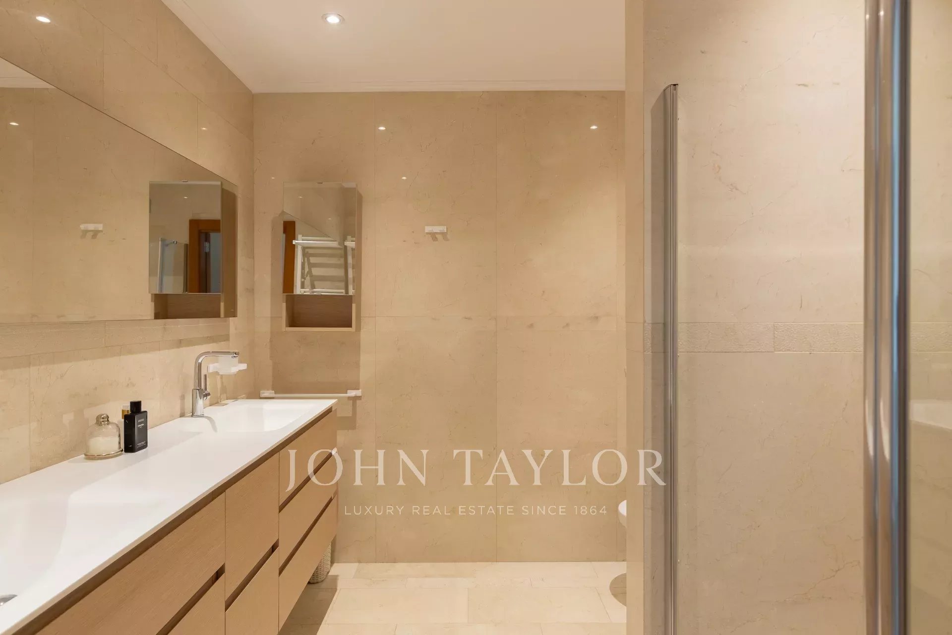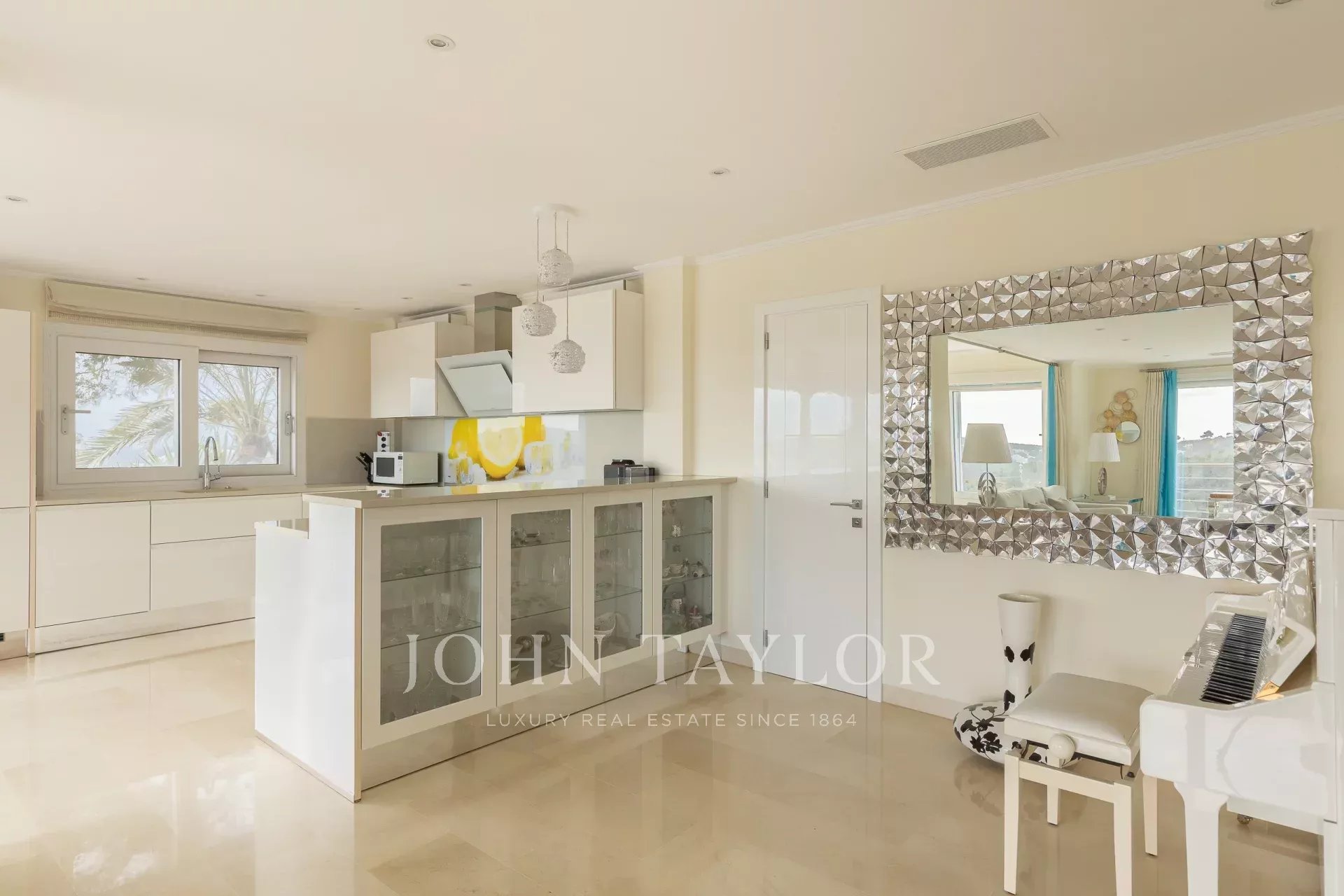 Discover this stunning contemporary design villa, completely refurbished and located in one of the most quiet and sought after areas of the island. With spectacular sea views, this property combines luxury, comfort and privacy, just a few minutes drive from the beaches of Santa Ponsa, Palmanova, Peguera, Camp de Mar and a charming hidden cove. The villa offers three spacious bedrooms with their elegant full bathrooms, plus two guest toilets. The open concept kitchen, fully equipped, merges with a bright living room, creating a sophisticated and cozy atmosphere with lateral and panoramic sea views. One of the biggest attractions of this property is its exclusive spa area, which includes a hammam and a spectacular indoor heated pool of 45 m², perfect for relaxing all year round. Outside, the villa has several spaces to relax and enjoy the Mediterranean climate in a serene environment. The high-end finishes include marble floors with underfloor heating, ducted hot/cold air conditioning and solar panels for greater energy efficiency. In addition, it has a closed garage, outdoor parking for two cars, laundry, storage room, barbecue area and garden area that frames this property. A unique house that combines luxury, exclusivity and proximity to the sea. Contact us for more information or to schedule a visit.