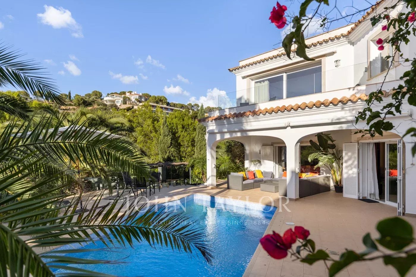 Built in 2001 and continuously modernized with high quality standards this property combines spaciousness, brightness and a natural connection to the Mediterranean environment. From the first moment the house transmits a feeling of space and light thanks to its open plan layout where the living room, dining room and kitchen are integrated in a harmonious environment that flows directly onto the terraces and the pool area creating a perfect continuity between indoors and outdoors and allowing to enjoy the Mediterranean lifestyle all year round. On the first floor the spacious living room opens onto the terrace and the private pool surrounded by gardens that guarantee absolute privacy while the elegant open kitchen with dining area becomes the heart of the home, ideal both for family life and for receiving guests in a sophisticated and cozy atmosphere. On this same floor there is a generous double bedroom with en-suite bathroom, a guest toilet as well as a large laundry room and storage room offering functionality and convenience in day-to-day living. The upper floor offers a real haven of tranquility with a spectacular master suite enjoying panoramic sea views with en suite bathroom and a large private terrace perfect for watching unforgettable sunsets. In addition there are two further double bedrooms each with their own en-suite bathroom as well as a private office or study ideal for working from home. The house has a covered parking space and the possibility of making a garage. The exterior presents itself as a true oasis with private pool. Several terraces and different living areas surrounded by lush vegetation that provide freshness, privacy and natural beauty. Additional features of the property are an elegant gas fireplace in the living room, central air conditioning in the main living areas, gas heating for optimal comfort in any season, high quality materials and an excellent general condition making it an ideal choice both as a permanent residence or as an exclusive holiday retreat near the sea.