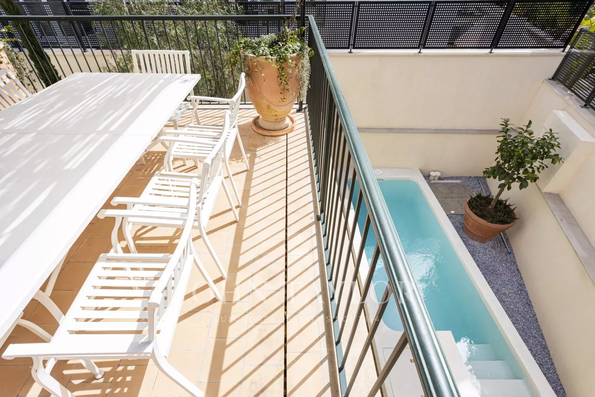 This spectacular house in San Agustín, Palma de Mallorca, has been completely refurbished to the highest quality standards. Situated next to the Hotel Maricel, one of the most exclusive locations in the city, this property offers a perfect combination of luxury, comfort, and advanced technology. With 297 m² of completely renovated living space, the house has 2 double bedrooms and 1 single bedroom, all with luxury finishes. In addition, it has two spacious and bright living rooms designed for comfort and elegance, one of them with an integrated open-plan kitchen. The large 54 m² garage can be used as such or as a gym, spa, cinema room, or any additional space according to your needs, and it has an additional driveway and private parking. The property also boasts two outdoor terraces and a roof terrace, the latter with partial sea views, as well as a beautiful micro-cement saline pool on the ground floor, offering a private oasis. The house has been designed using high-end natural materials such as larch and iroko wood, Perlino marble, and stone from Santanyi and Binissalem. The tiling in the bathrooms, hand-painted in Italy, together with the use of micro-cement, adds a touch of sophistication and style. In terms of comfort and technology, the property has underfloor heating and ducted air conditioning to ensure a perfect temperature at any time of the year. Energy efficiency is optimised with heat pump DHW, water softener, and its own pressure boosting system. In addition, the property includes an advanced home automation system for lighting and air conditioning, as well as pre-installation for an alarm, electric charger, and automatic irrigation to keep the garden perfectly maintained.