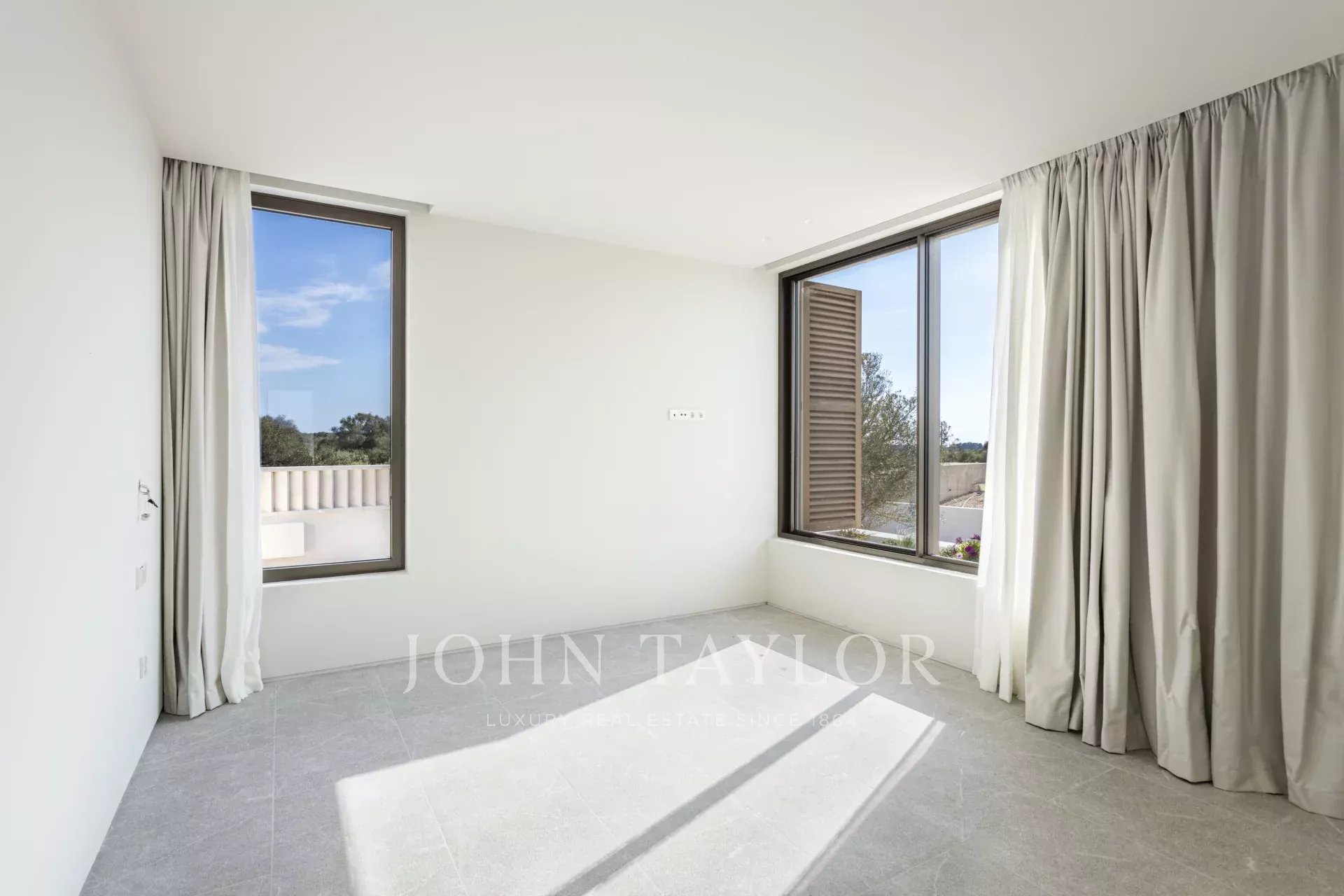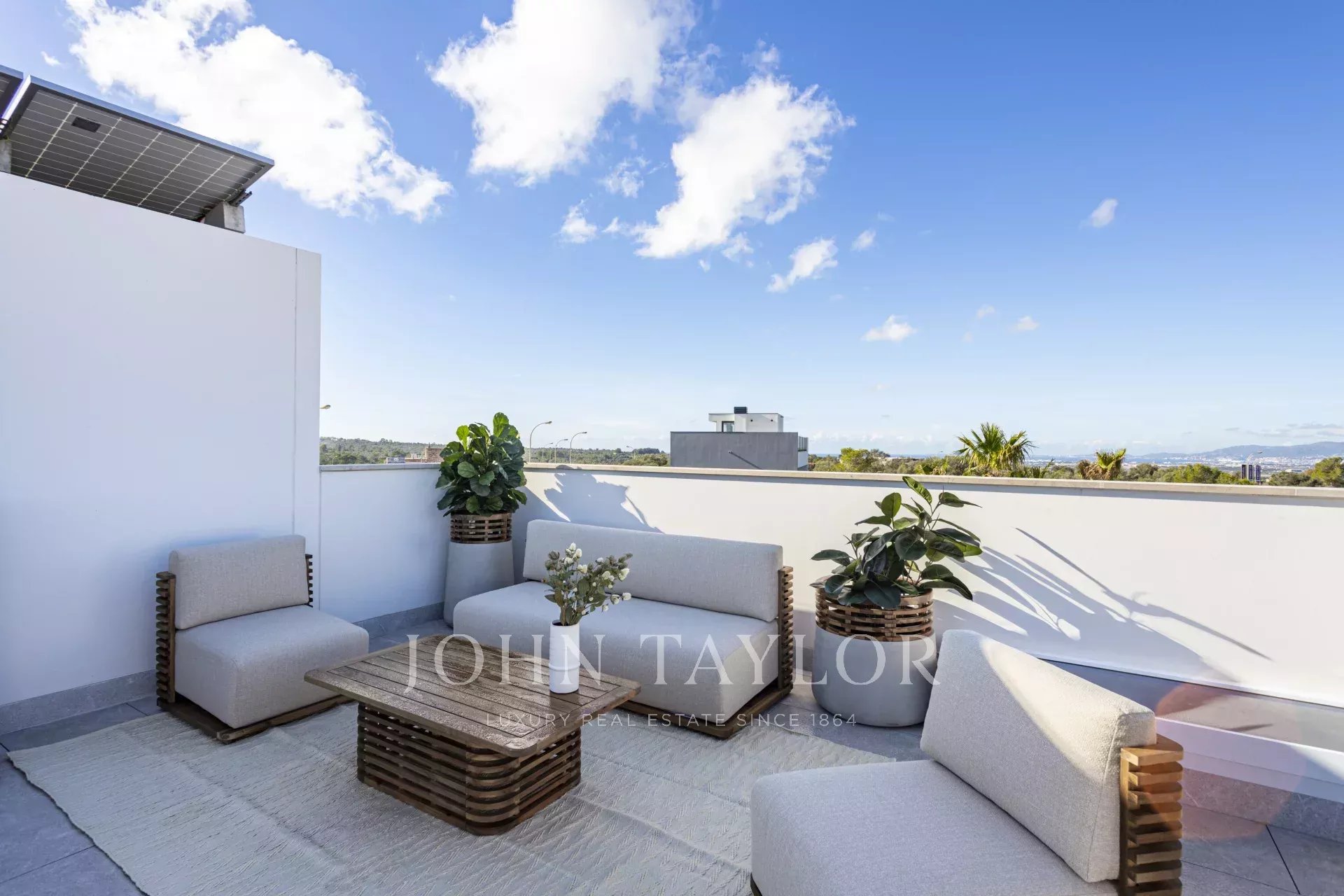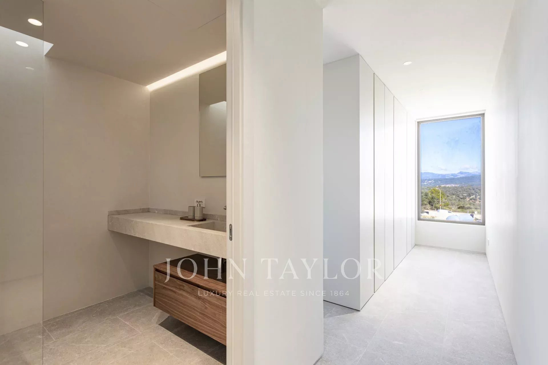 The villa’s basement includes a large garage, a laundry room, a cinema room, and a gym, offering ultimate convenience and comfort. The impressive roof terrace provides breathtaking views of the Tramuntana mountains and the sea, with space prepped for an outdoor kitchen, ideal for alfresco dining.