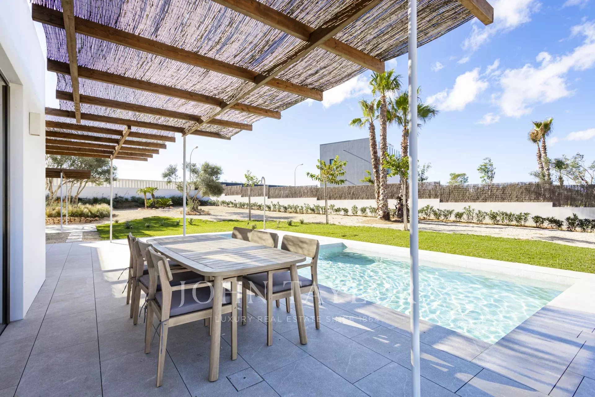 Discover modern luxury in Son Gual, Mallorca, with this stunning new-build villa. Set on a spacious 2001m² plot, this 396m² villa features 4 luxurious bedrooms, 3 elegant bathrooms, and a spacious open-plan living and dining area with an integrated kitchen. Enjoy seamless indoor-outdoor living with 121m² of terraces, a private swimming pool, and an outdoor shower, perfect for enjoying Mallorca's beautiful climate.