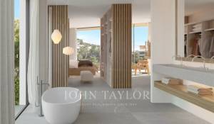 This offer includes a plot and project with a licence for a luxurious villa with sea views on a plot of 2225m2 with a total constructed area of 630m² on three floors. It does not include the construction of the Villa. The first floor consists of a very spacious, light-flooded living/dining area, an open kitchen, a bedroom with en-suite bathroom, a dressing room, a guest toilet and a storage room. The outdoor area offers four terraces with different orientations. One floor down, the project offers a total of three bedrooms with three en-suite bathrooms, an office area with a fourth bathroom, a laundry room and a possible sauna. You have access to two terraces and an additional patio. On the lowest floor, there is a large room for a fitness centre and wellness area, a bathroom, a separate toilet and the technical room. From the pool as well as from the different terraces, you have a fantastic view of Palma and the sea.