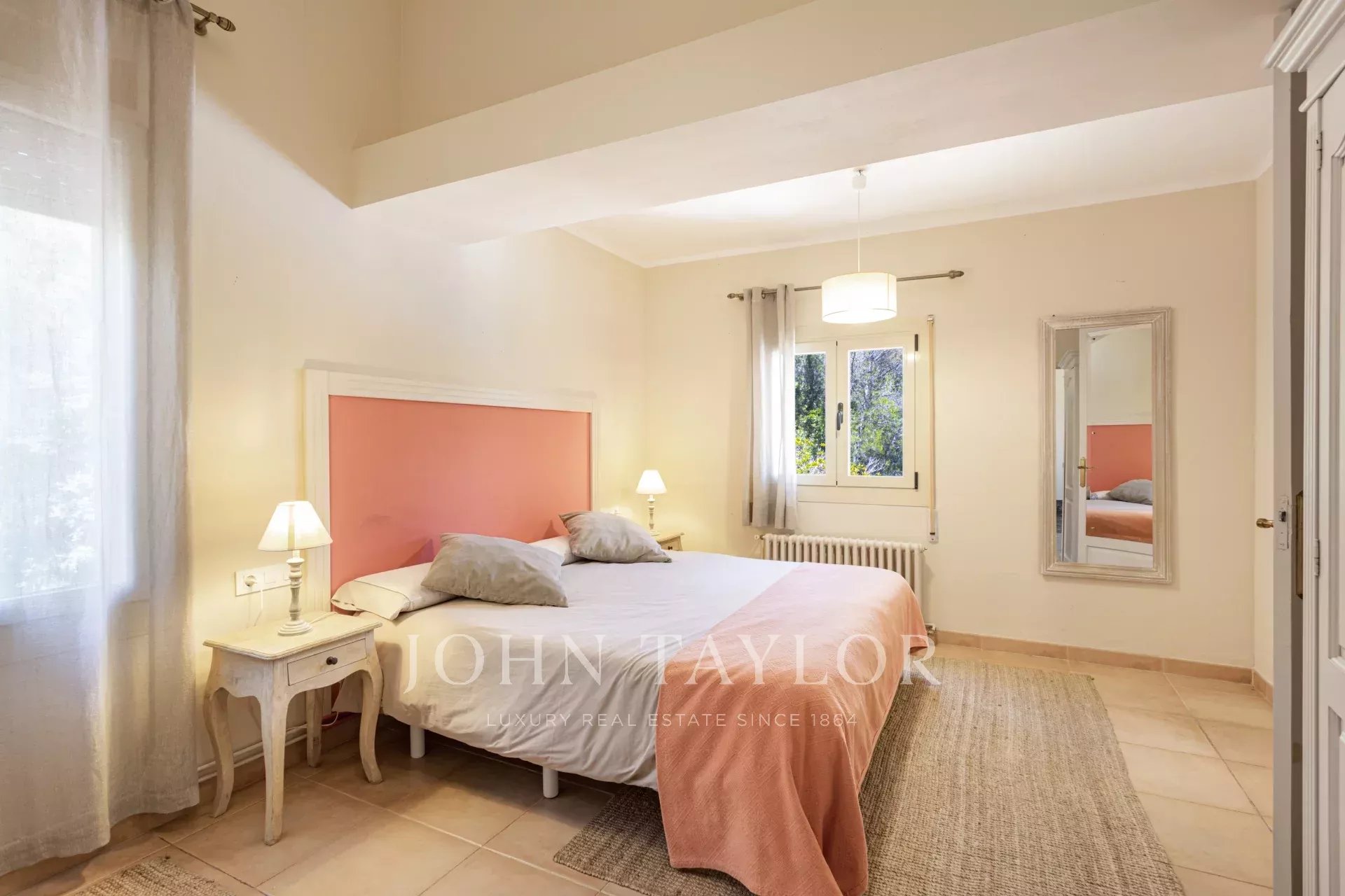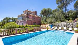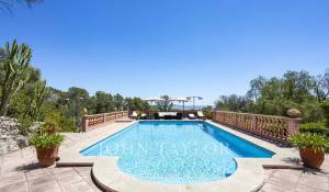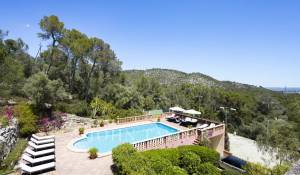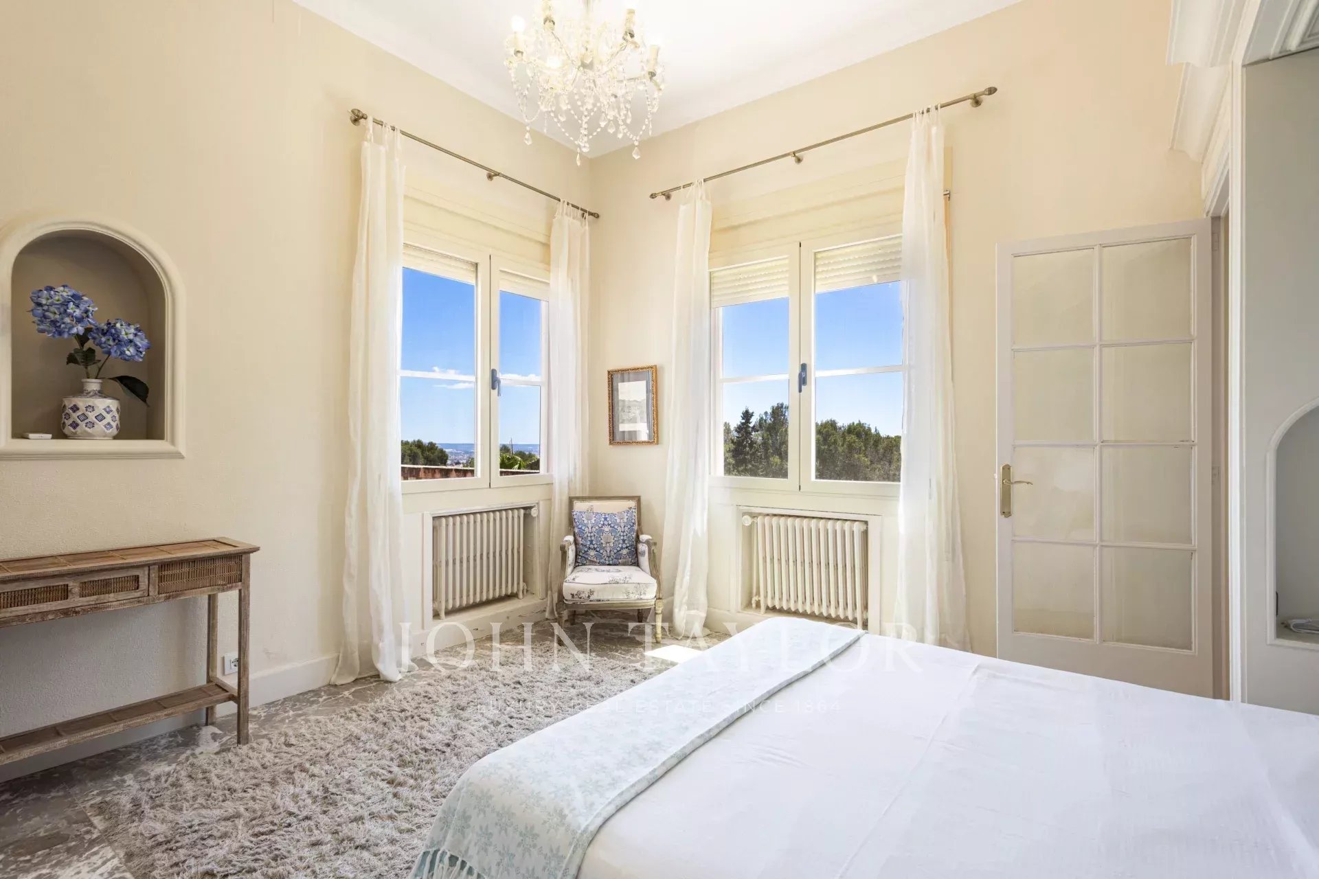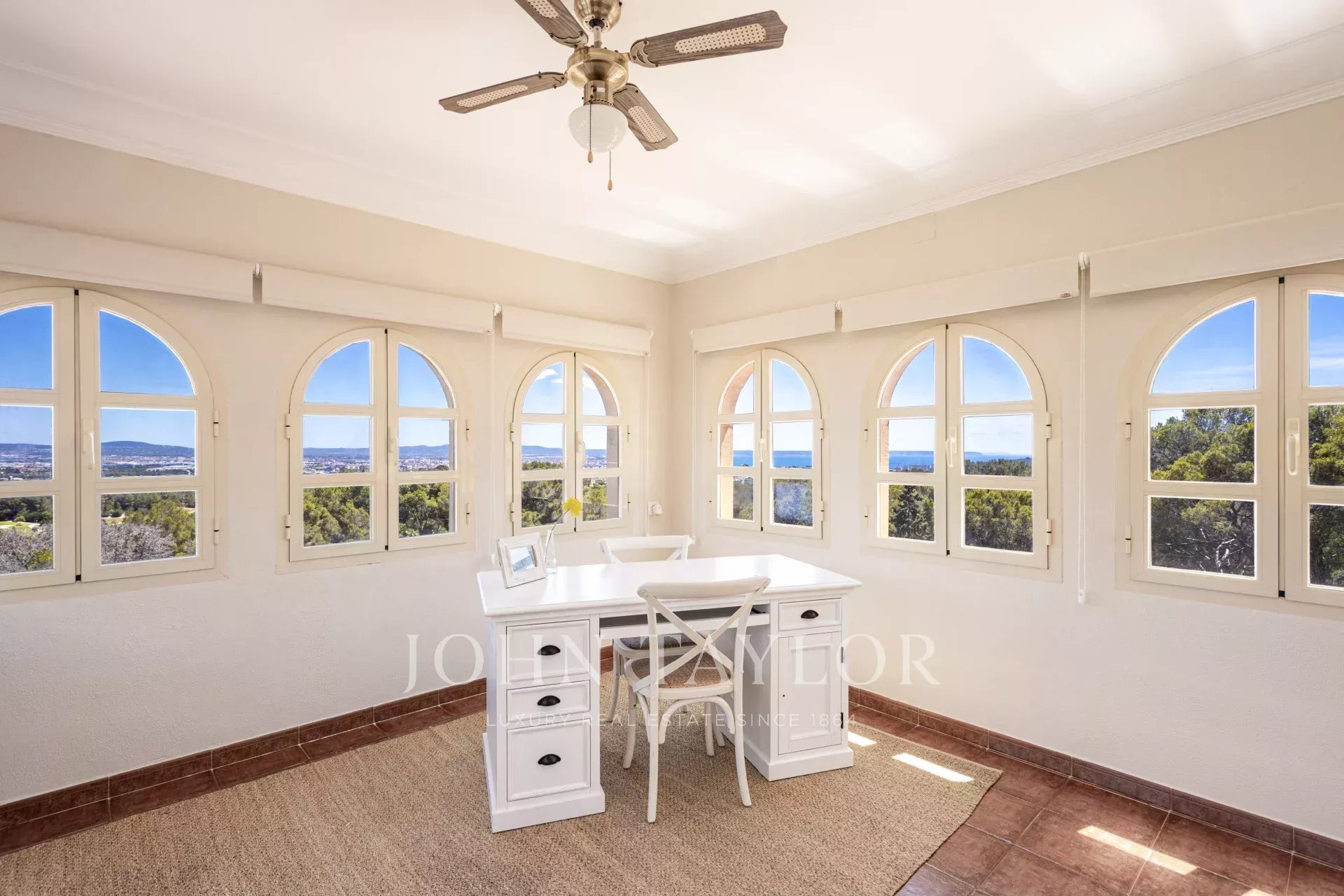 This beautiful holiday Villa is located near Son Vida. The Villa is just right for sports friends. The golf course is located within walking distance, adventurous hikes through the mountains can be started directly from the Villa and the private tennis court also offers another sporty challenge. The net living area of approx. 500 m2 is distributed over 4 floors, connected by an elevator, and houses 4 bedrooms. Ground floor: small guest apartment with kitchen, bedroom, and bathroom, entertainment room, laundry room, engine room, wine cellar. First floor: kitchen, dining room, living room, guest bathroom, 1 bedroom with bathroom en-suite, direct access to the covered terrace and barbecue area. Second floor: bedroom with bathroom en-suite and dressing, 2 bedrooms sharing a bathroom, small living area with beautiful views. Third floor: gallery with beautiful views. License number for vacation rental: L12E 9624.
