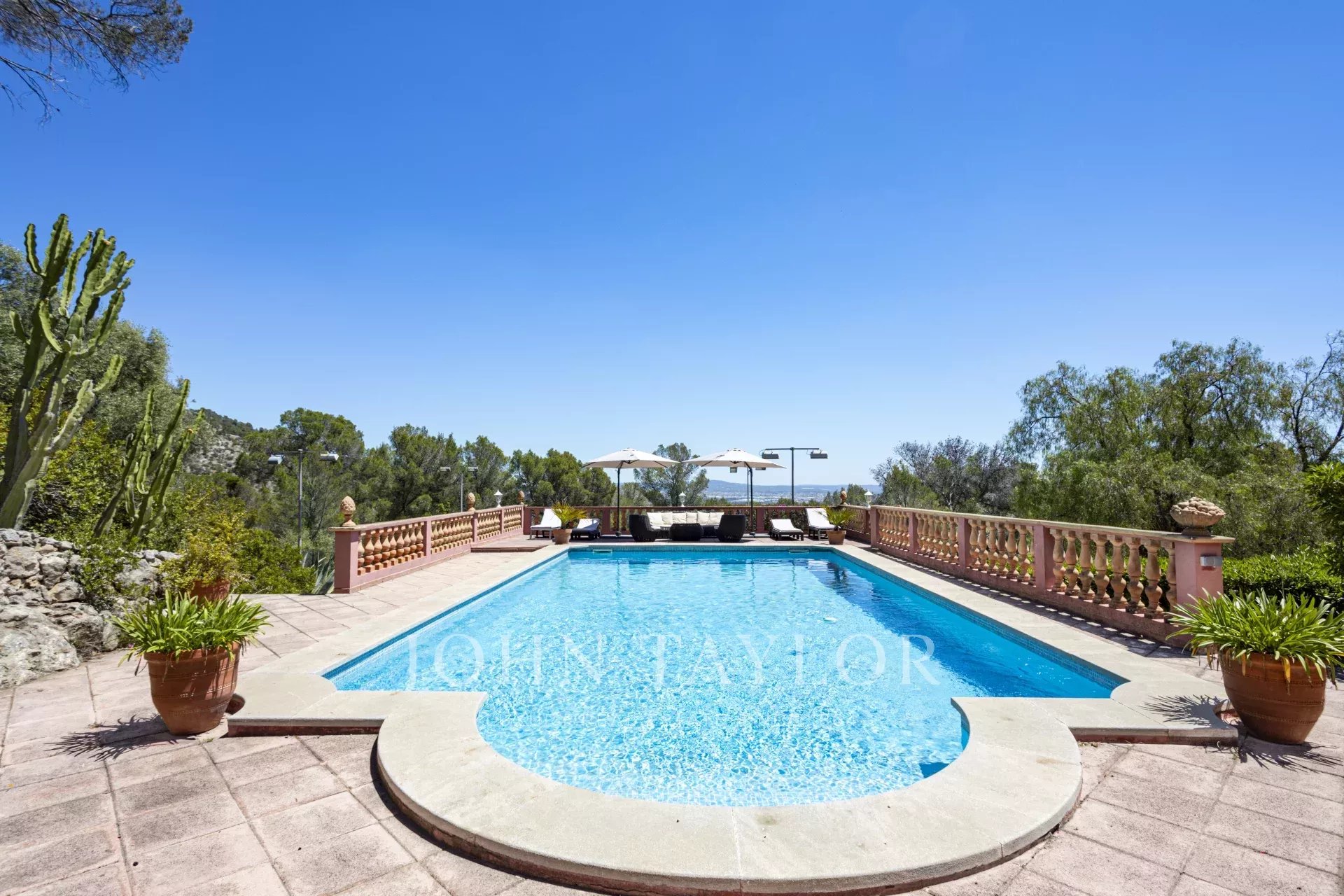 Located right next to Son Vida – the epitome of luxury lifestyle in Mallorca was first recorded in the 13th century. The castle which was mentioned is now a famous hotel. The site started as a farming area and was developed by the Vida family. Nowadays it is a gated community with several golf courses, two five-star hotels, and a vast array of stunning properties with amazing views over the surrounding mountains and the bay of Palma. It has attracted famous visitors and royals and has been the home of celebrities, and golf and architecture lovers alike. It has easy access to all amenities like cultural events, cinemas, shopping, sports, and medical centers and it is only a stone´s throw away from the capital Palma. Famous beaches and their clubs are within a short drive and the airport is just 15 minutes away which also makes it attractive to commuters. Son Vida is divided into the newer and the older parts. In the new Son Vida, you will find stunning villas with purist and modern architecture and the more classical Mediterranean-style ones around the golf courses in the older part. So there is something for every taste in the selection of exclusive property in this unique enclave.