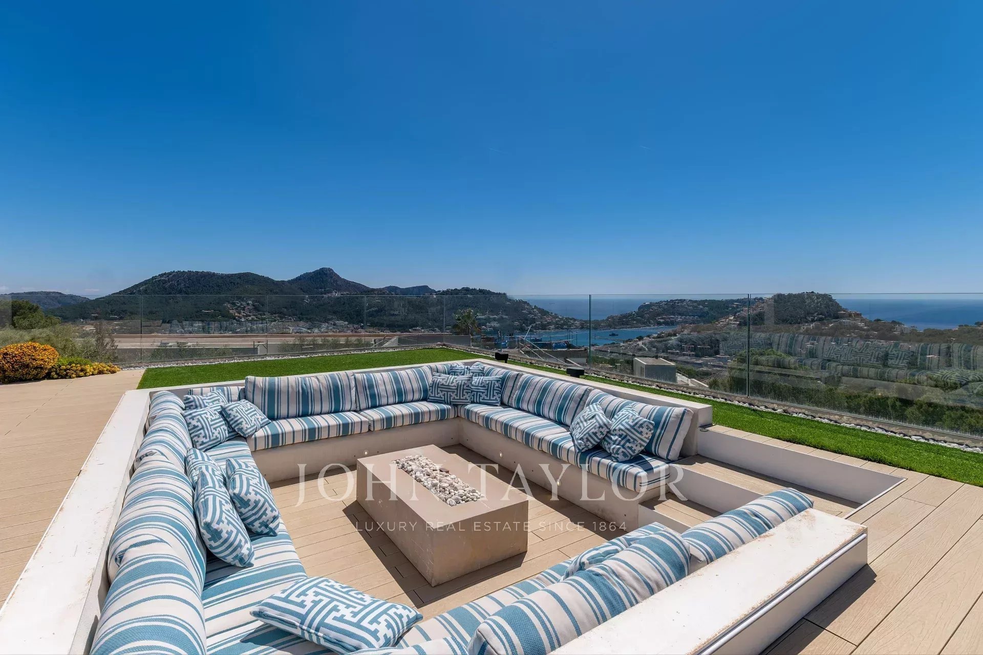 The property features an exceptional main residence with breathtaking harbor and sea views, complemented by an integrated guest house connected by a bridge featuring a cinema, games room and two spacious bedrooms. The main house has 1,079 square meters built and the connected guest house has 301 square meters built. The villa has 6 bedrooms and the guest house has 2 bedrooms.