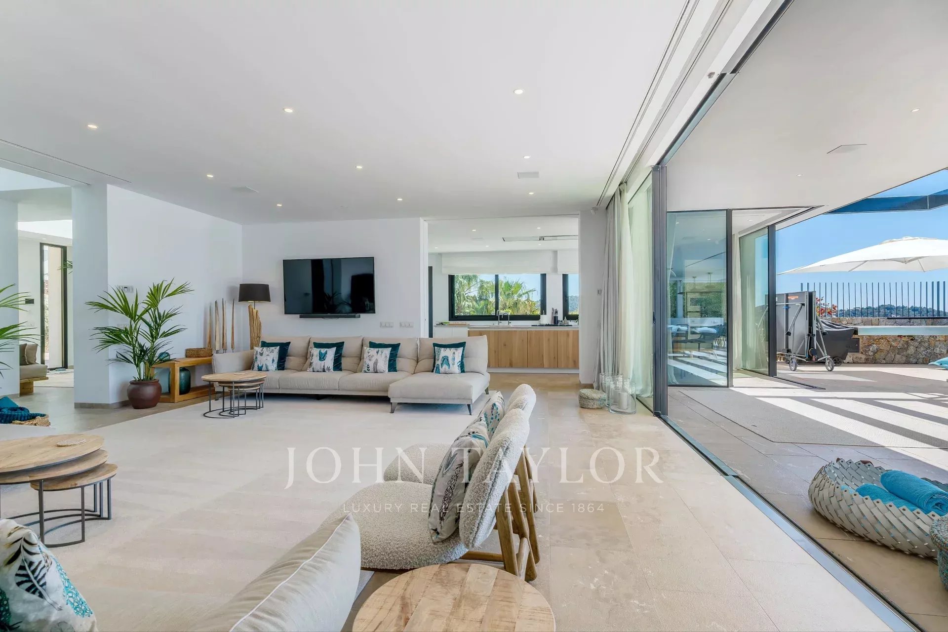 The main house's full spa and gym allow the new owners to relax and enjoy total privacy with sauna, steam room and an ice slide from the roof, magically illuminated by natural light from a pool window. For added convenience, the property features an integrated garage with turntable for ease of use and electric car charging points. Recently built, this residence exudes sophistication with high-end luxury finishes and quality materials throughout the interior.