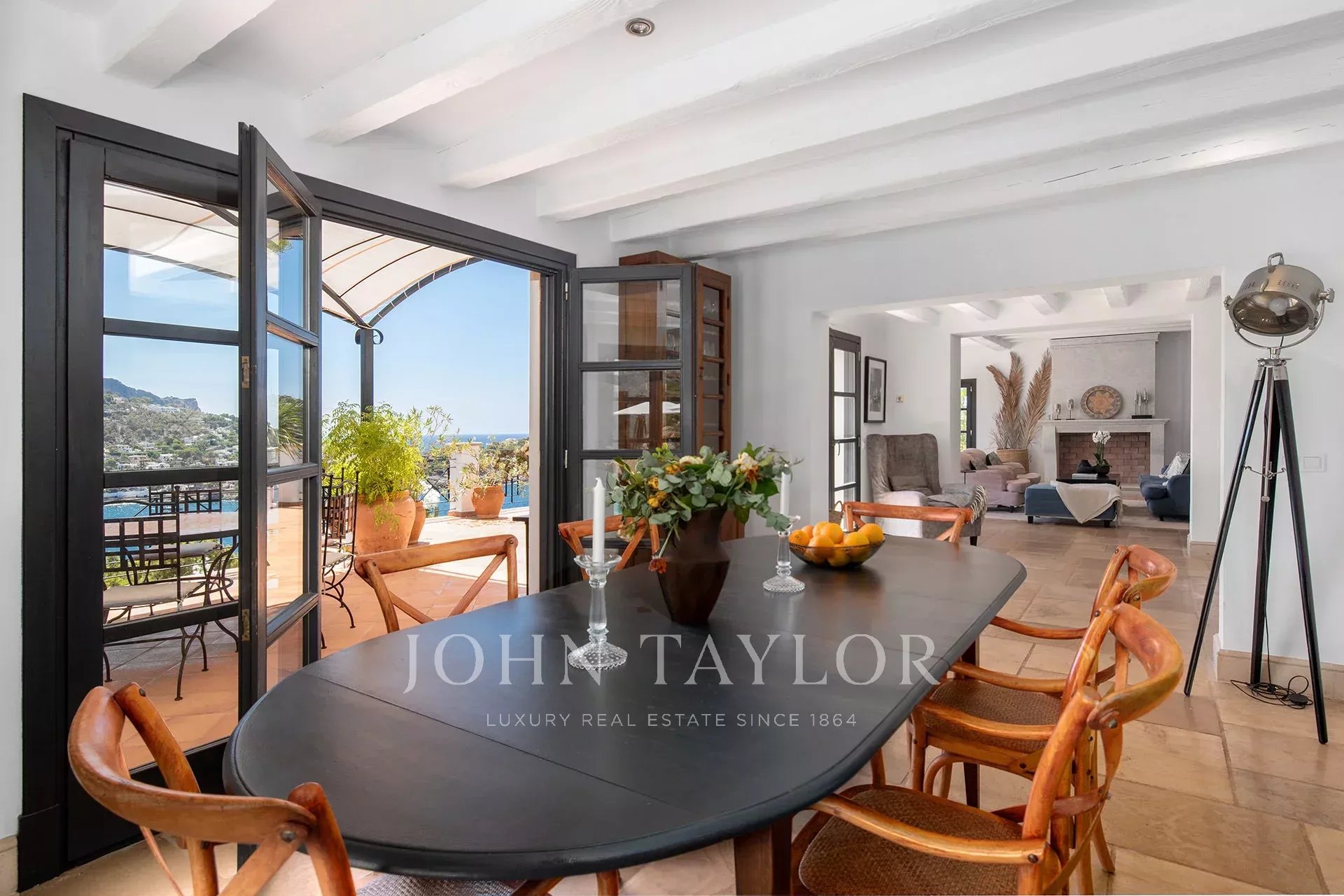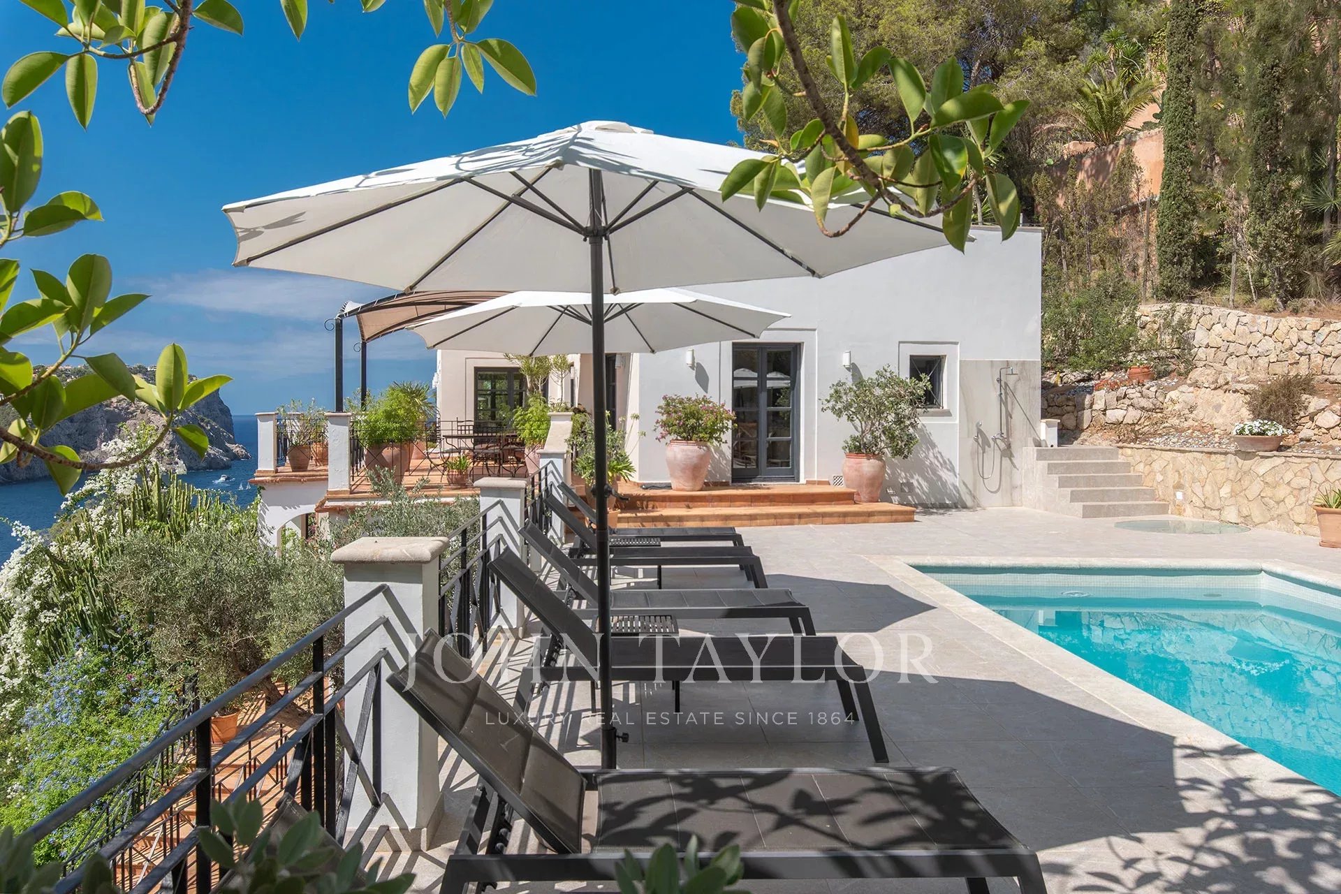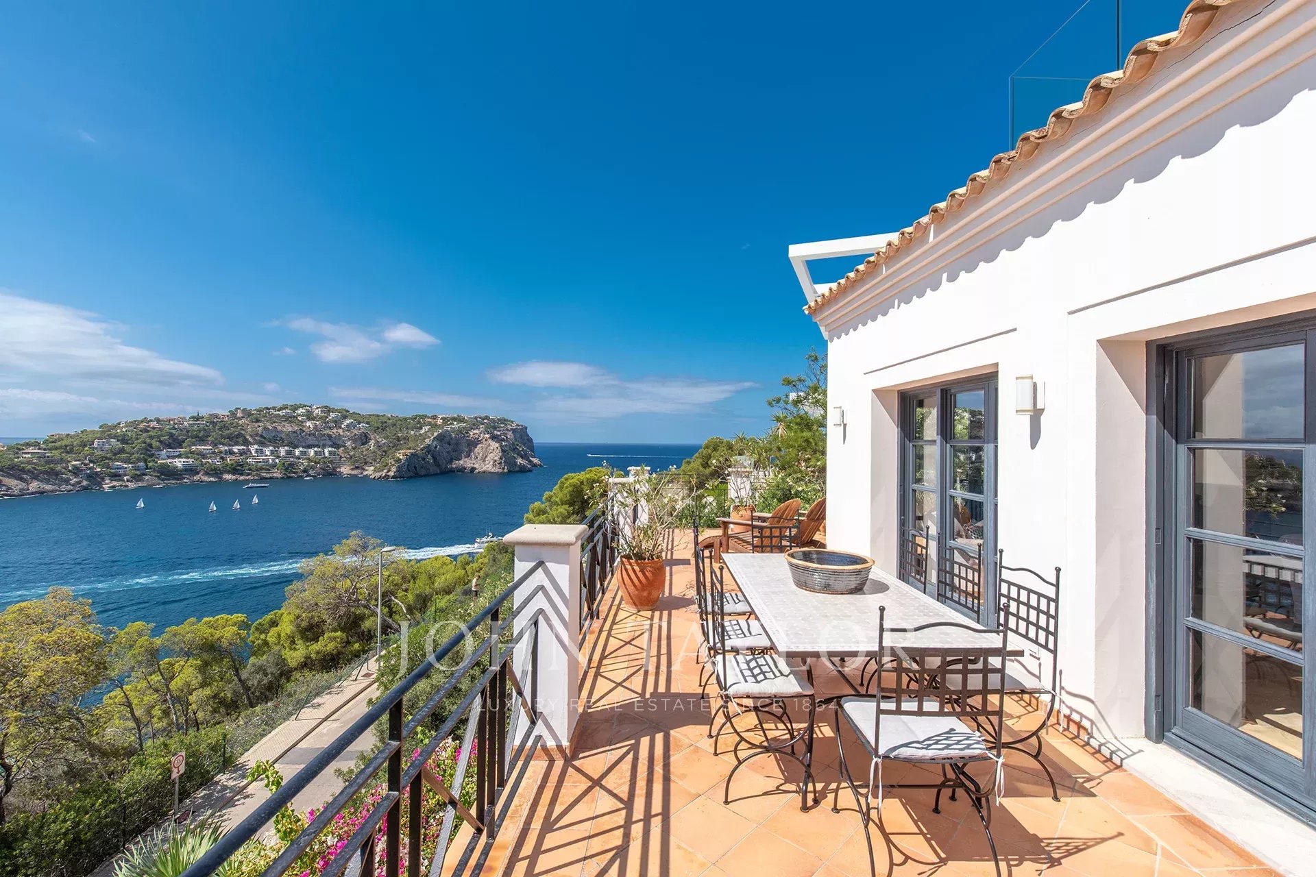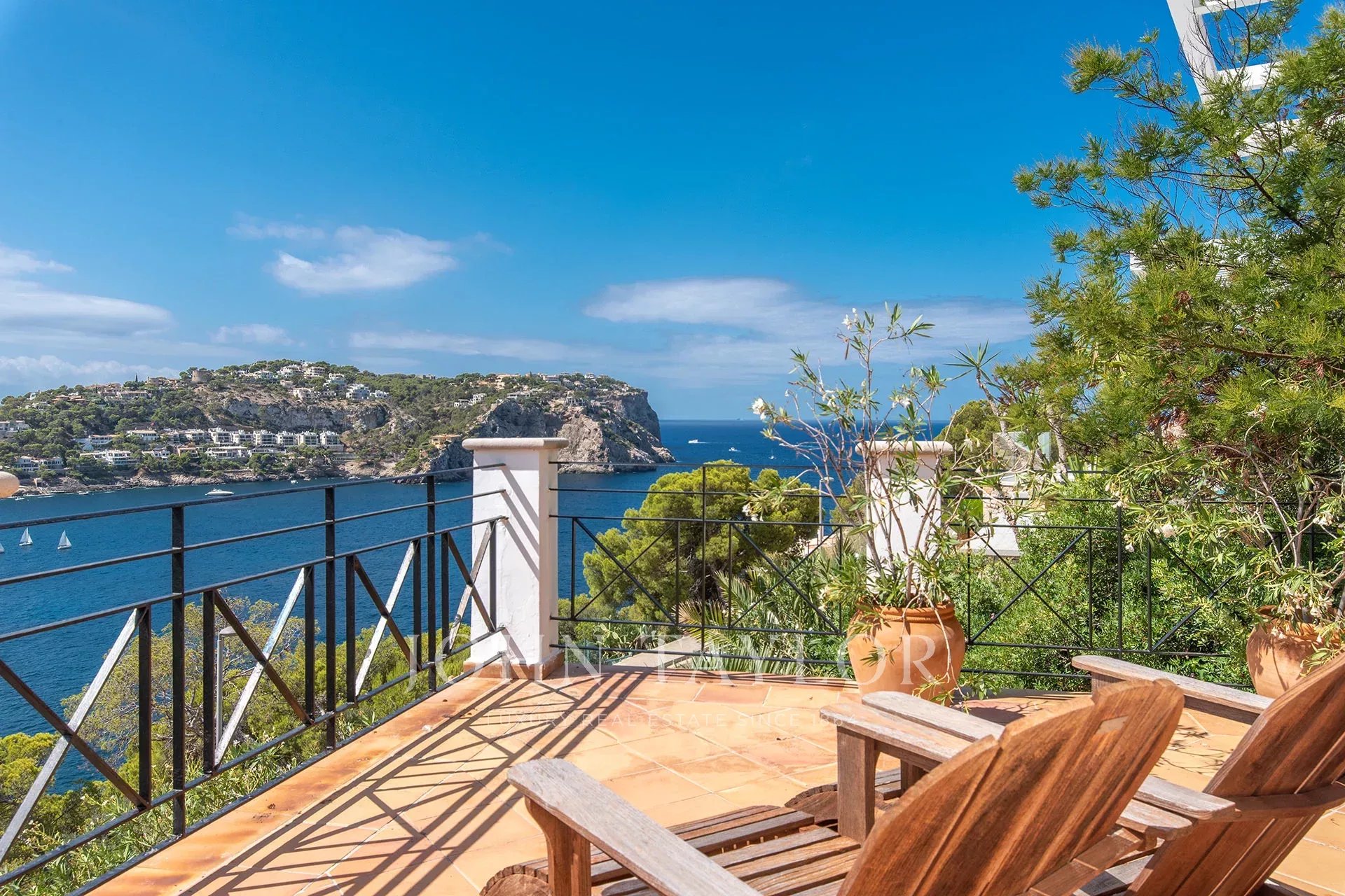 Discover this extraordinary residence located on the front line of the exclusive Puerto de Andratx, where the breathtaking views over the bay become the perfect setting for a life of comfort and sophistication. With a built area of 321 m², this property masterfully fuses traditional Mediterranean charm with contemporary and functional design, creating an ideal retreat for family life and entertaining. The home offers six cozy bedrooms, all with en-suite bathrooms, and a total of seven bathrooms, ensuring space and privacy for all family members and their guests. Outside, its generous 285 m² terraces invite you to relax, with a 30 m² saltwater swimming pool and a rooftop Jacuzzi offering panoramic sea views. The interior features a bright open-plan living area that integrates harmoniously with a spacious and elegant kitchen, designed to enjoy the views without interruption. The villa has been carefully equipped with high quality details such as wooden windows and shutters, natural stone floors with underfloor heating, air conditioning, fireplace and fitted closets. Additional amenities include two parking spaces, a barbecue area, laundry room, storage room and a lush garden that completes this dreamy oasis. Contact us to arrange a private viewing of this exclusive property.