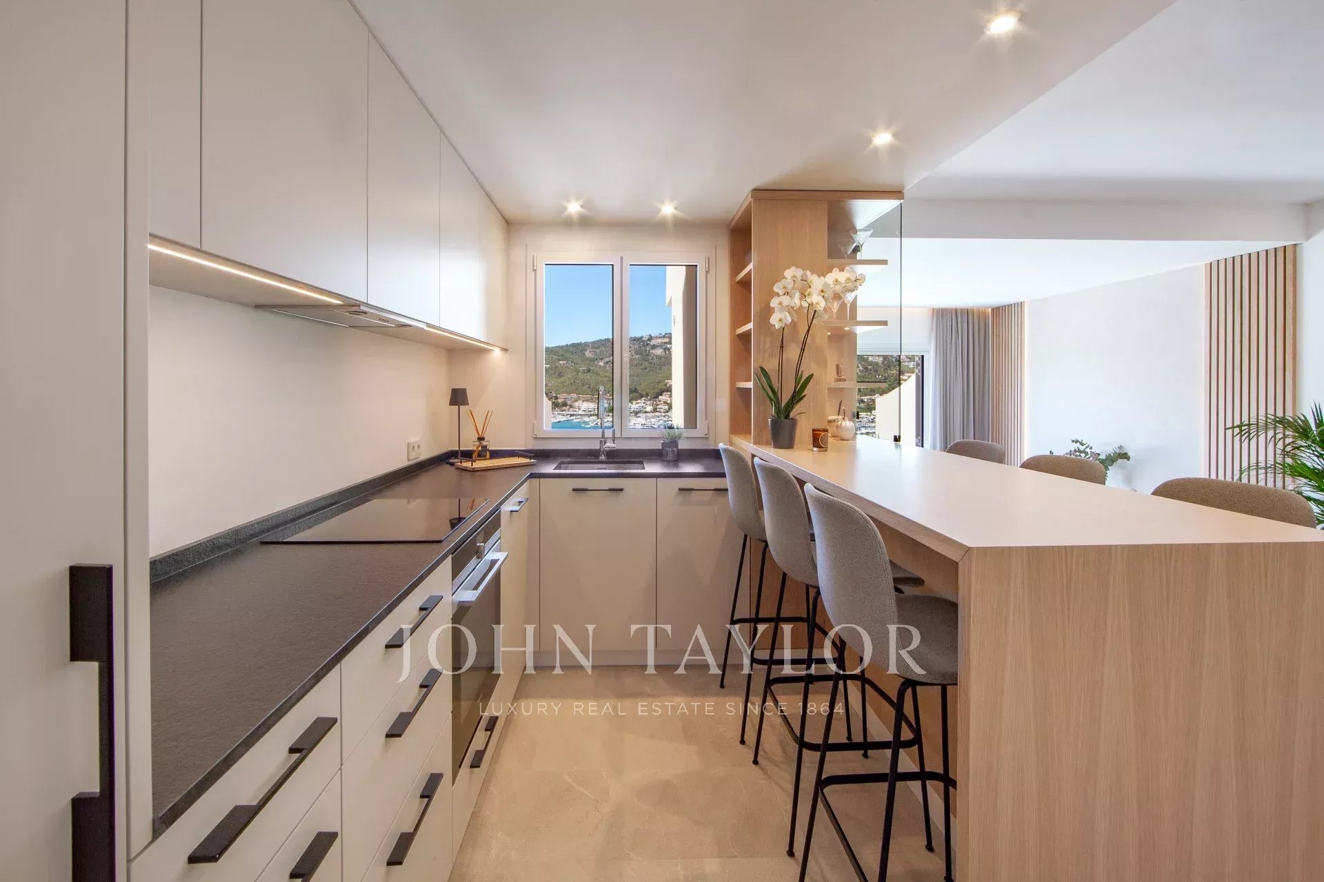 This wonderful luxury townhouse is located in one of the most sought after locations in the southwest of Mallorca, the picturesque Port d'Andratx. The property which was completely refurbished with excellent quality materials is distributed over 4 levels. In the basement there is a guest apartment. The first floor offers a spacious living-dining room with a modern kitchen, laundry room and guest toilet. The upper floor is distributed in a master bedroom with bathroom en suite and 2 bedrooms, which share a bathroom. The roof terrace with its barbecue area completes this wonderful home, which also stands out for the beautiful views of the harbor and the spectacular sunsets.