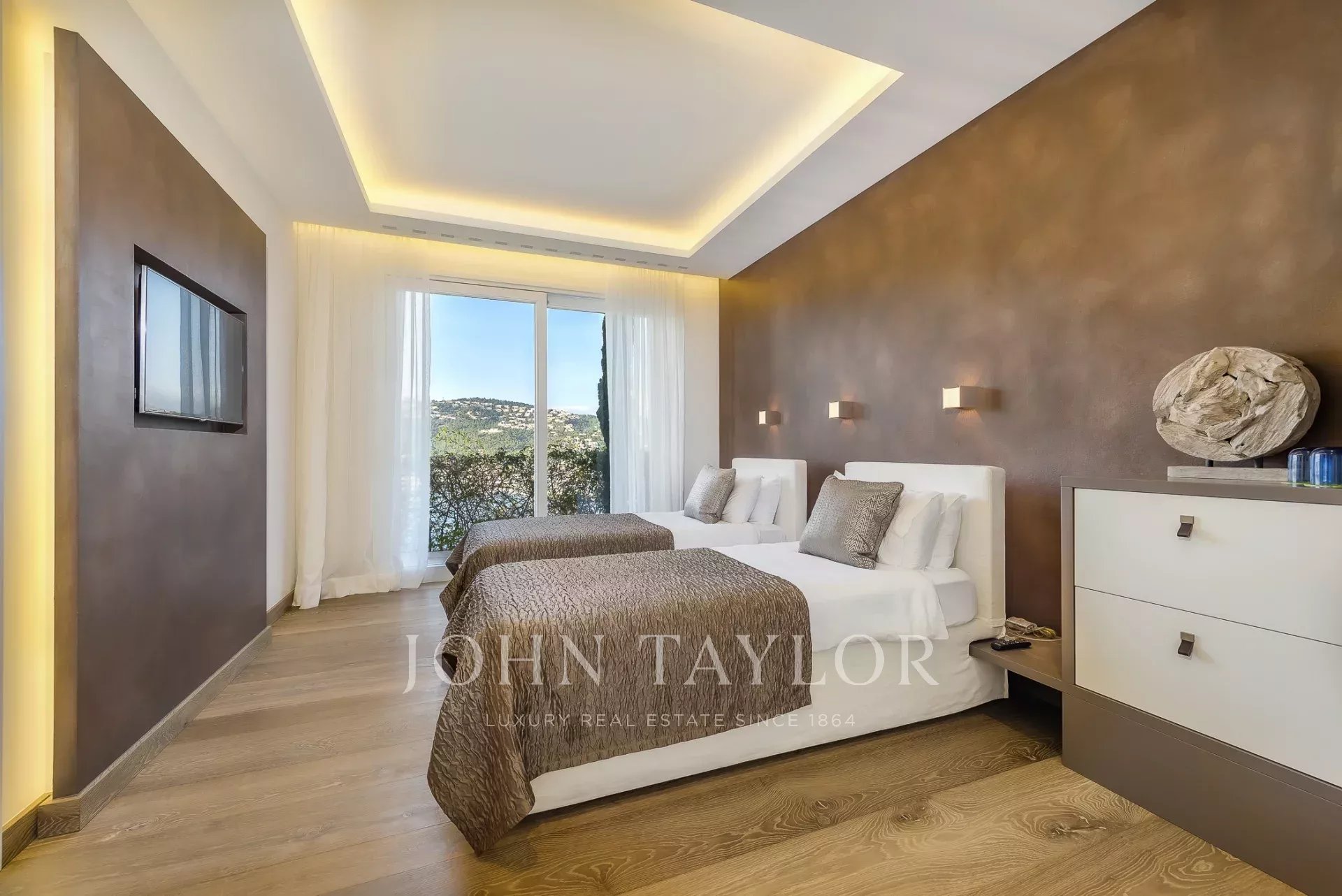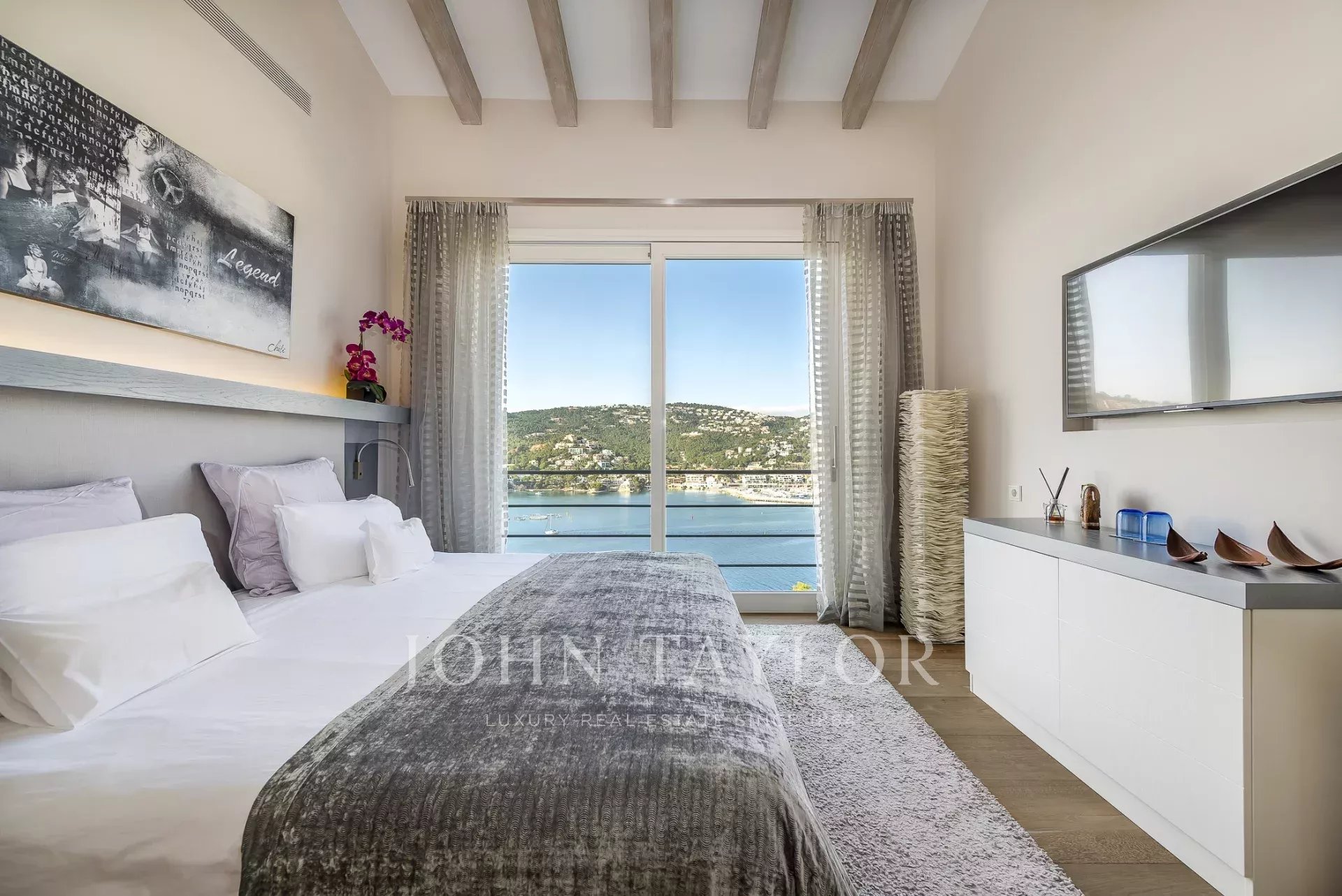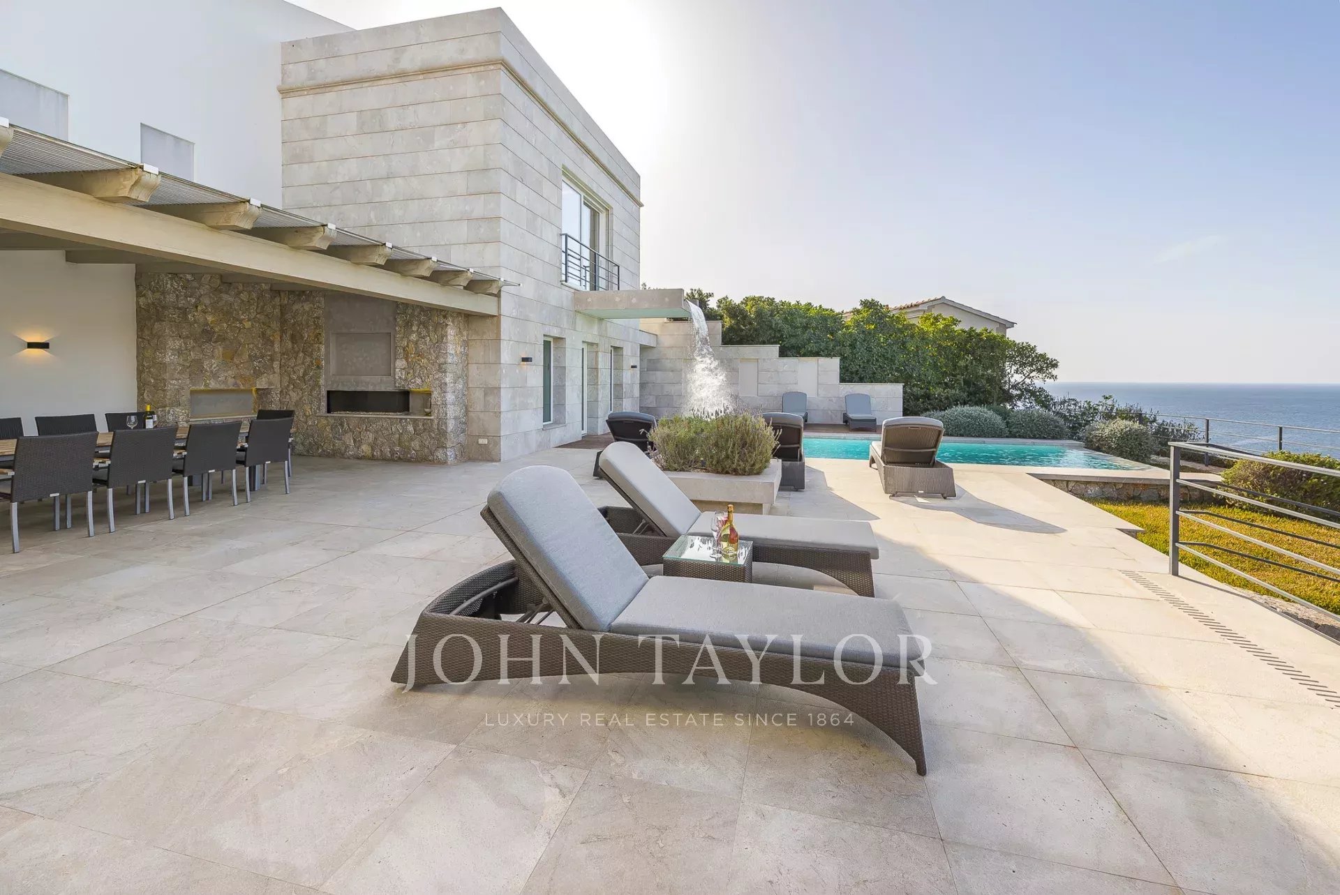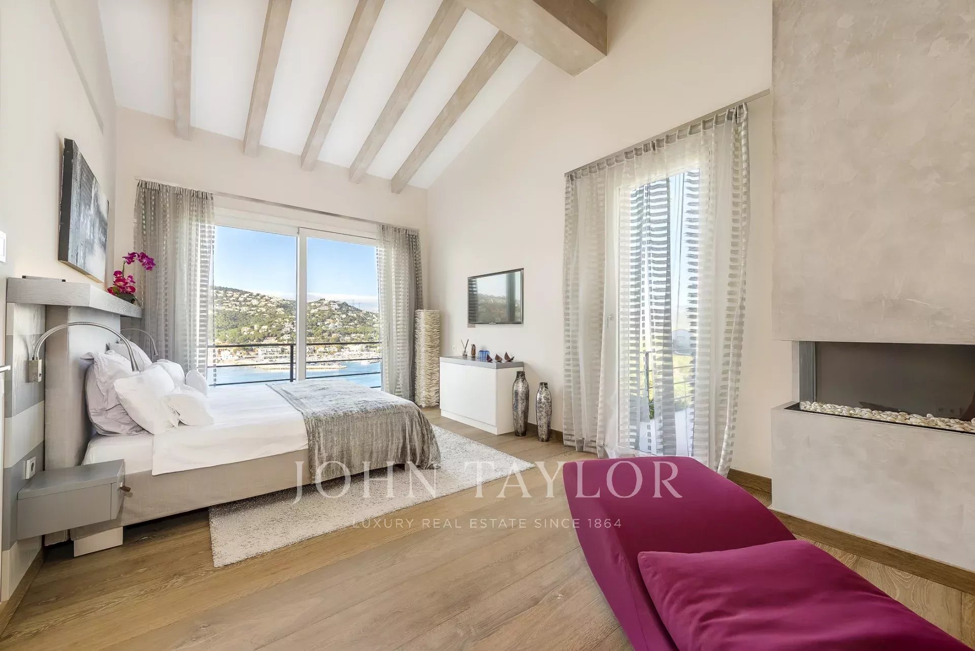 Luxury villa in top location. In this newly built villa, 5 bedrooms with en-suite bathrooms are distributed over 600 m2 of living space. Modern construction and design run through the entire house. The fully equipped open-plan kitchen leaves nothing to be desired. Whether from the bedroom, the cosy living area with fireplace, or the kitchen, every room has a breathtaking view over the bay of Puerto de Andratx and the harbour. Outside, you will find the heated infinity pool with a chill-out area and a large dining table with a BBQ. A special highlight is the in-house sauna, from which you can enjoy a magnificent view over the sea thanks to the large glass front. Breathtaking sunsets are guaranteed here.