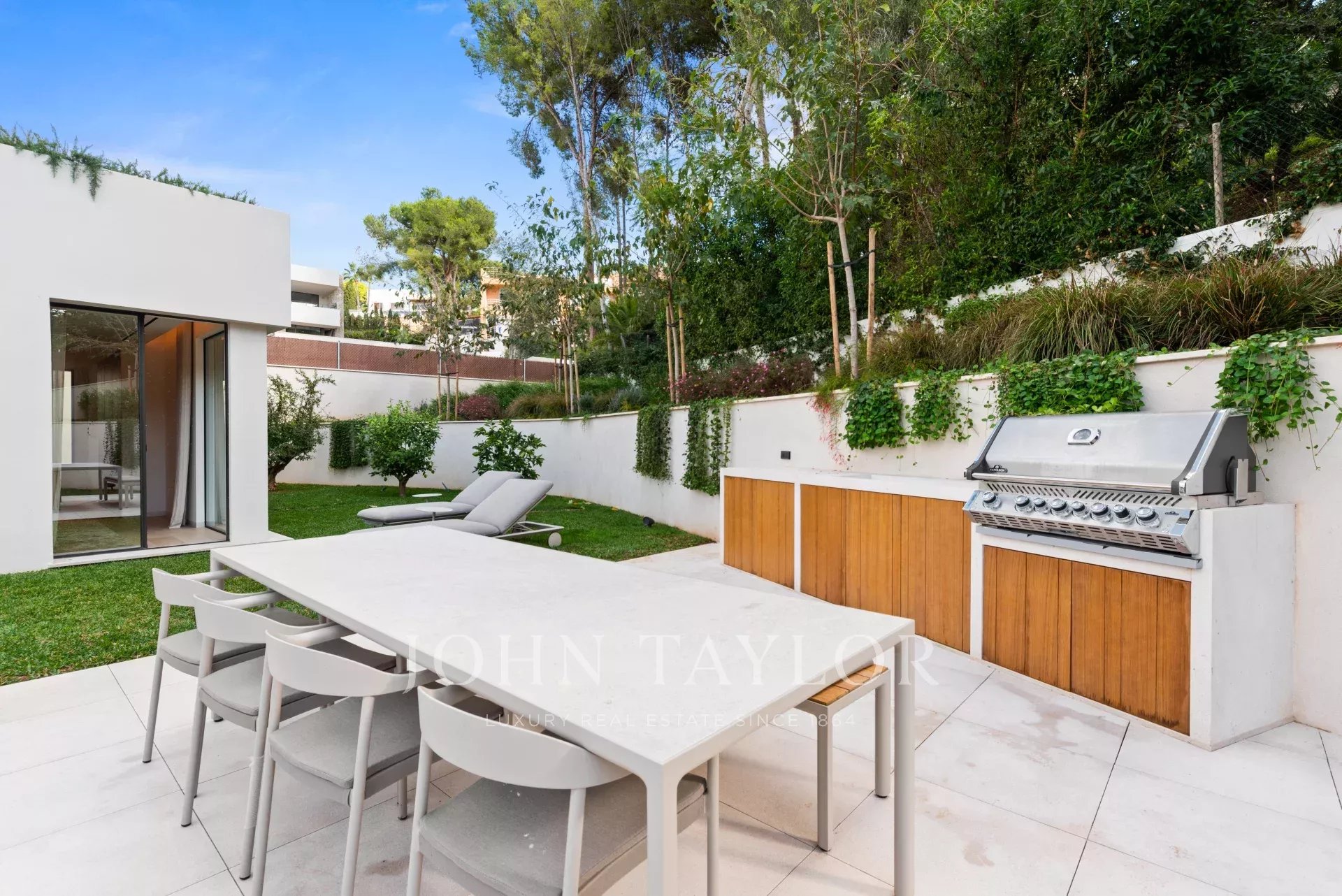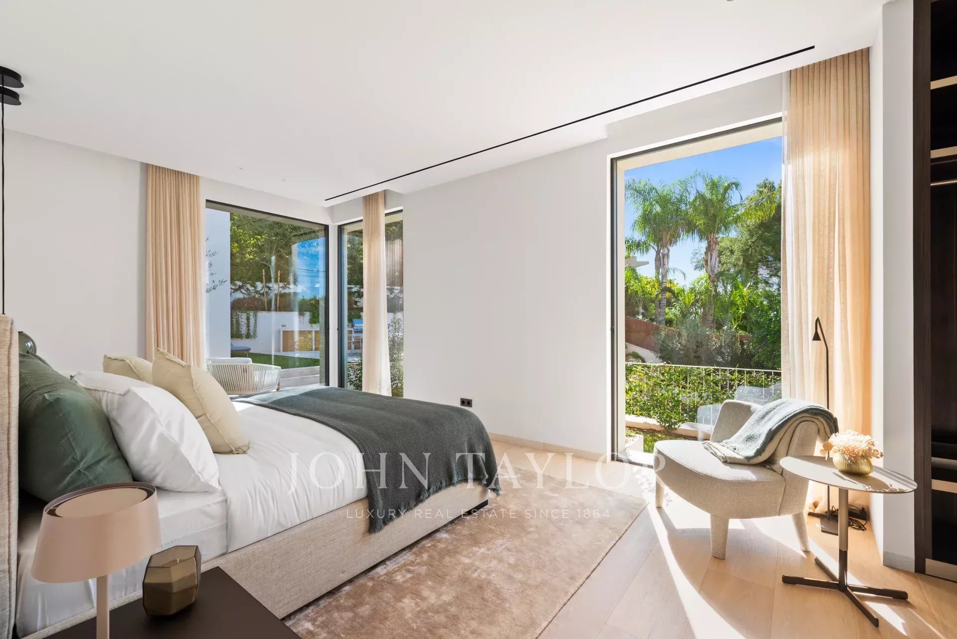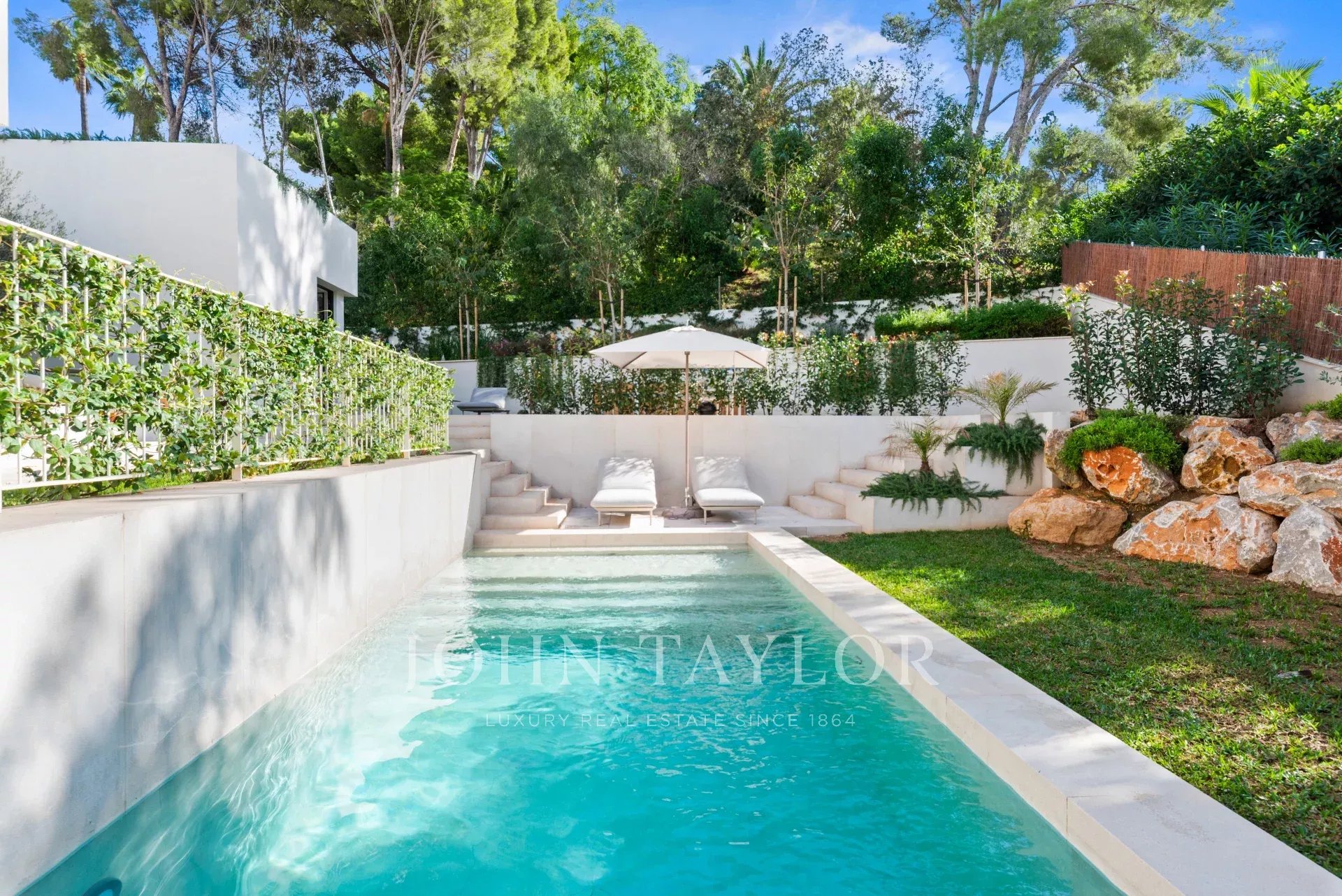 This newly built luxury villa is located in the prestigious Portals Nous within walking distance of the famous marina in an elevated position with beautiful sea views. The wonderful southwest facing house stands out for its spaciousness, contemporary style and comfort. The day area with living room, dining room and kitchen is located on the upper floor of the house taking full advantage of the views. It connects perfectly with the terrace, the swimming pool and the porch with the barbecue. On the lower floor are located the 4 bedrooms with en suite bathroom and an office. In the middle there is a patio to take refuge in the hottest days of the year. Outside there is another terrace area with summer kitchen and a second pool, surrounded by a lush garden.