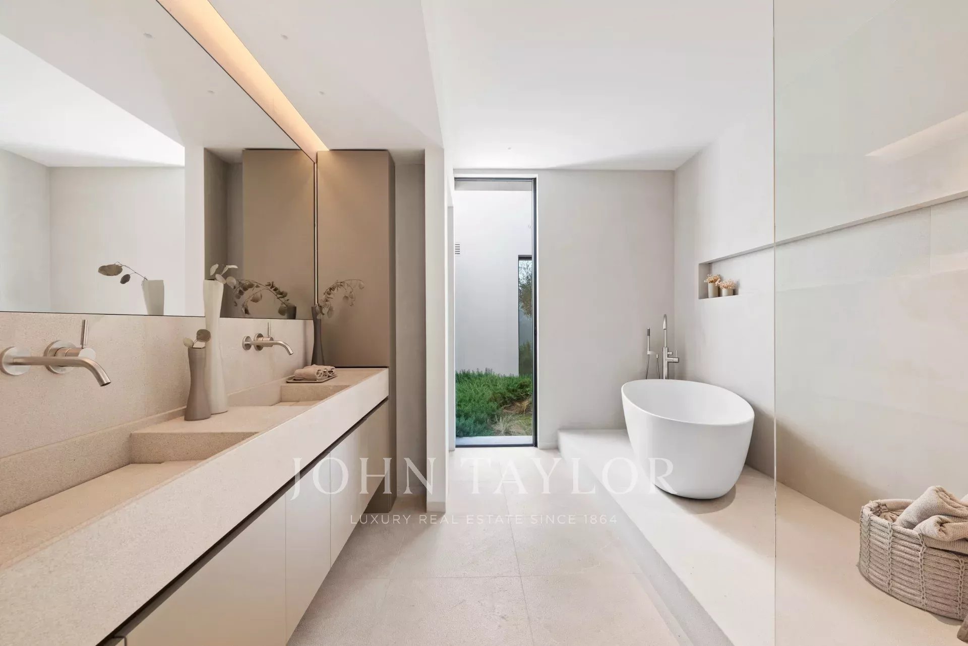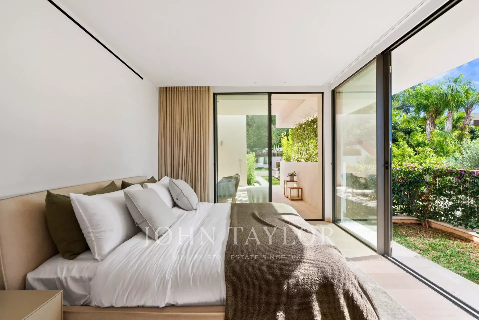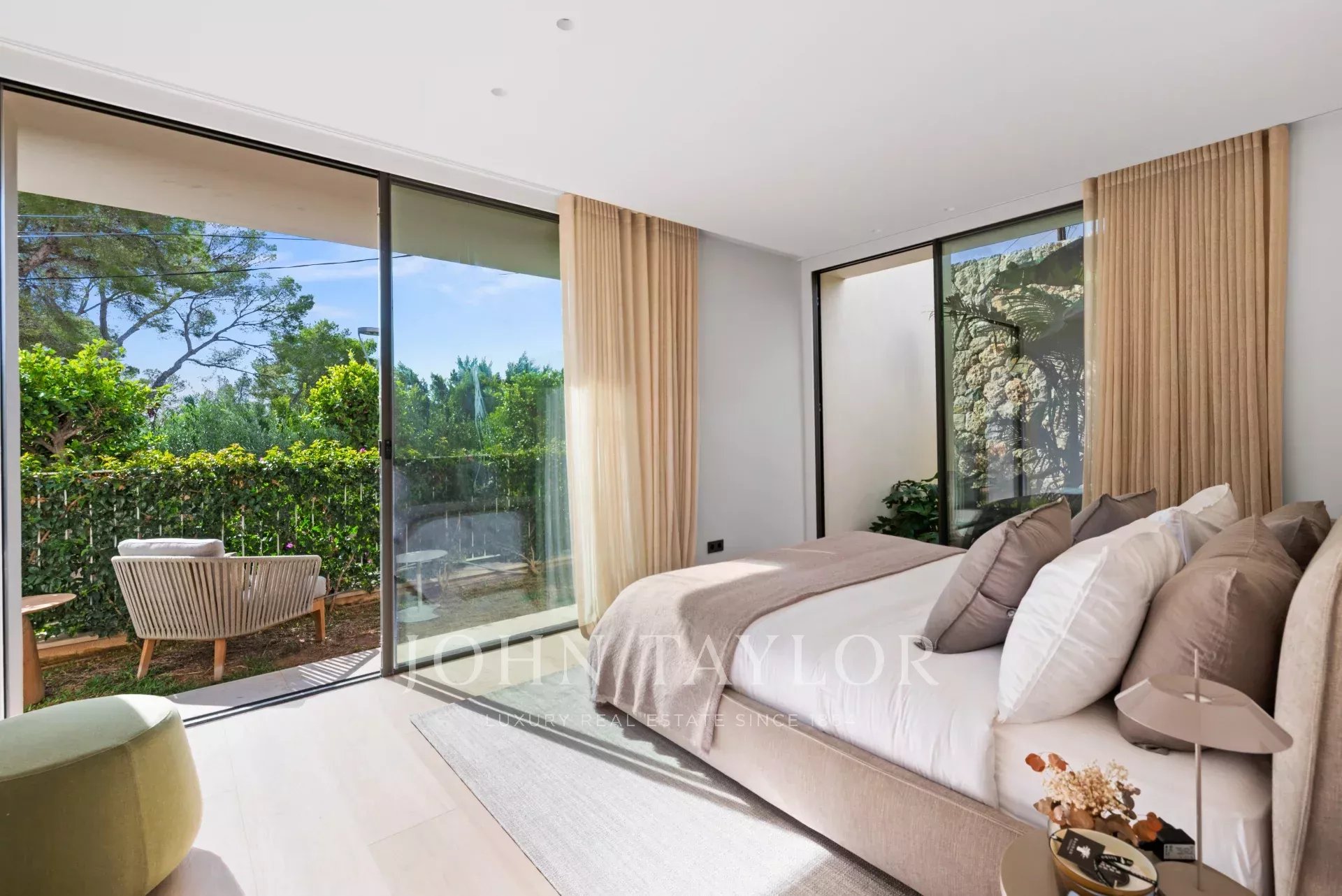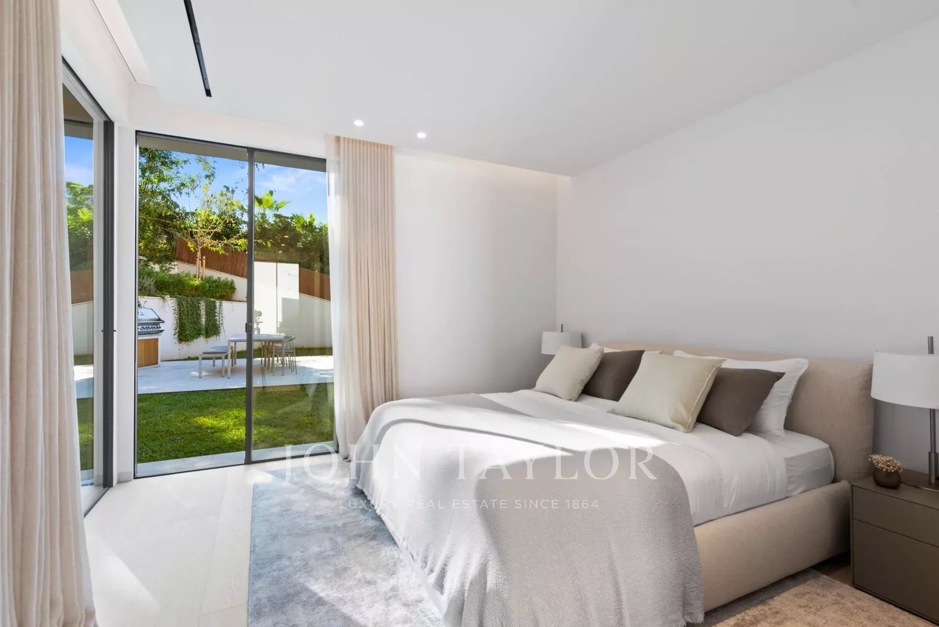 This newly built luxury villa is located in the prestigious Portals Nous within walking distance of the famous marina in an elevated position with beautiful sea views. The wonderful southwest facing house stands out for its spaciousness, contemporary style and comfort. The day area with living room, dining room and kitchen is located on the upper floor of the house taking full advantage of the views. It connects perfectly with the terrace, the swimming pool and the porch with the barbecue. On the lower floor are located the 4 bedrooms with en suite bathroom and an office. In the middle there is a patio to take refuge in the hottest days of the year. Outside there is another terrace area with summer kitchen and a second pool, surrounded by a lush garden.