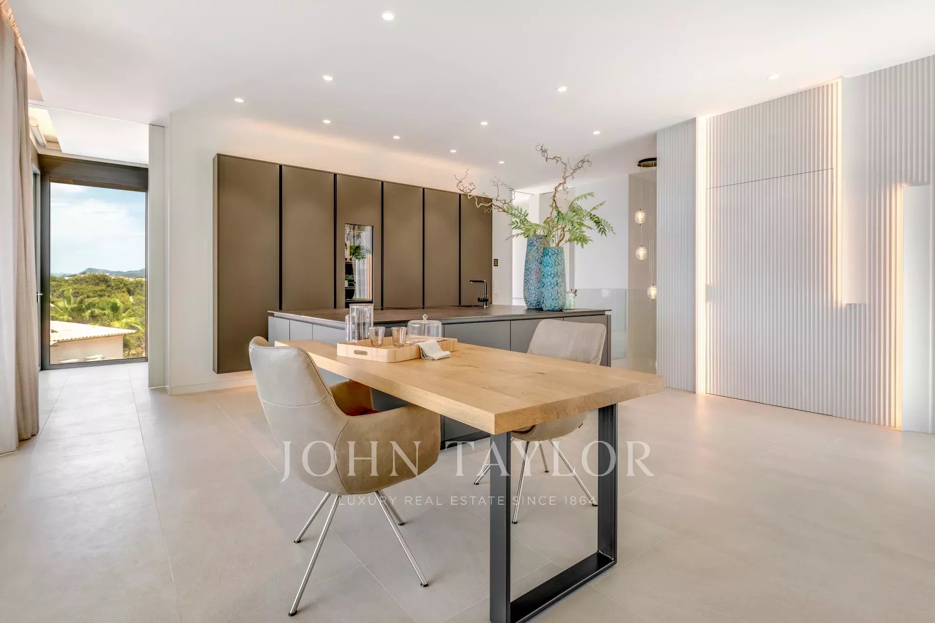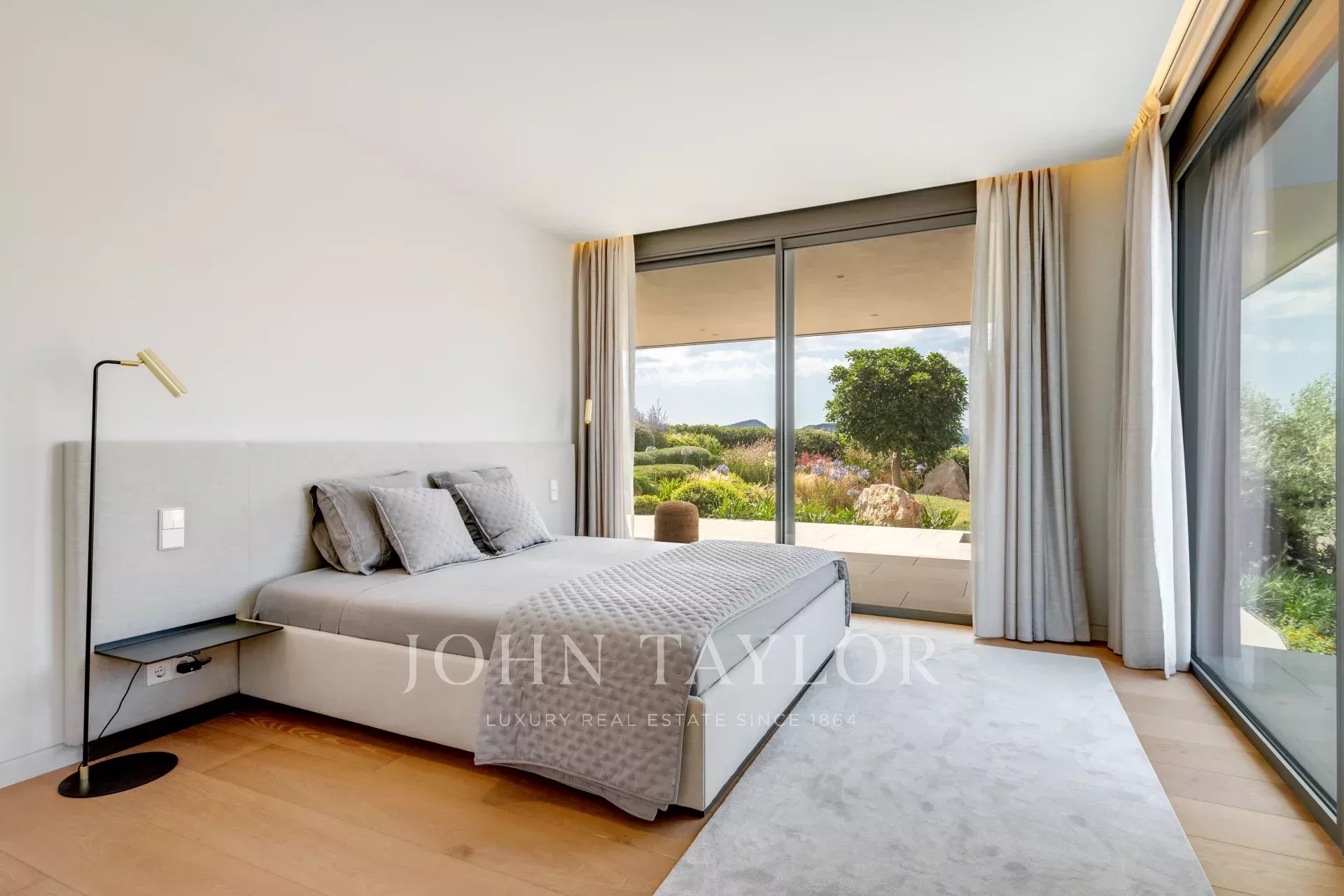 The villa has a beautifully landscaped garden area with terraces, as well as an outdoor kitchen with barbecue area. There is also a large roof terrace with spectacular 360-degree views.