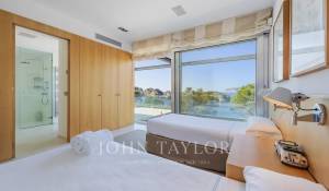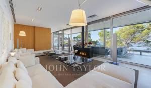 This marvelous first-line villa of 770 m2 offers spectacular views of the sea, the Malgrats islands, and direct access to the sea with a platform with a 15 years coastal concession. The villa is located very close to the super marina, Port Adriano, the four nearby golf courses, and only 25 minutes away from the elegant capital and the airport of Majorca. Optimal comfort, plenty of space, light and modern interior design with open living and dining areas, and flowing transitions to the outdoor areas give the villa a perfect ambiance for the Mediterranean lifestyle. Everything really has been thought of in this villa: the living areas are conveniently connected. Upstairs, in addition to the generous master suite with its own living room, there are four further bedrooms with en suite bathrooms. Then on the ground floor, there is a further suite complete with an en suite bathroom and two bedrooms sharing a bathroom ideal for staff. A spacious kitchen, living room, and dining room. In total 6 bedrooms with en suite bathrooms and 2 staff rooms with bathrooms.