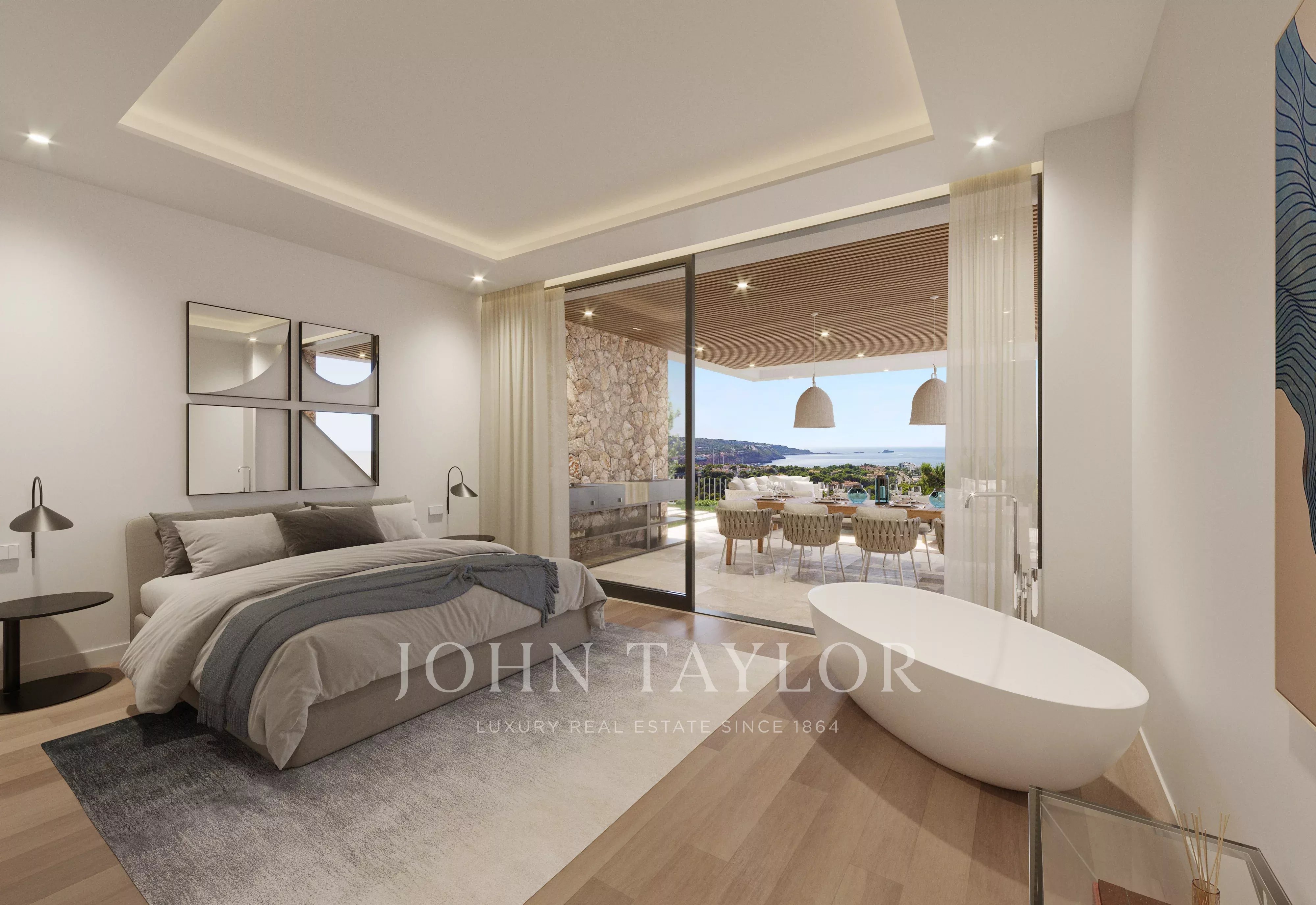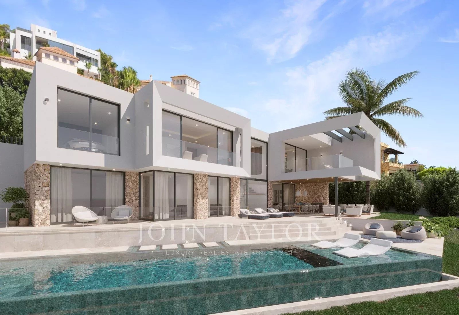 Located in one of the most exclusive areas of southwest Mallorca, this villa under construction redefines elegance facing the Mediterranean. On a 874 m² plot, the property is projected as a natural extension of the landscape, offering an unbroken panorama that spans from the silhouette of the Malgrats Islands to the luxury port of Port Adriano.