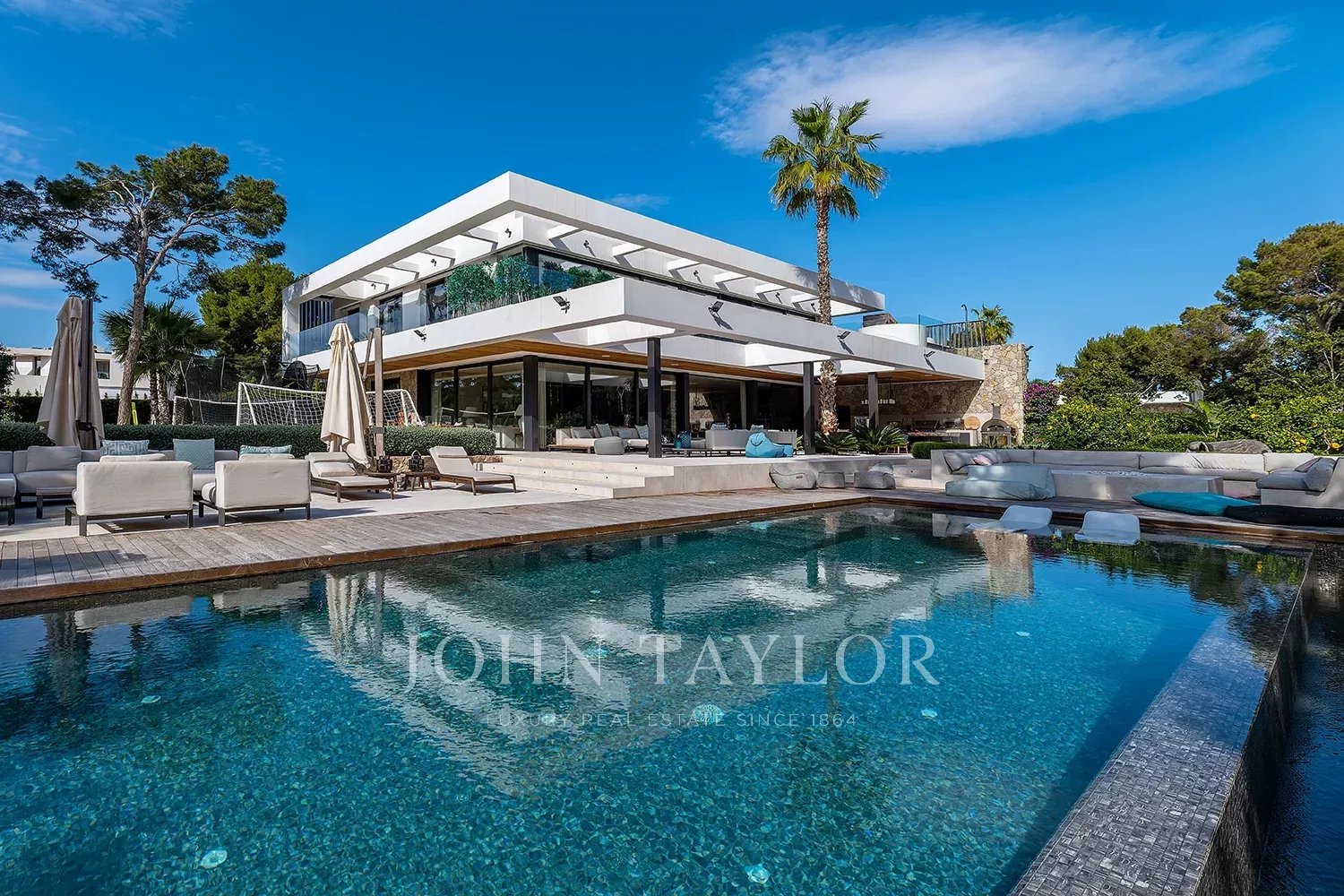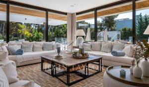 Discover the majestic luxury villa, located frontline to the Nova Santa Ponsa golf course. This stunning property has it all: from ample living and entertaining spaces to privacy and serene views over the impeccably manicured golf courses. With high quality construction including high ceilings, marble bathrooms and natural stone floors, this villa offers a luxurious and relaxing lifestyle. With six generous bedrooms, multiple lounges and entertainment areas, indoor and outdoor swimming pools, full wellness centre, cinema room, wine cellar and much more, this property redefines the concept of exclusivity. Located in an exclusive residential area and only minutes away from the marinas of Port Adriano and Puerto Portals, "Mila" is a perfectly connected oasis of peace.