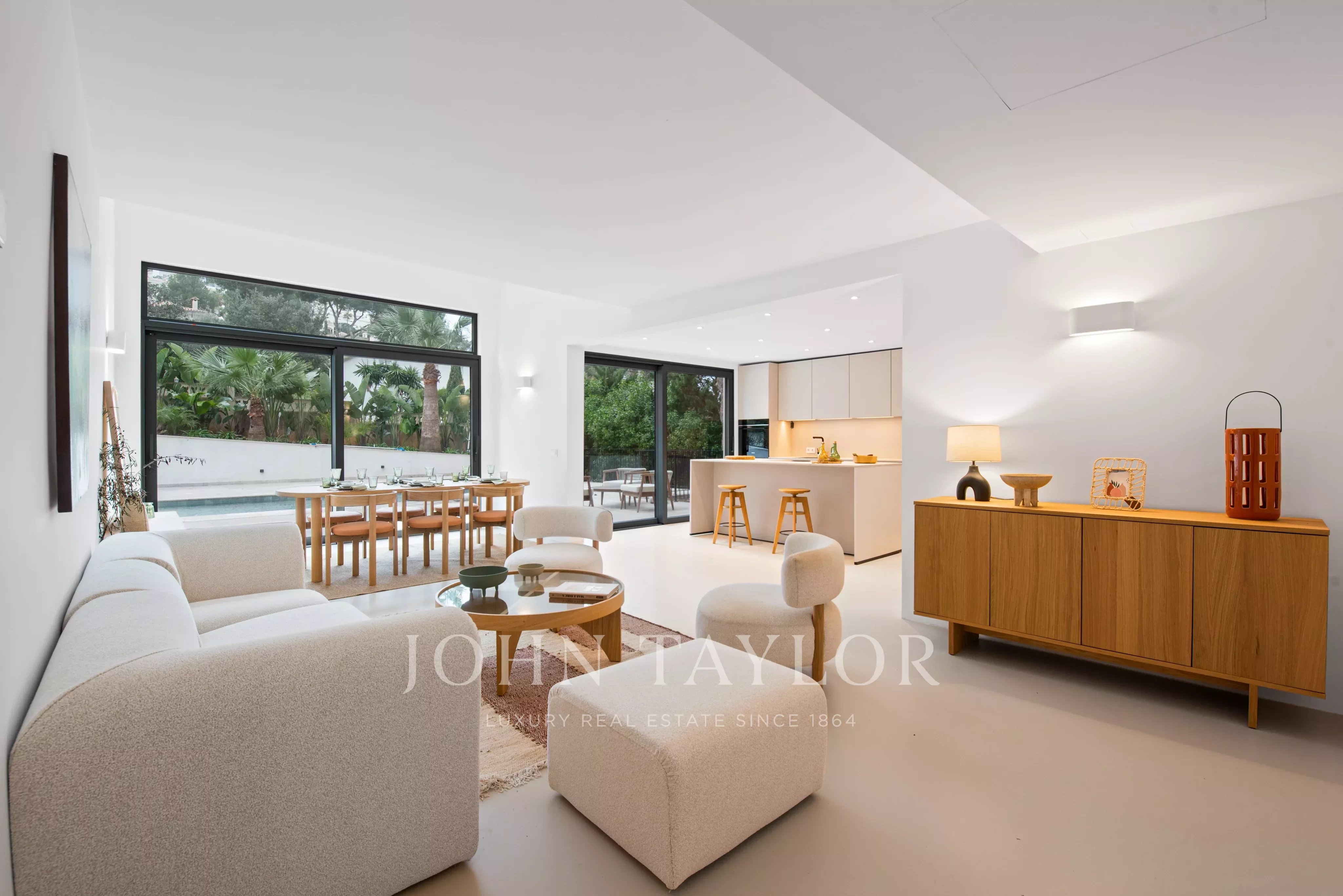 Nova Santa Ponsa, located in the southwest of Mallorca, is an exclusive retreat for those seeking an elegant lifestyle in a natural environment. This privileged area captivates with its magnificent high-end villas, offering panoramic views of the sea and lush vegetation. The heart of Nova Santa Ponsa is the Philippe Starck-designed marina Port Adriano, home to luxury yachts. The pristine beaches invite relaxation and water sports, while the golf courses offer a first class experience. In addition, Nova Santa Ponsa boasts gourmet restaurants, exclusive boutiques, luxury spas and excellent sports facilities, and is close to historic Palma, with its rich cultural and commercial offerings.