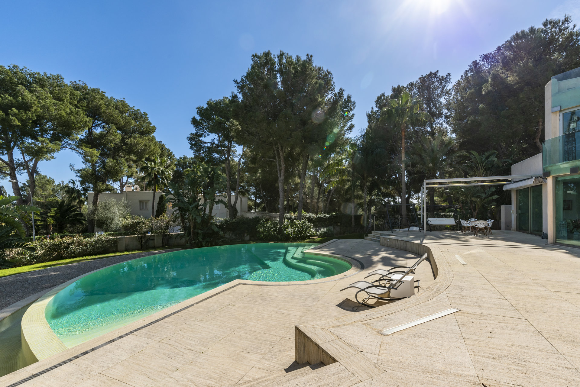 This elegant modern villa is located on a large plot of approximately 4,000 m² in Sol de Mallorca, one of the most exclusive and quiet residential areas of the island. With a constructed area of 390 m², it offers an environment of privacy, spaciousness and potential, since the buildability can be extended up to 0.3, allowing to reach about 1,200 m² total.