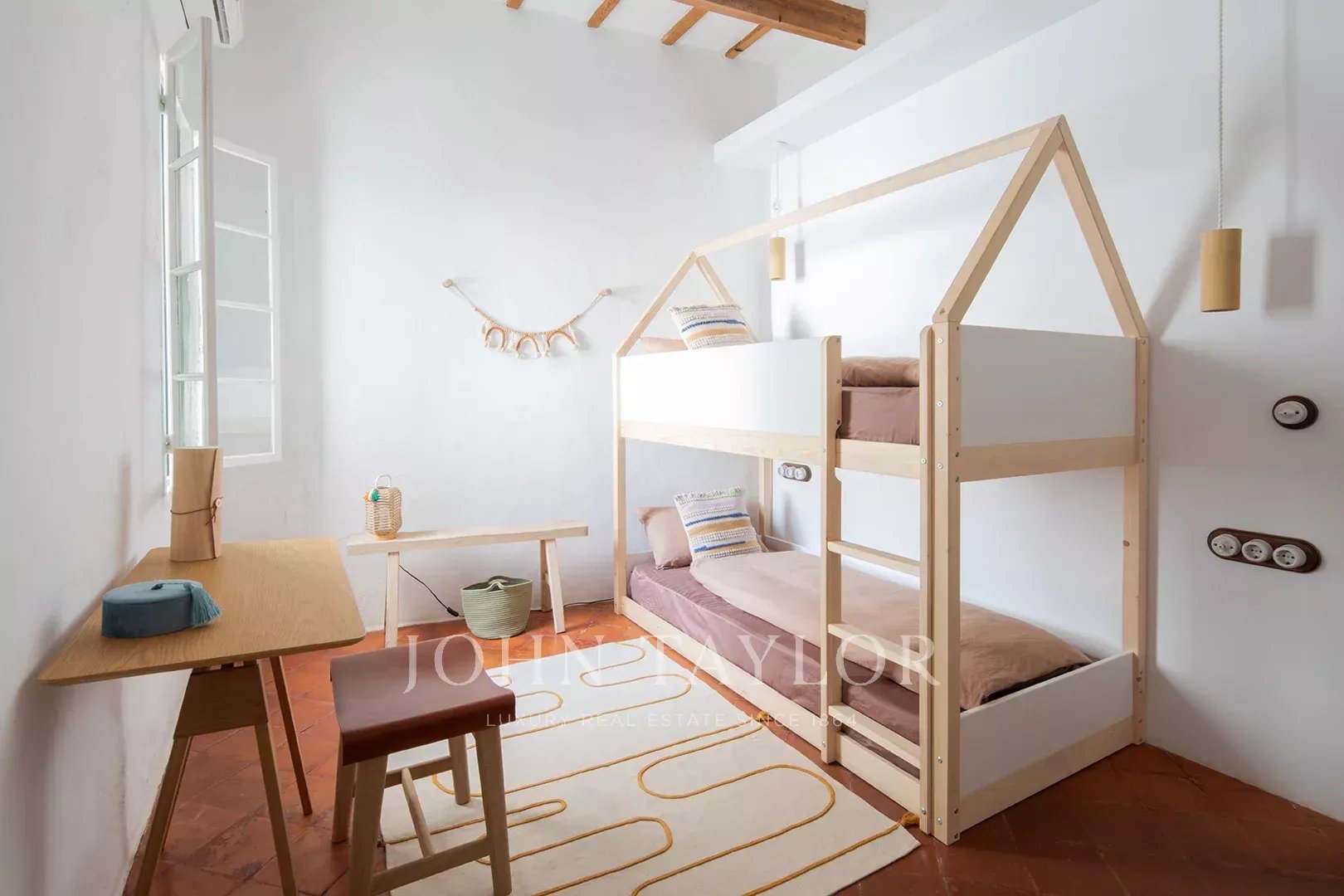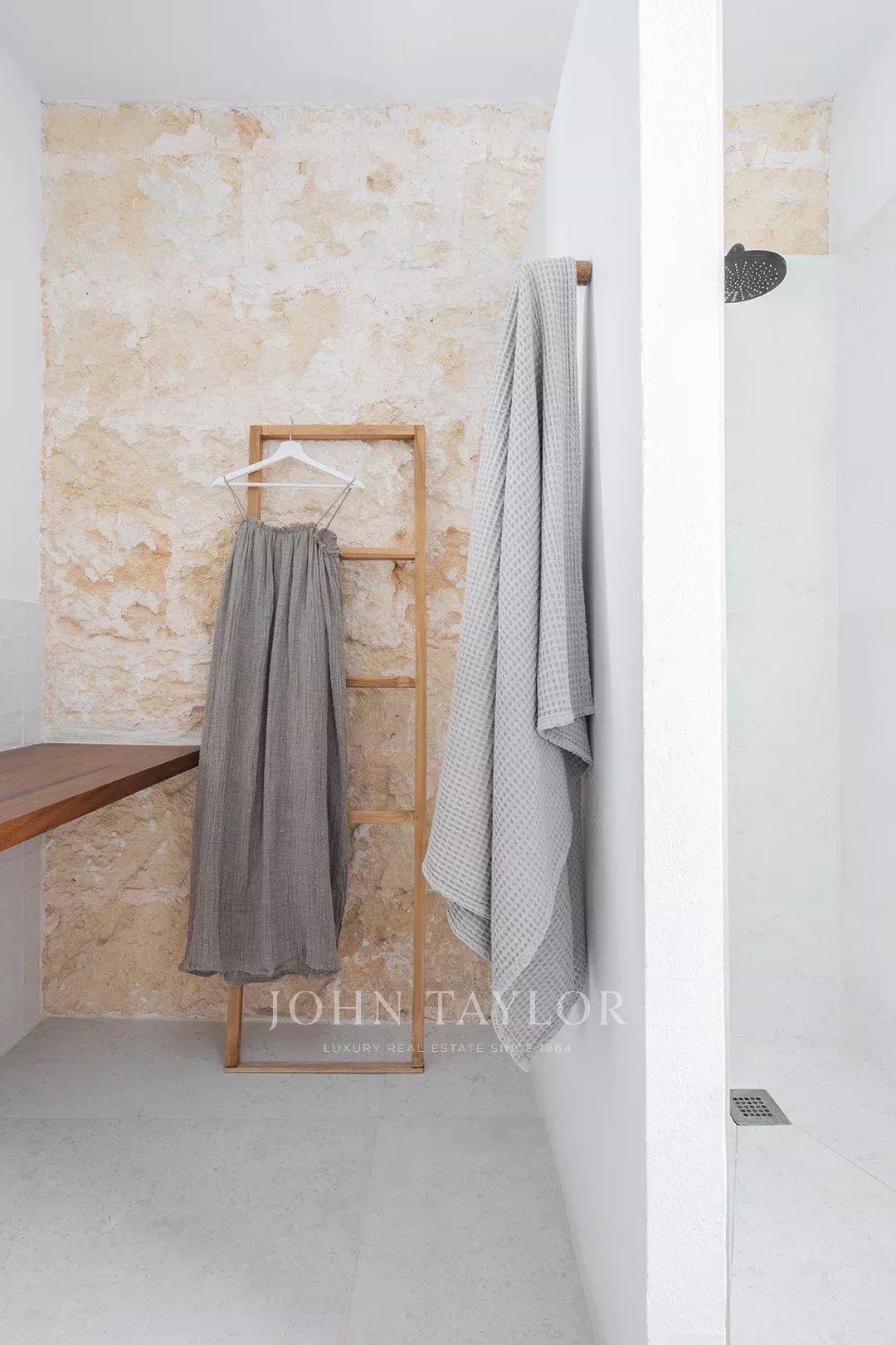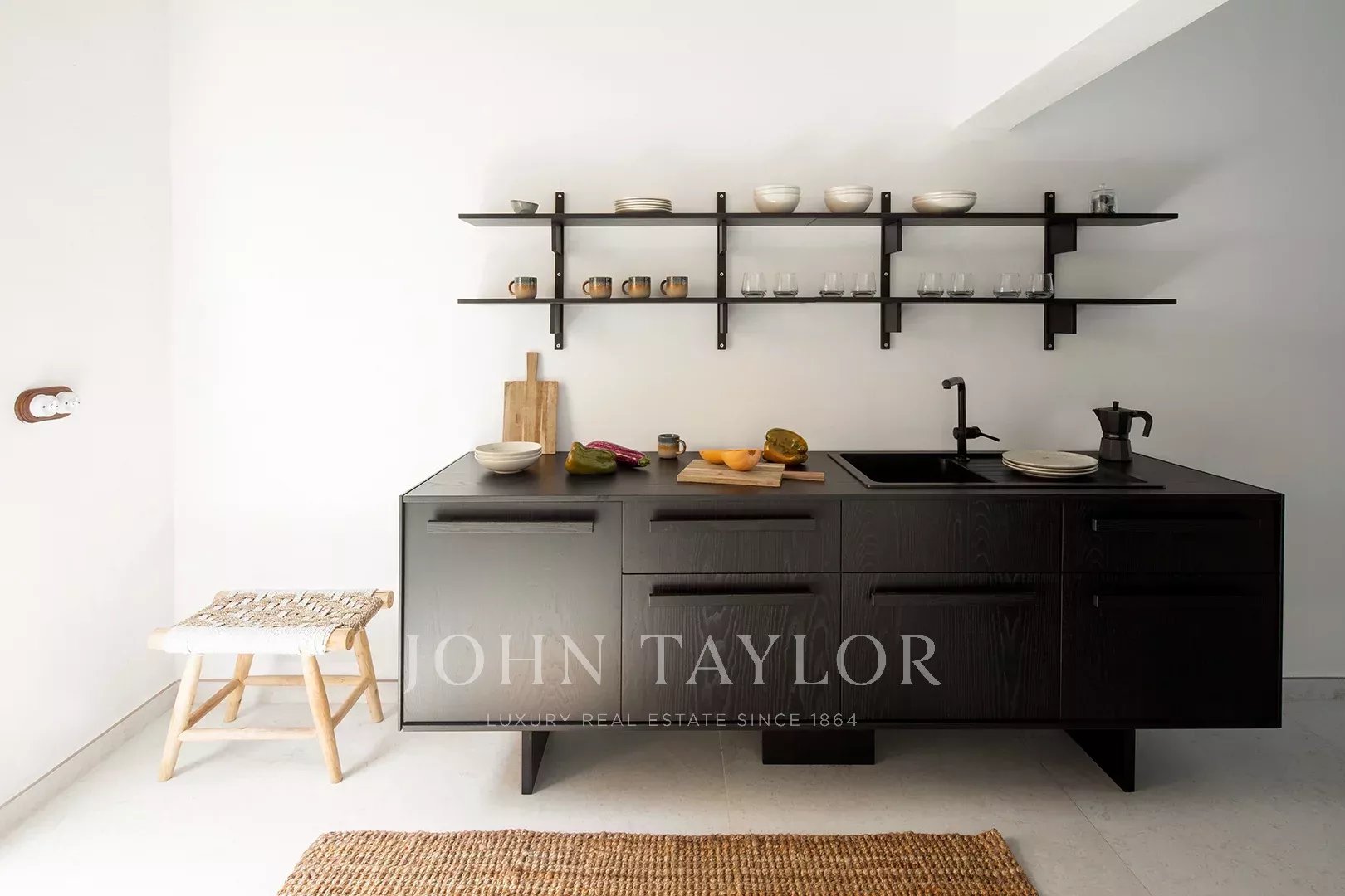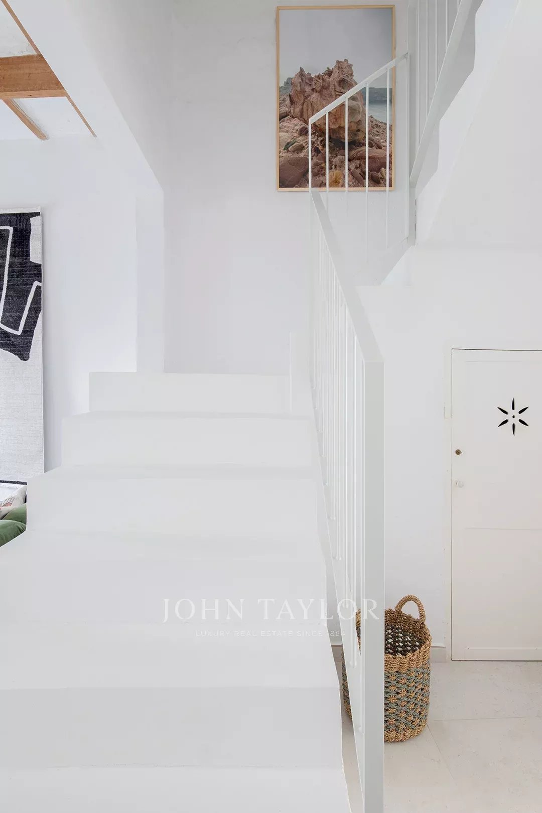 A few steps from the historic center of Ciutadella, this house perfectly combines the essence of Menorca with a sophisticated contemporary design. With 123 m² distributed over three floors, it offers open and bright spaces, where the integrated kitchen, living room and dining room open onto a private patio, perfect for outdoor dining or relaxing moments in the sun.
