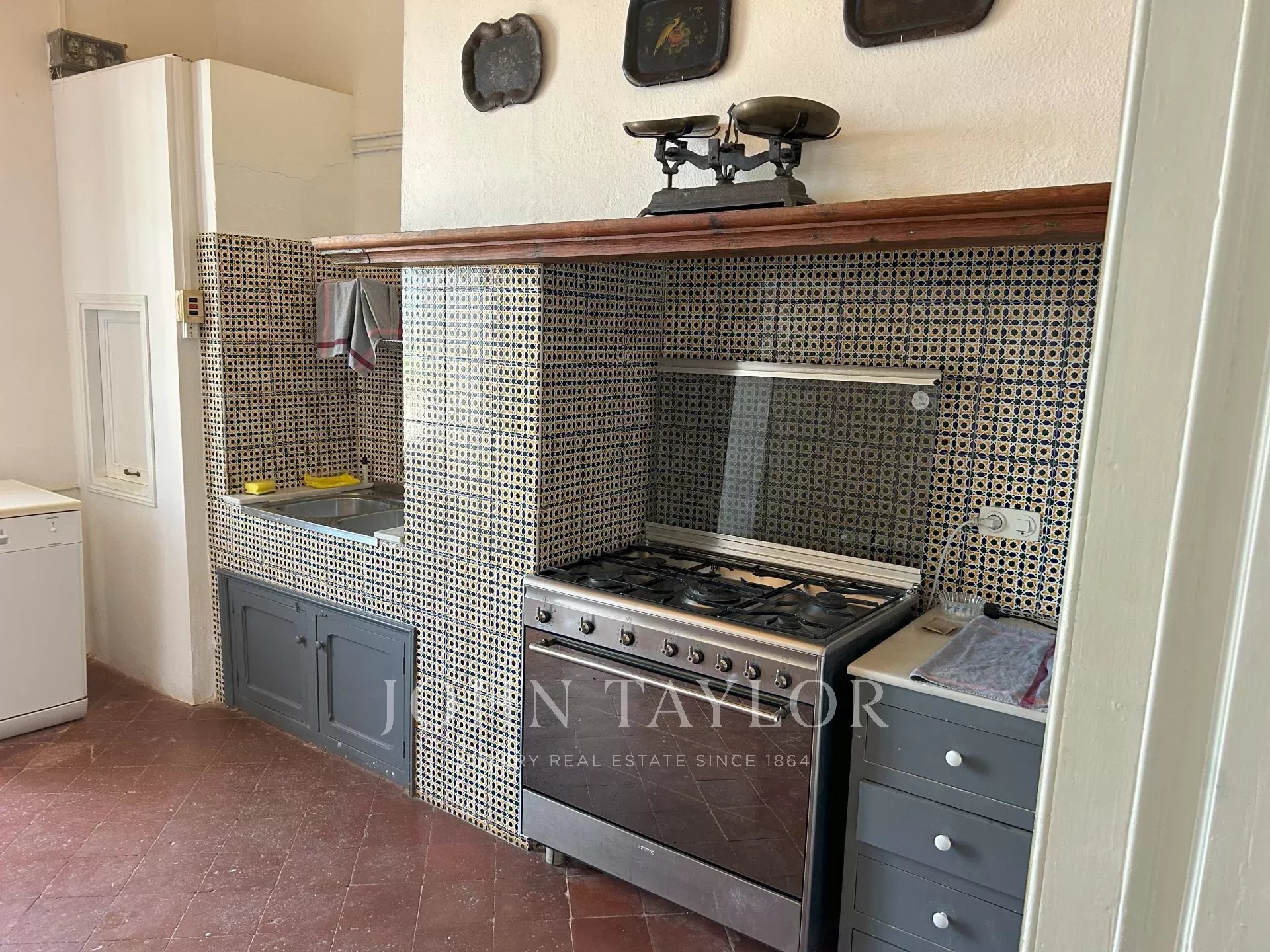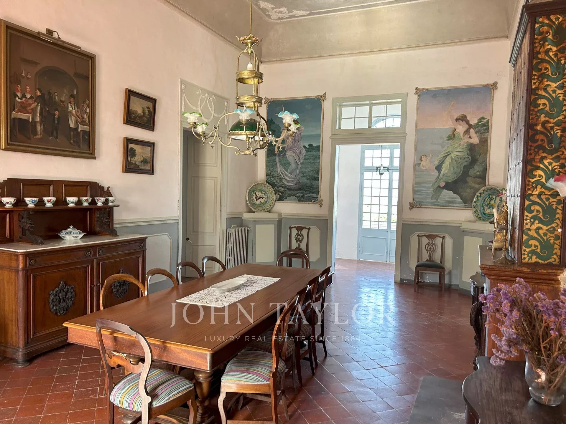 As common areas, the manor house has a living room, dining room and kitchen. Outside there is a large swimming pool, tennis court, parking and reception area.