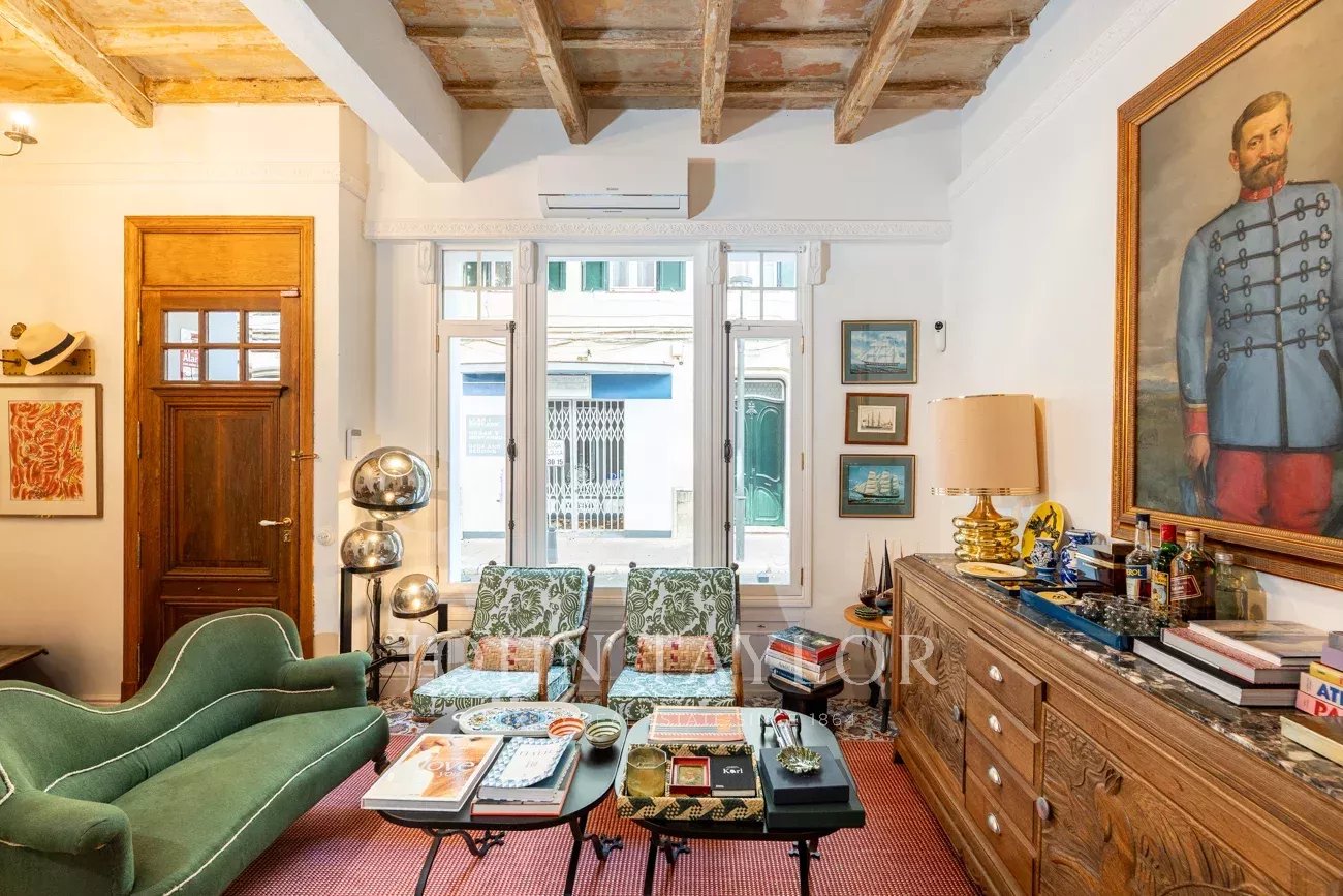 This extraordinary five-story house, originating in the 19th century, is distinguished by its rare curved layout and unique architectural character. Its elegant staircase, which follows the organic geometry of the original plan, generates a continuous and enveloping flow between the different levels. The property has a landscaped terrace on the upper floor, from which panoramic views over the rooftops of Mahón and the nearby historic mill can be enjoyed, especially magical at sunrise.